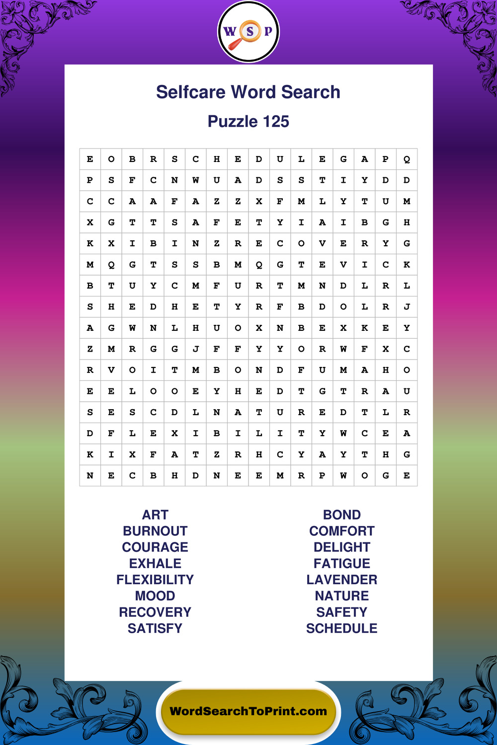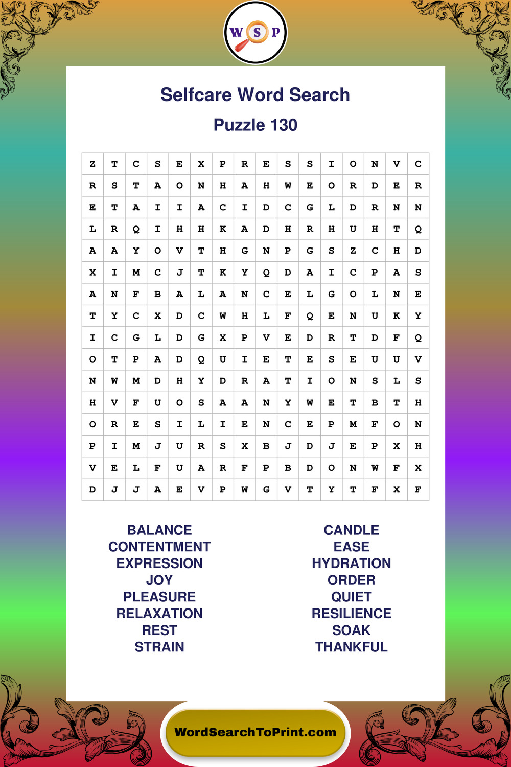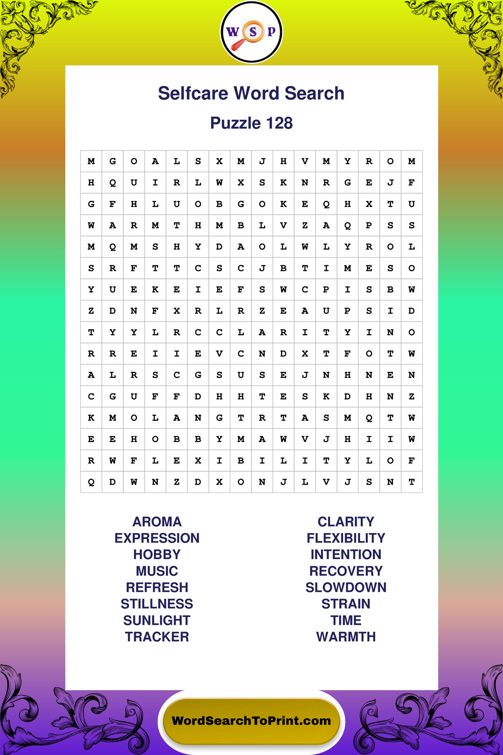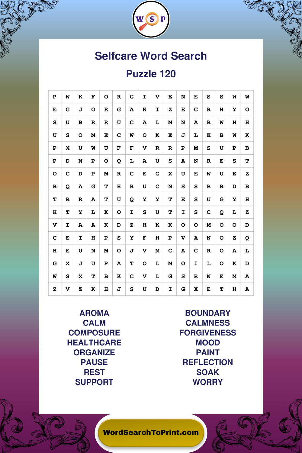 These large print Selfcare wordsearches are ideal for calm focus, light mental exercise, and easy readability.