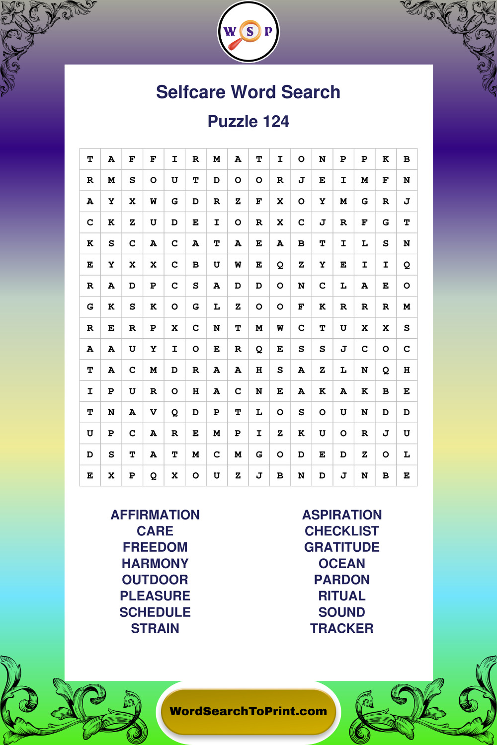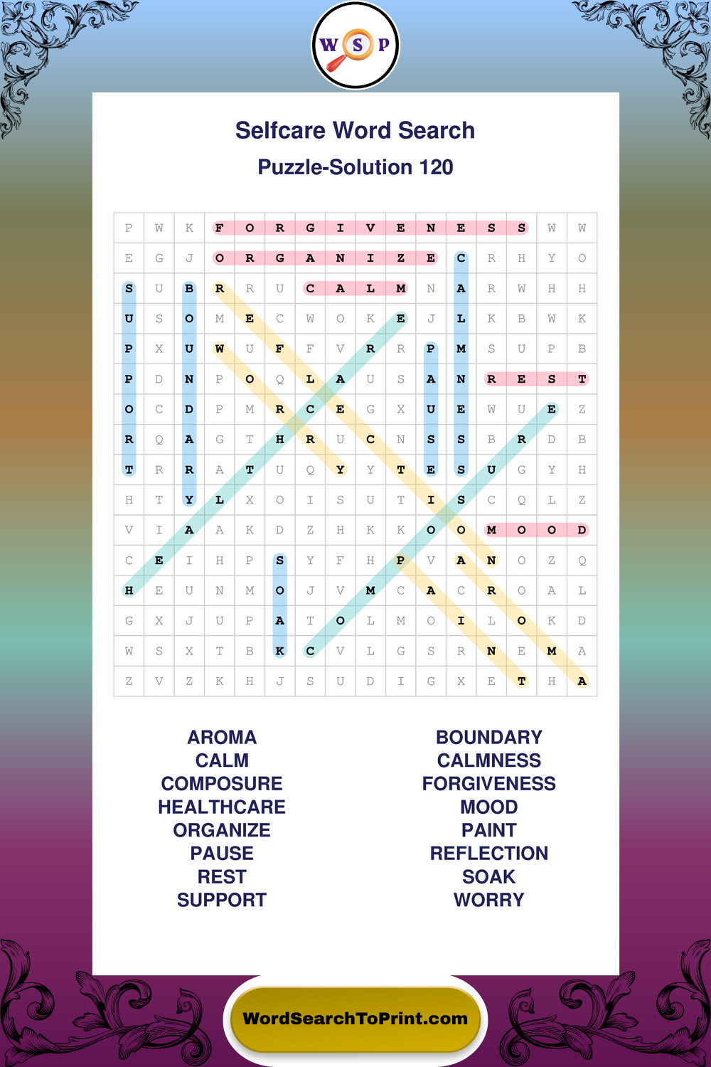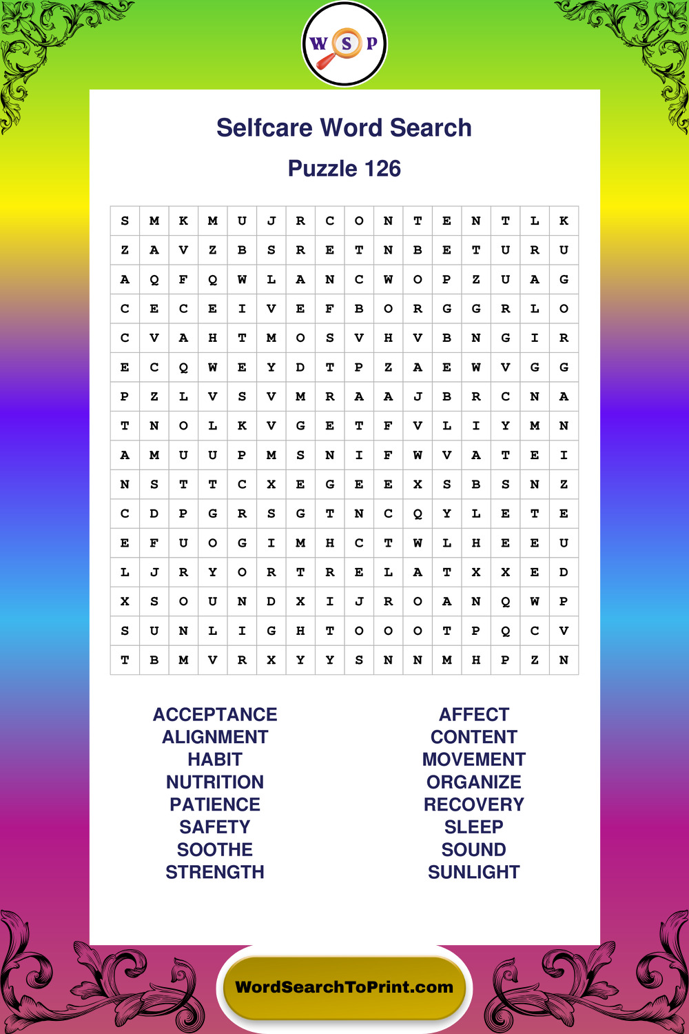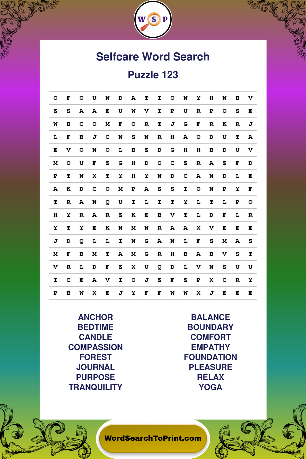 These large print Selfcare wordsearches are ideal for calm focus, light mental exercise, and easy readability.