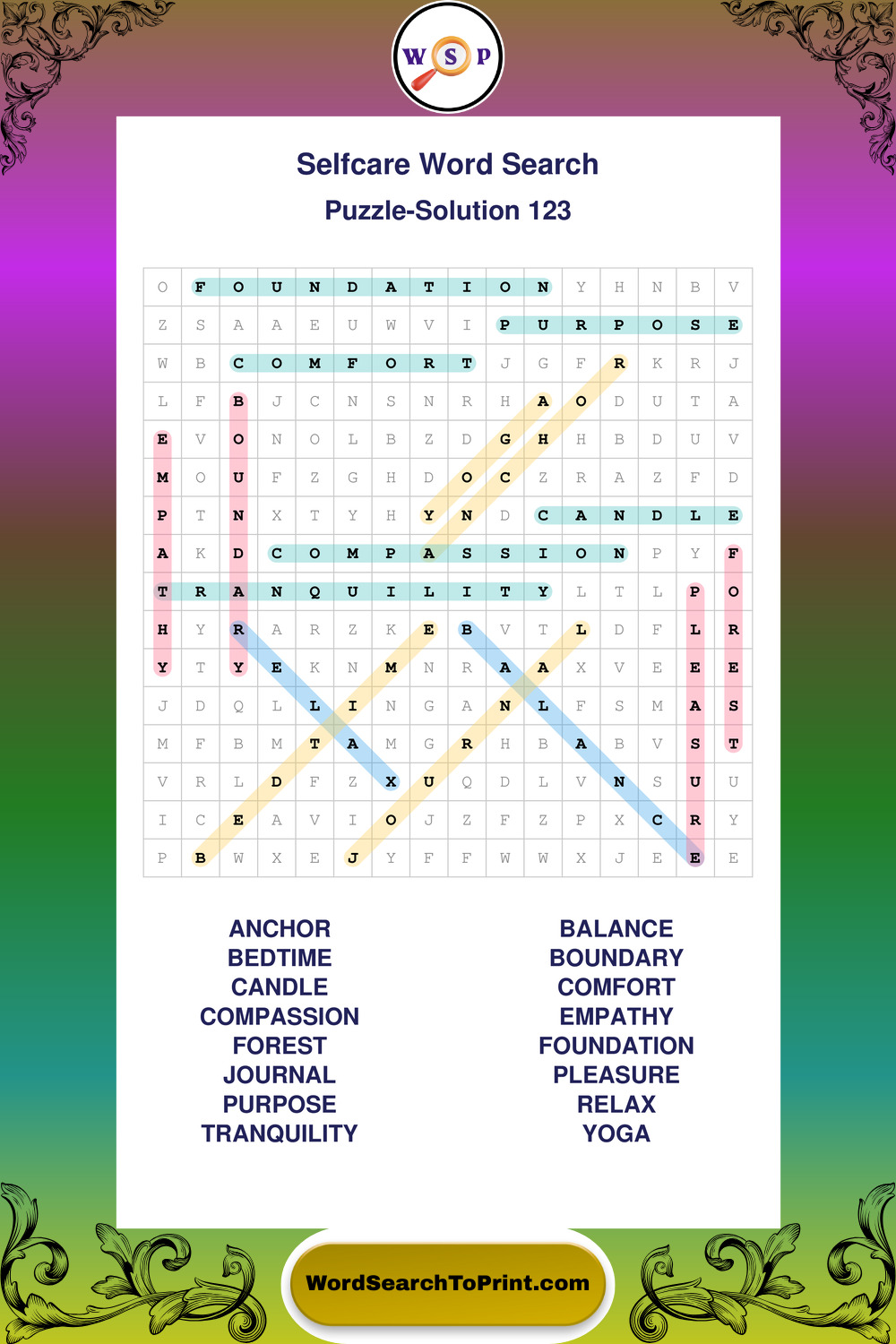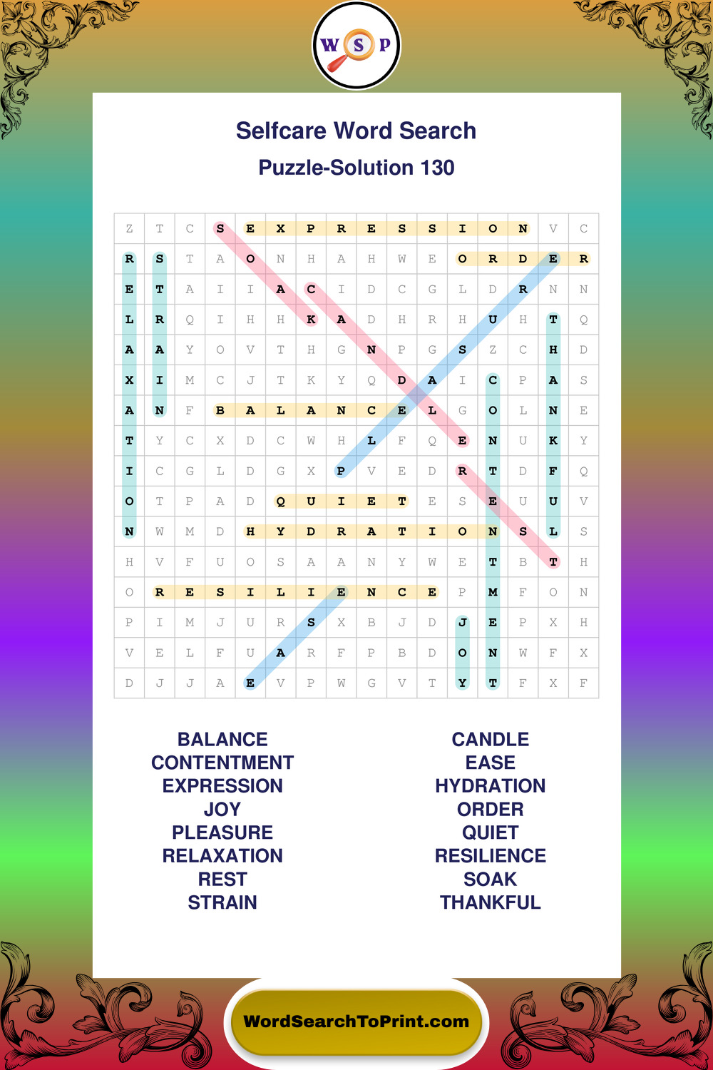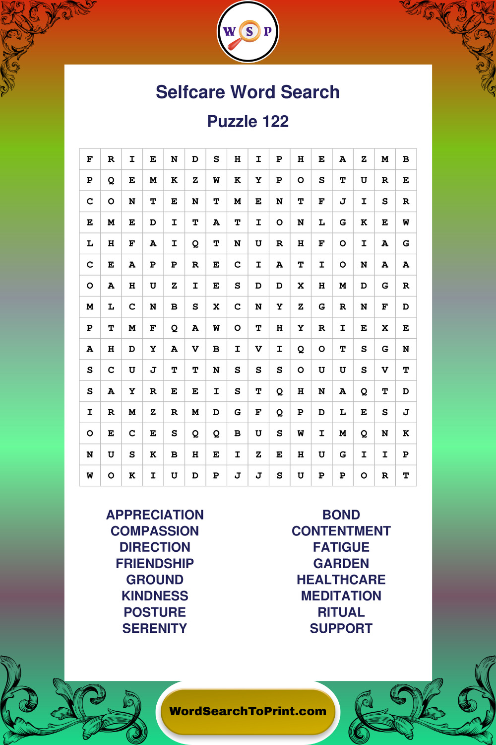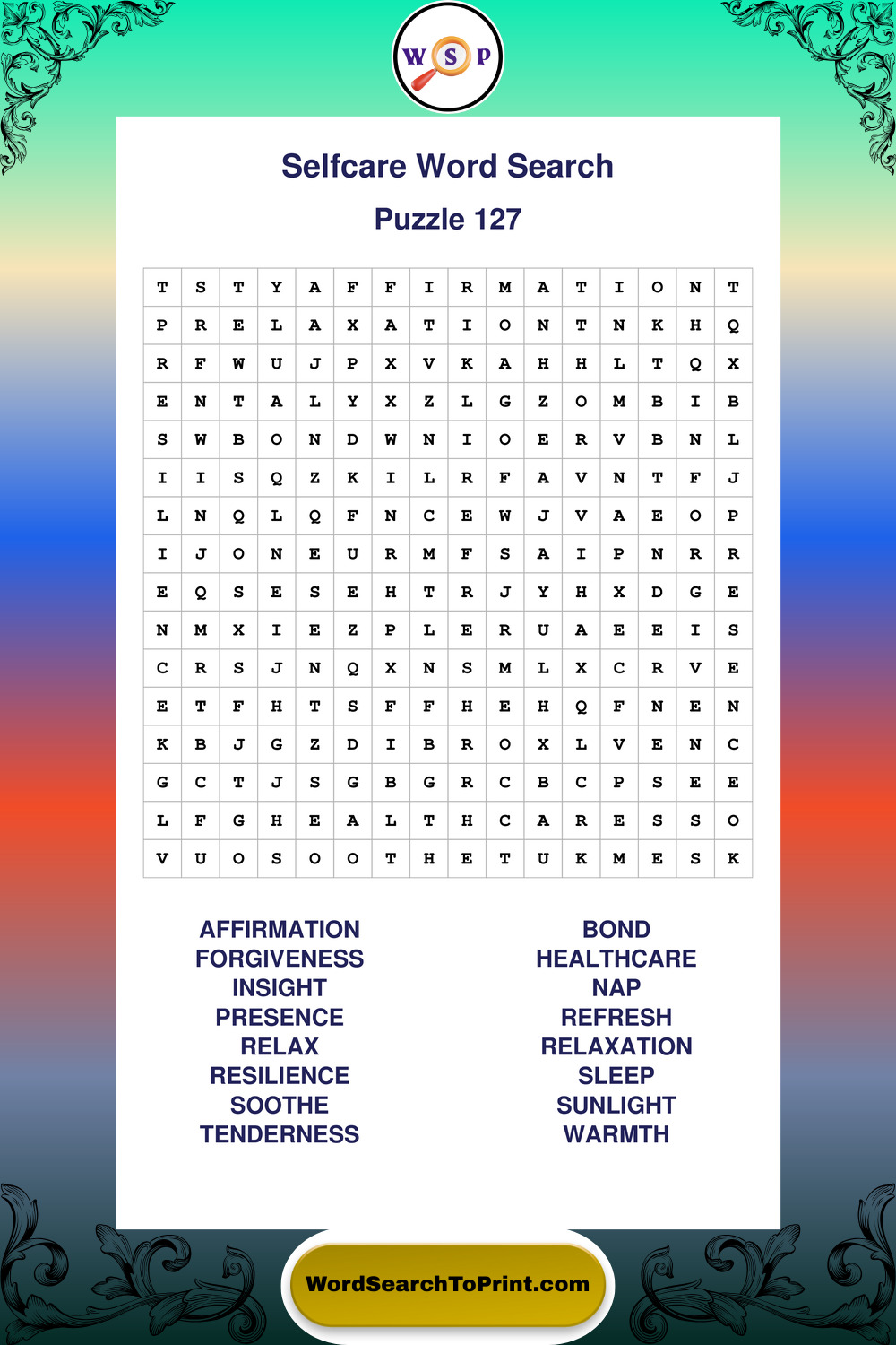 These large print Selfcare wordsearches are ideal for calm focus, light mental exercise, and easy readability.