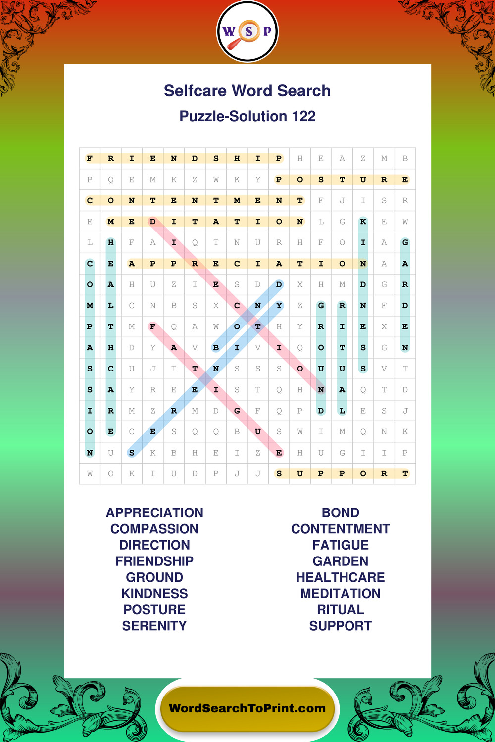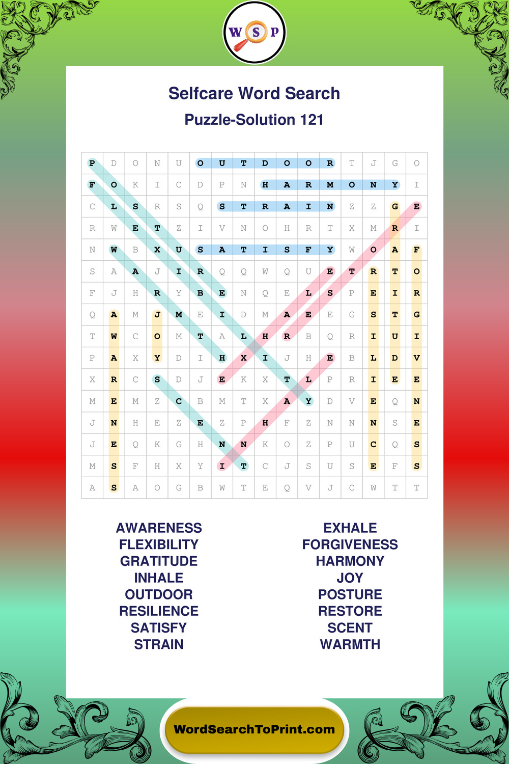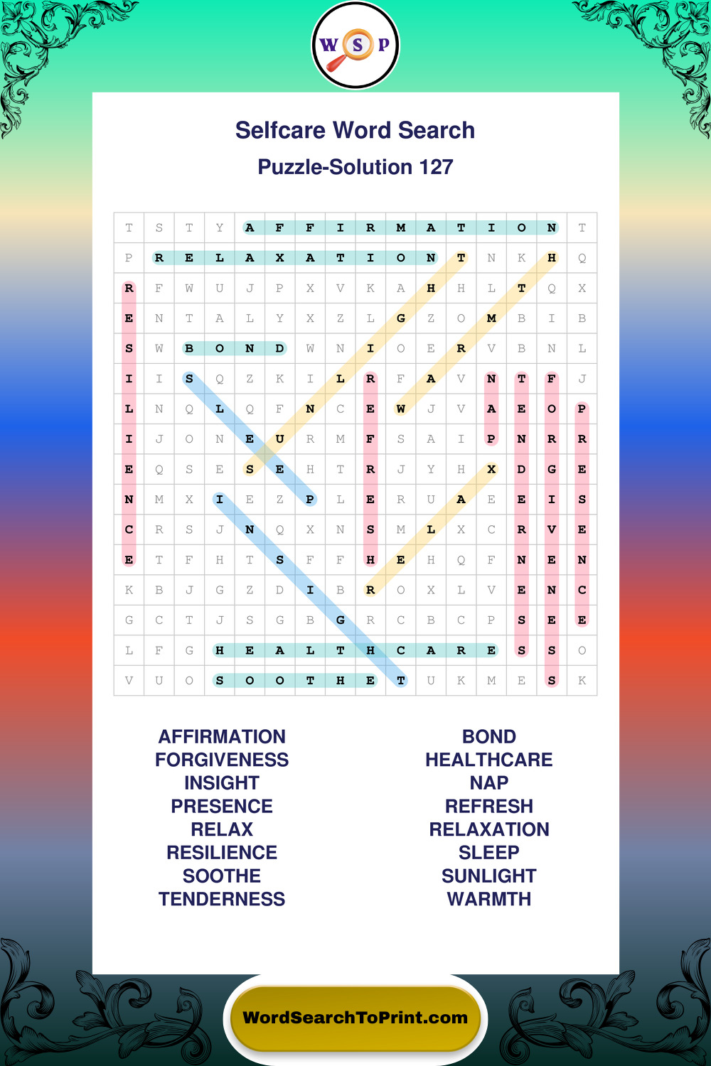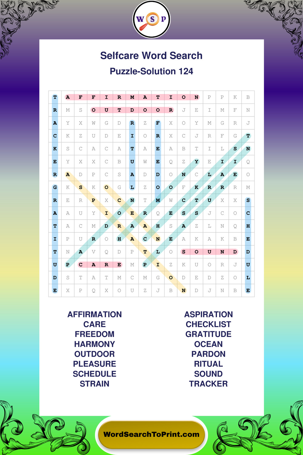These large print Selfcare wordsearches are ideal for calm focus, light mental exercise, and easy readability.