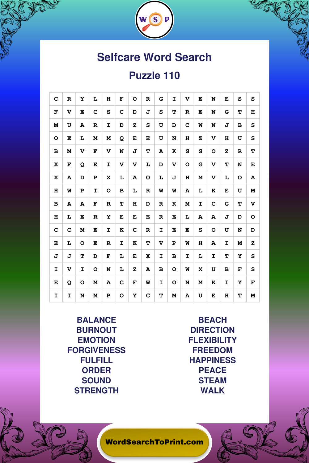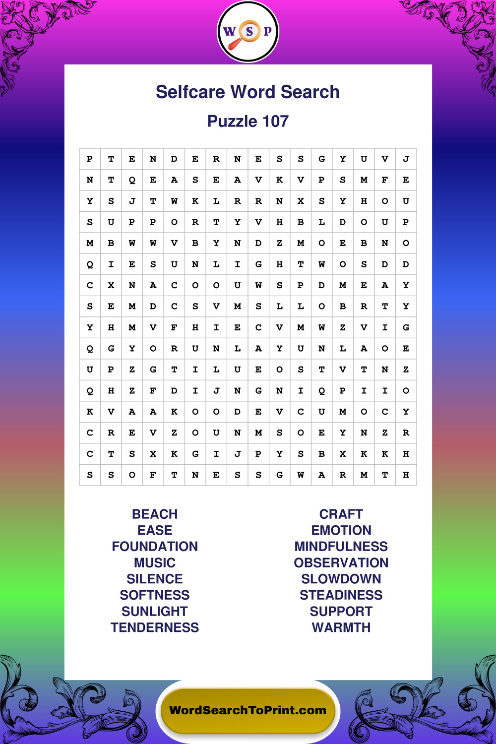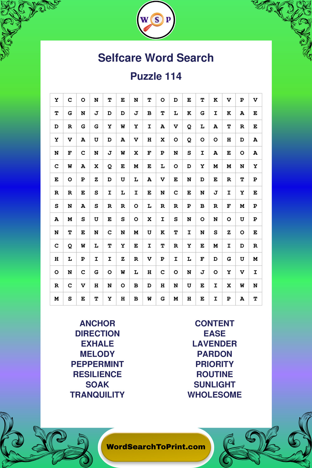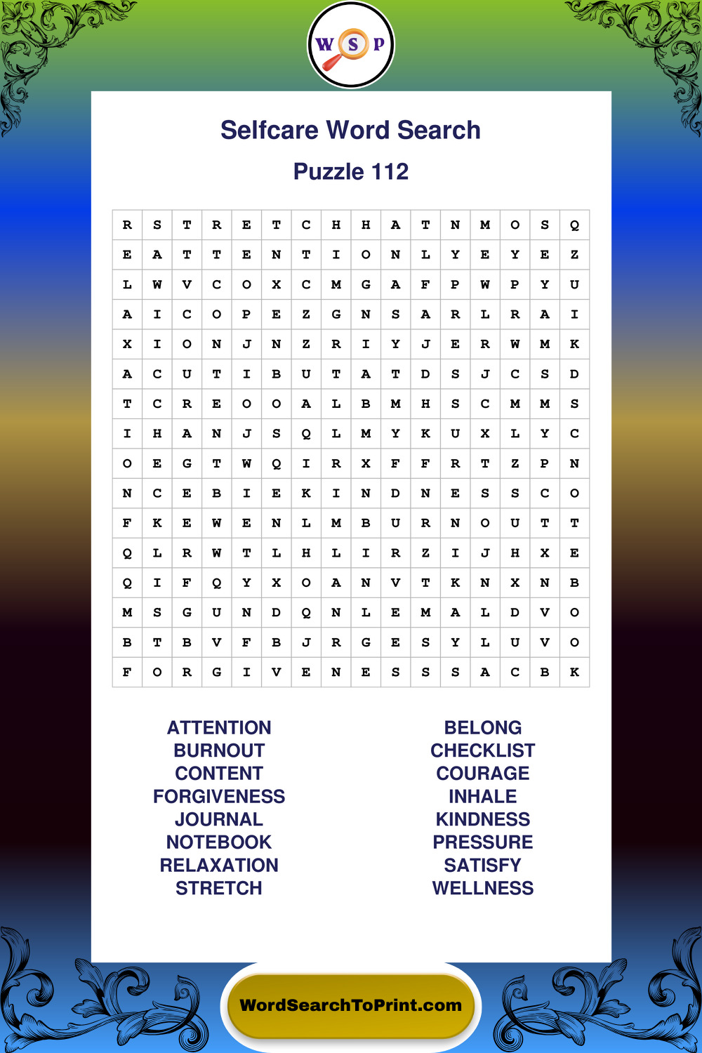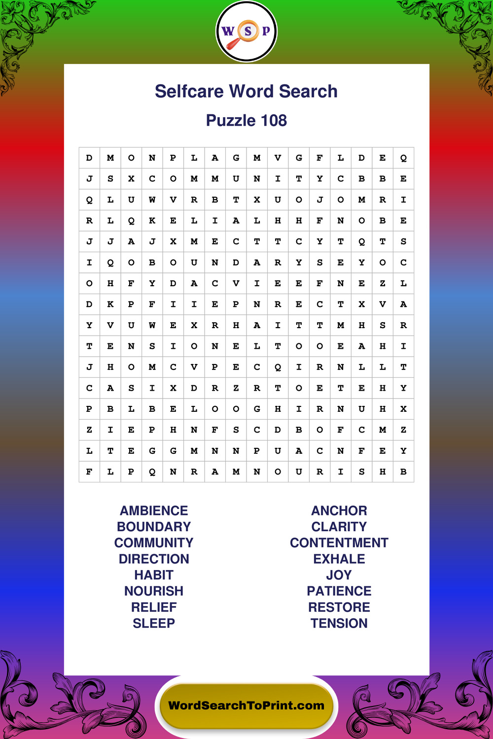 These large print Selfcare wordsearches are ideal for calm focus, light mental exercise, and easy readability.
