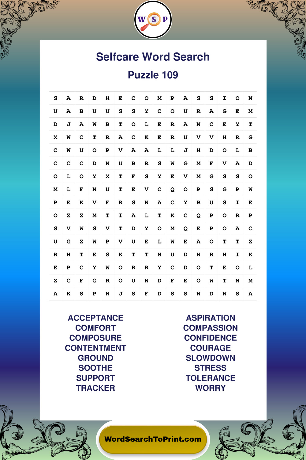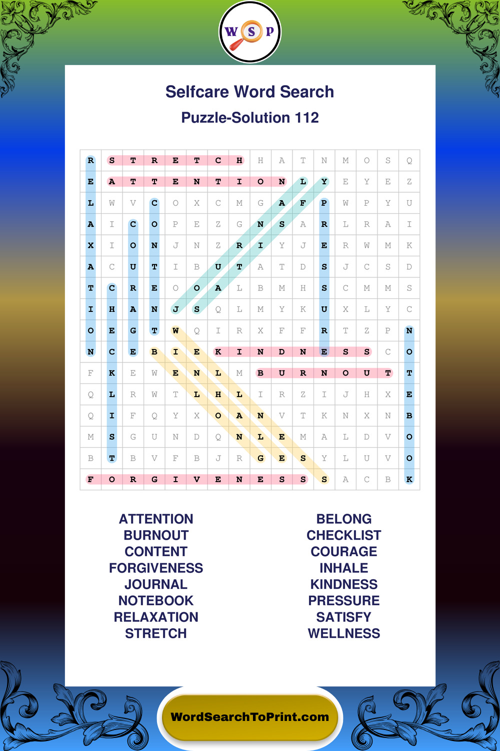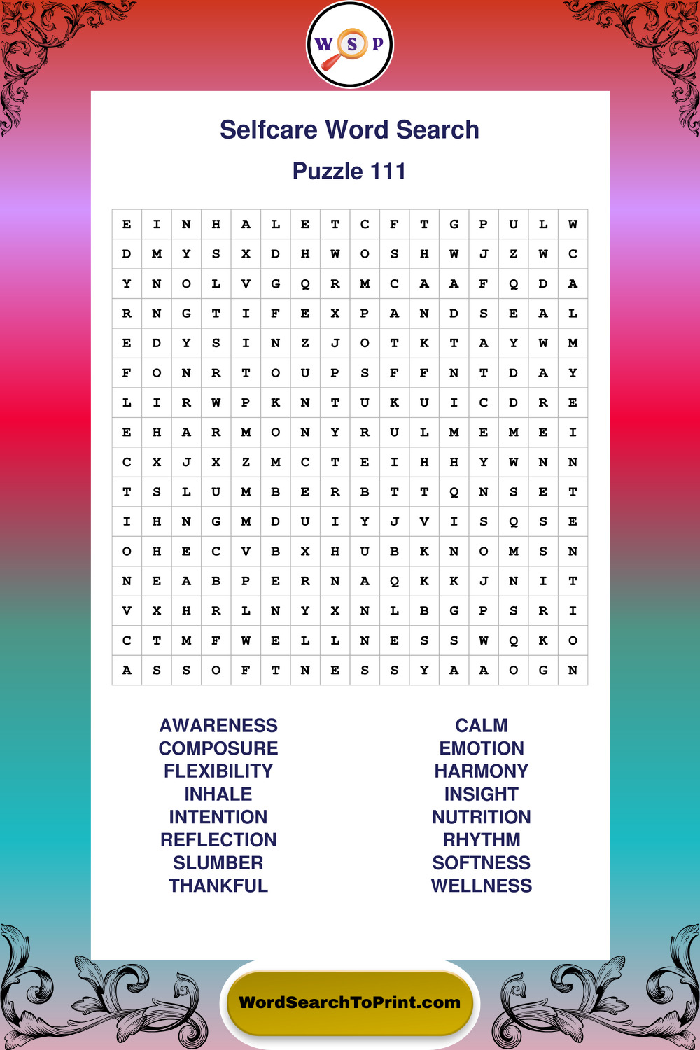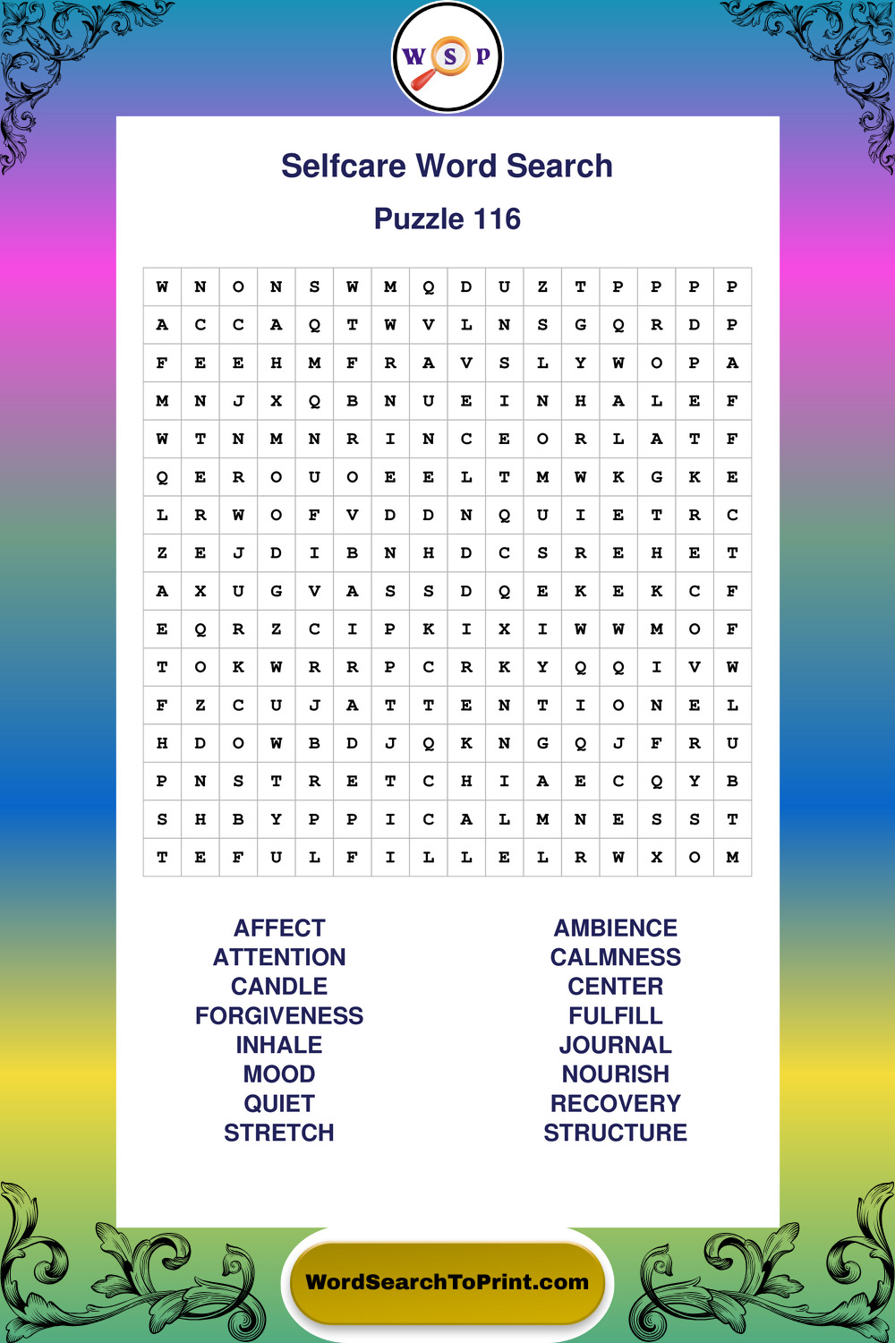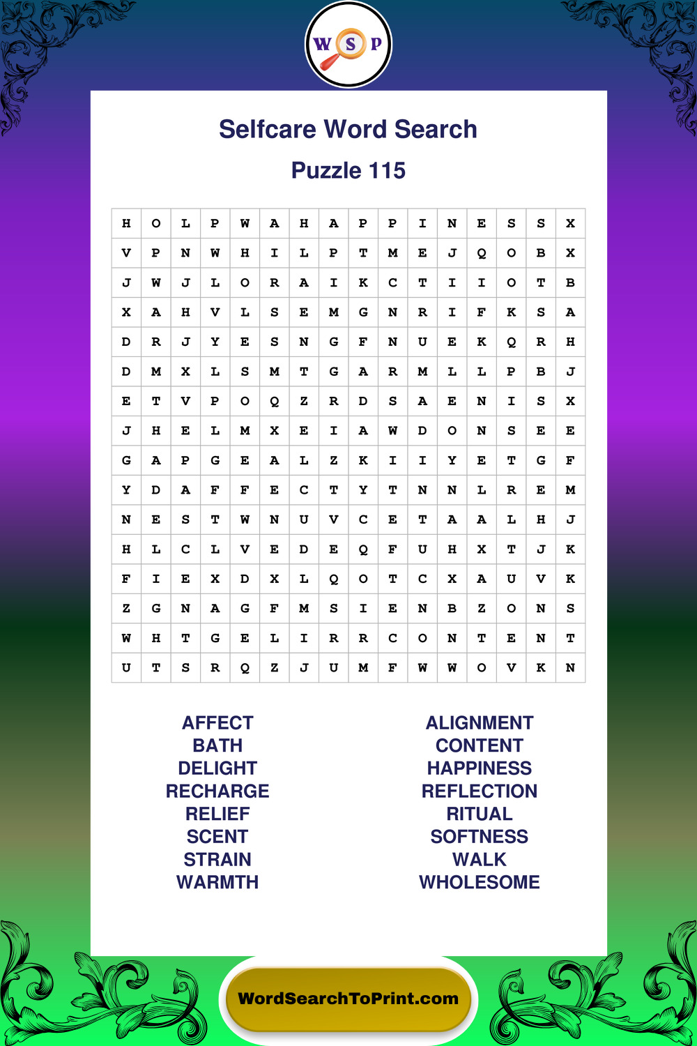 These large print Selfcare wordsearches are ideal for calm focus, light mental exercise, and easy readability.