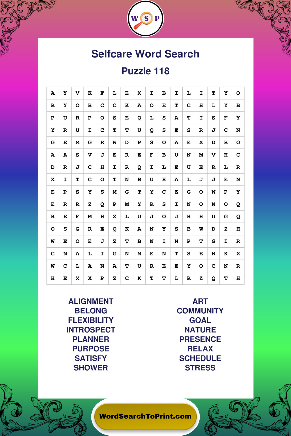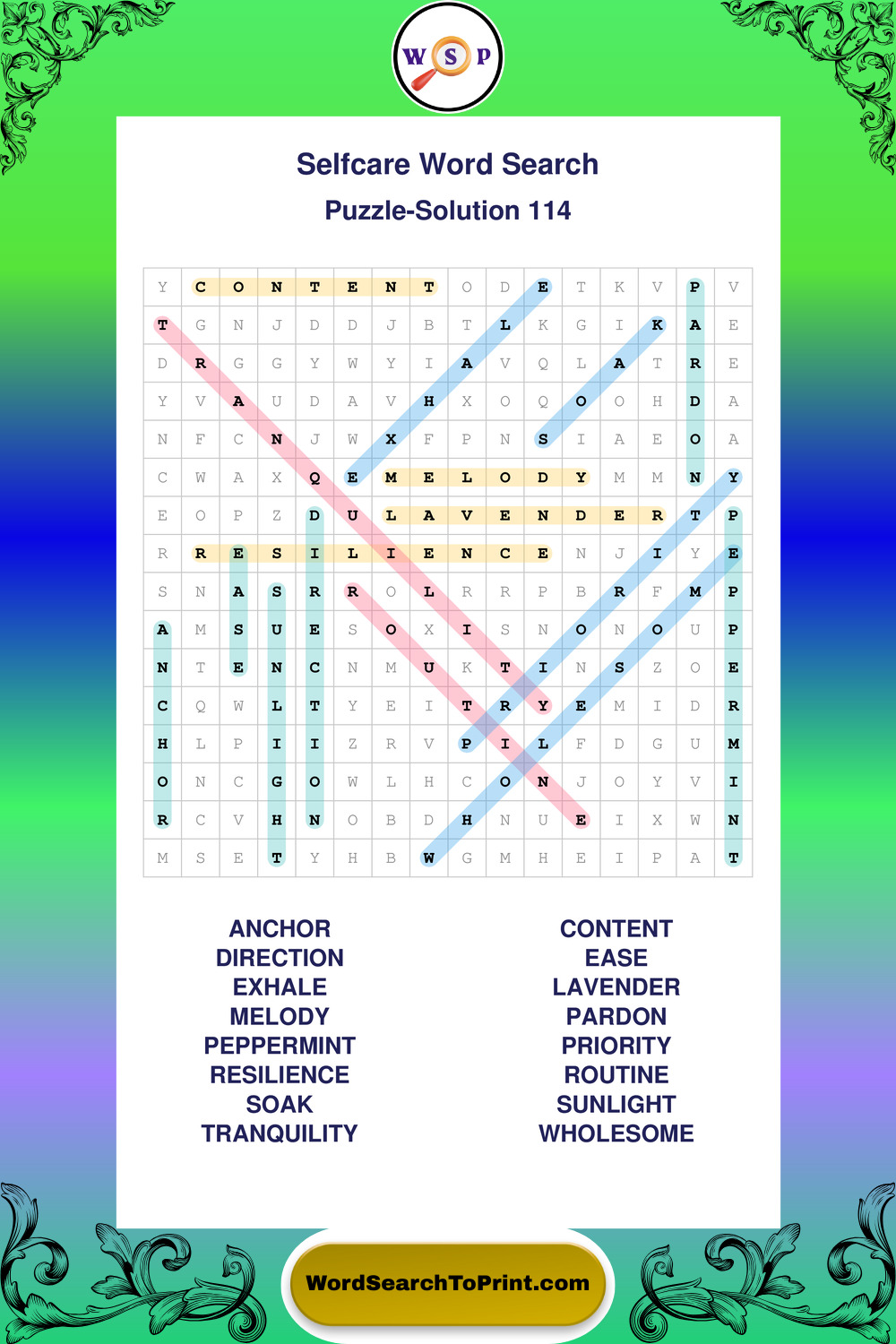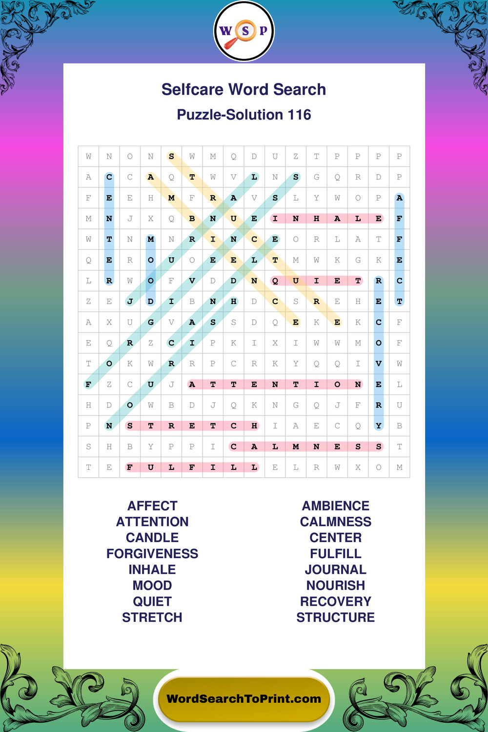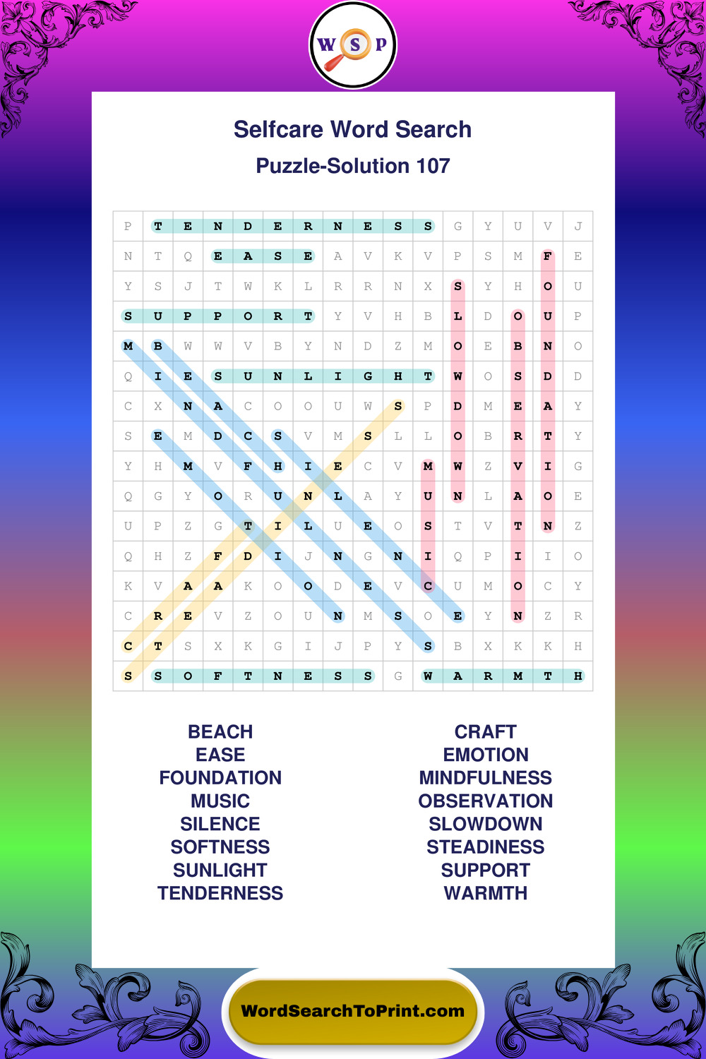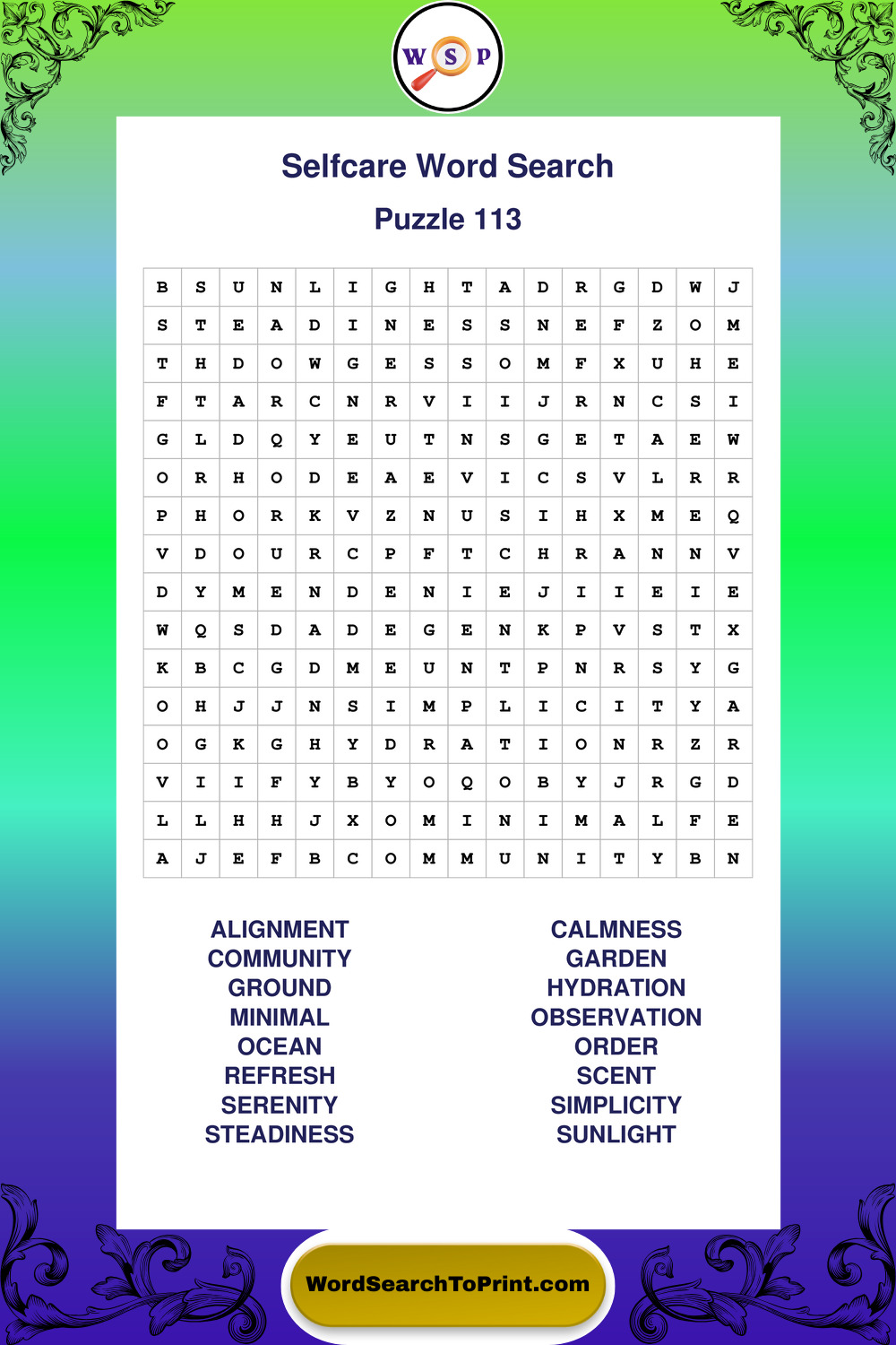 These large print Selfcare wordsearches are ideal for calm focus, light mental exercise, and easy readability.