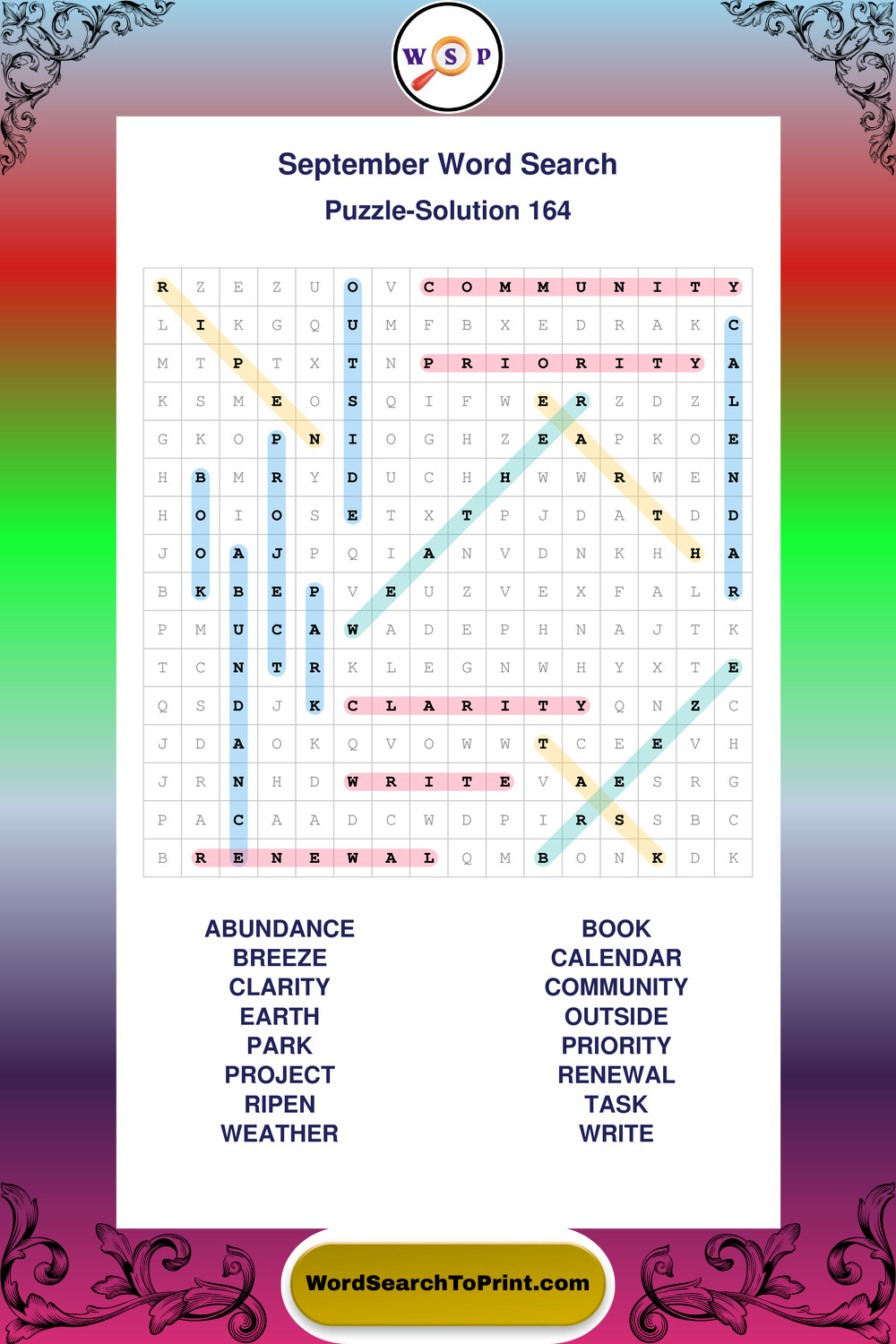 September Wordsearches