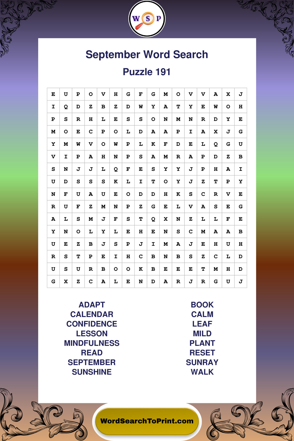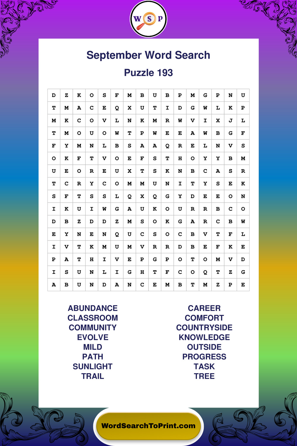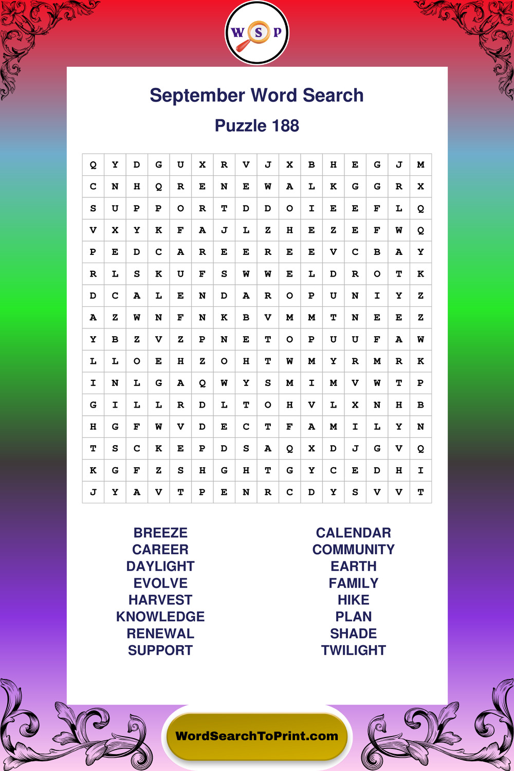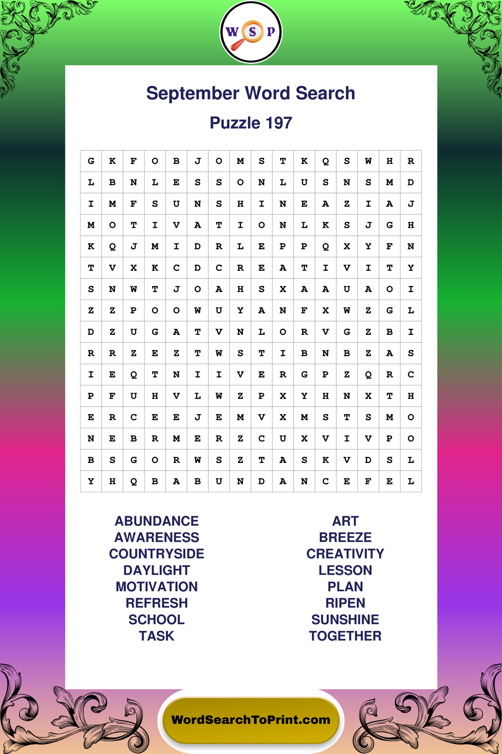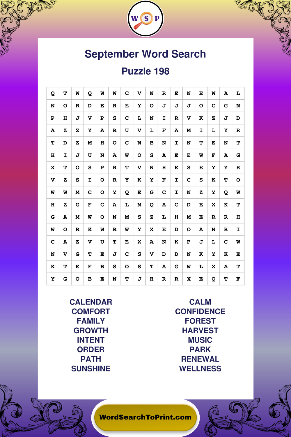 Discover printable large print September wordsearches made for relaxed enjoyment and clear, uncluttered solving.