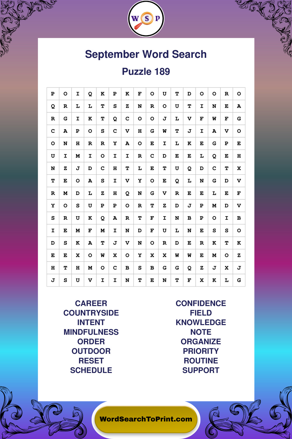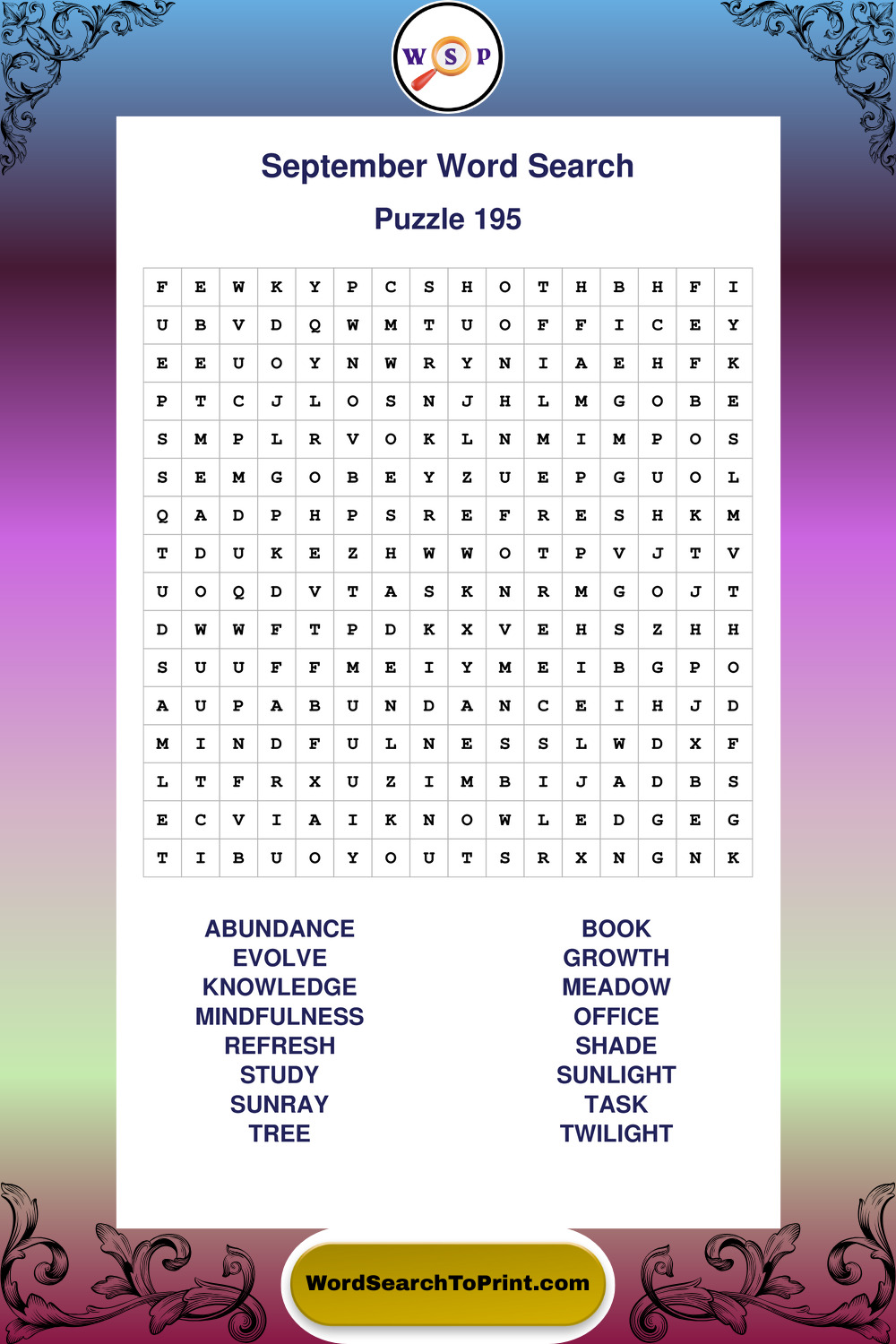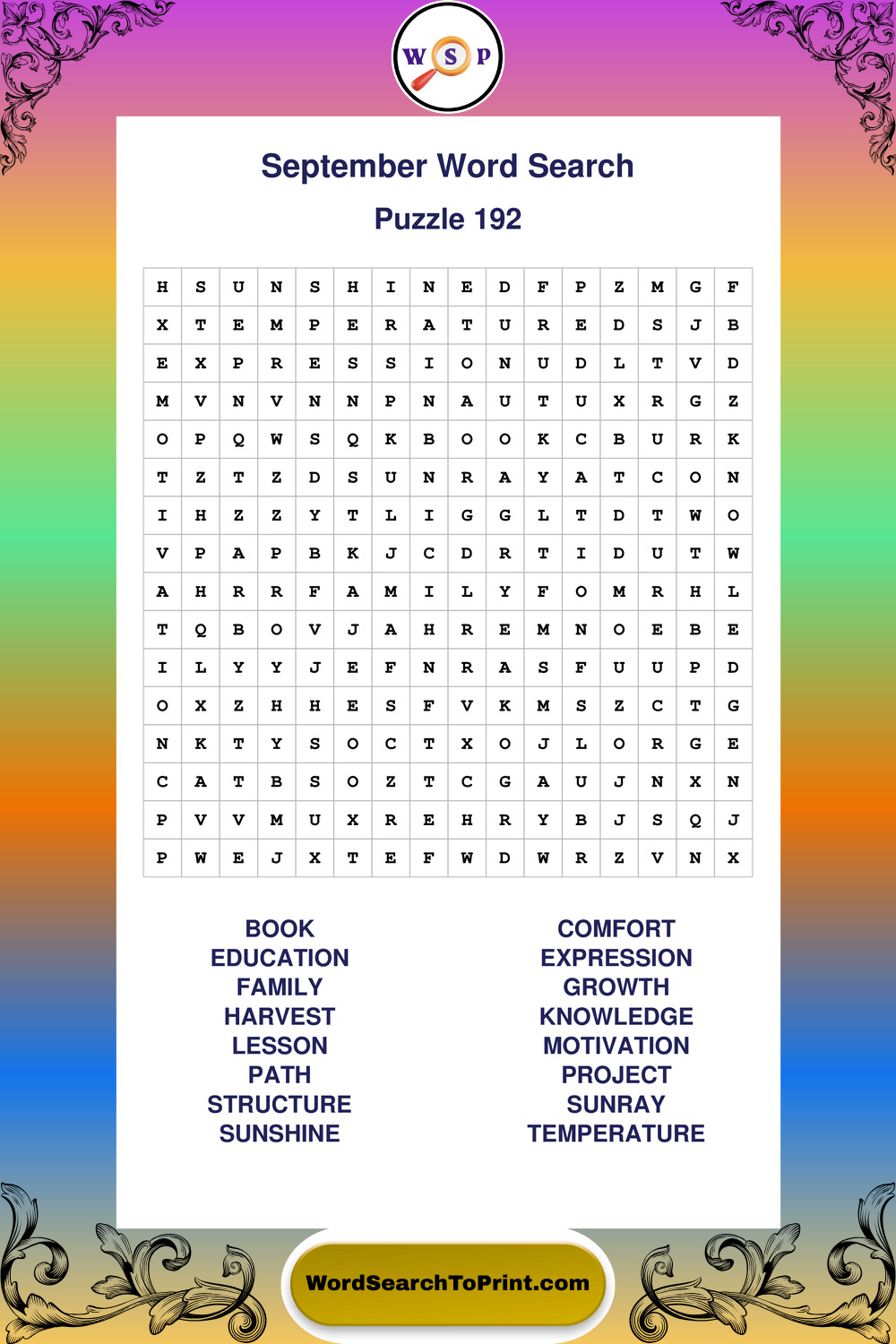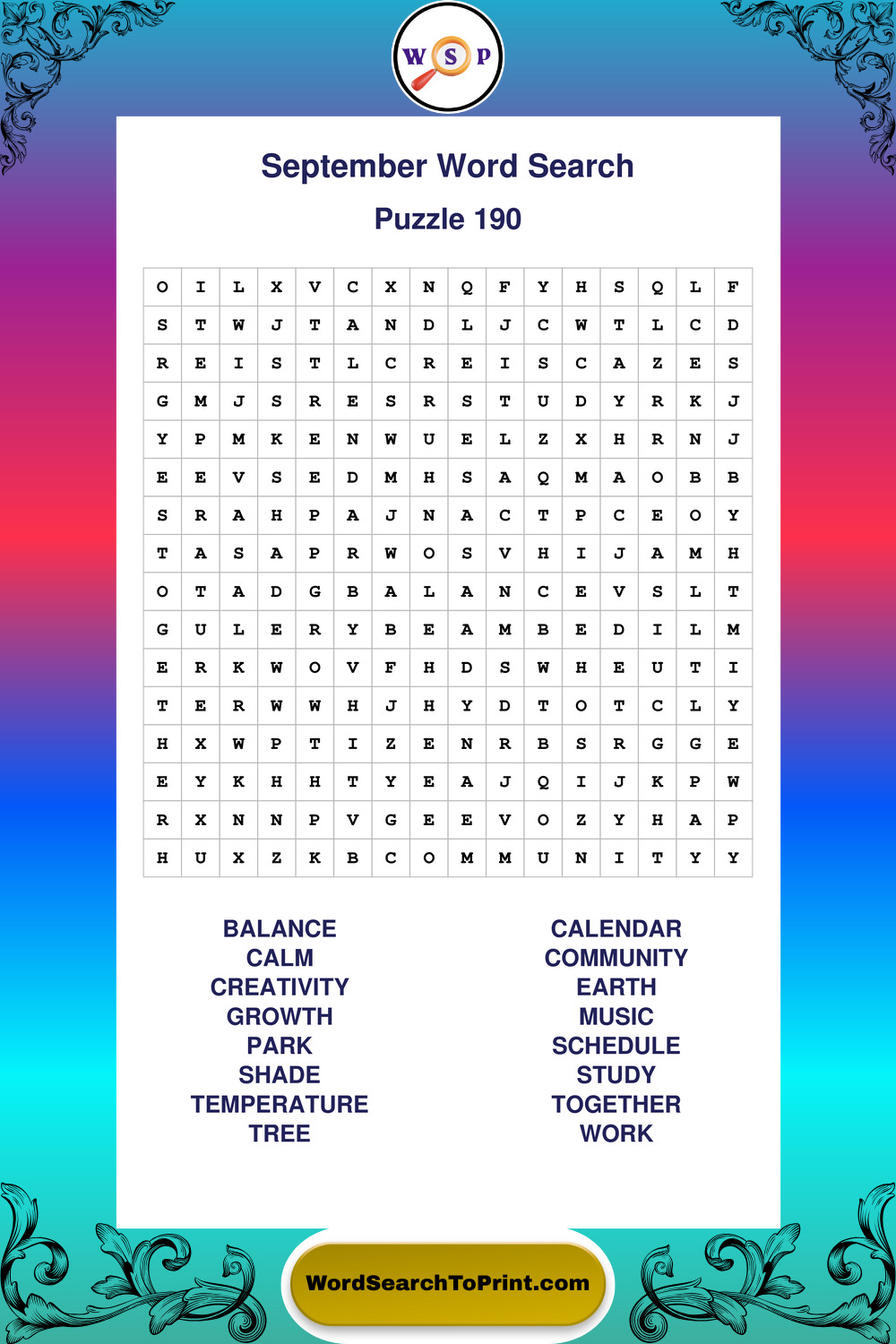 Discover printable large print September wordsearches made for relaxed enjoyment and clear, uncluttered solving.
