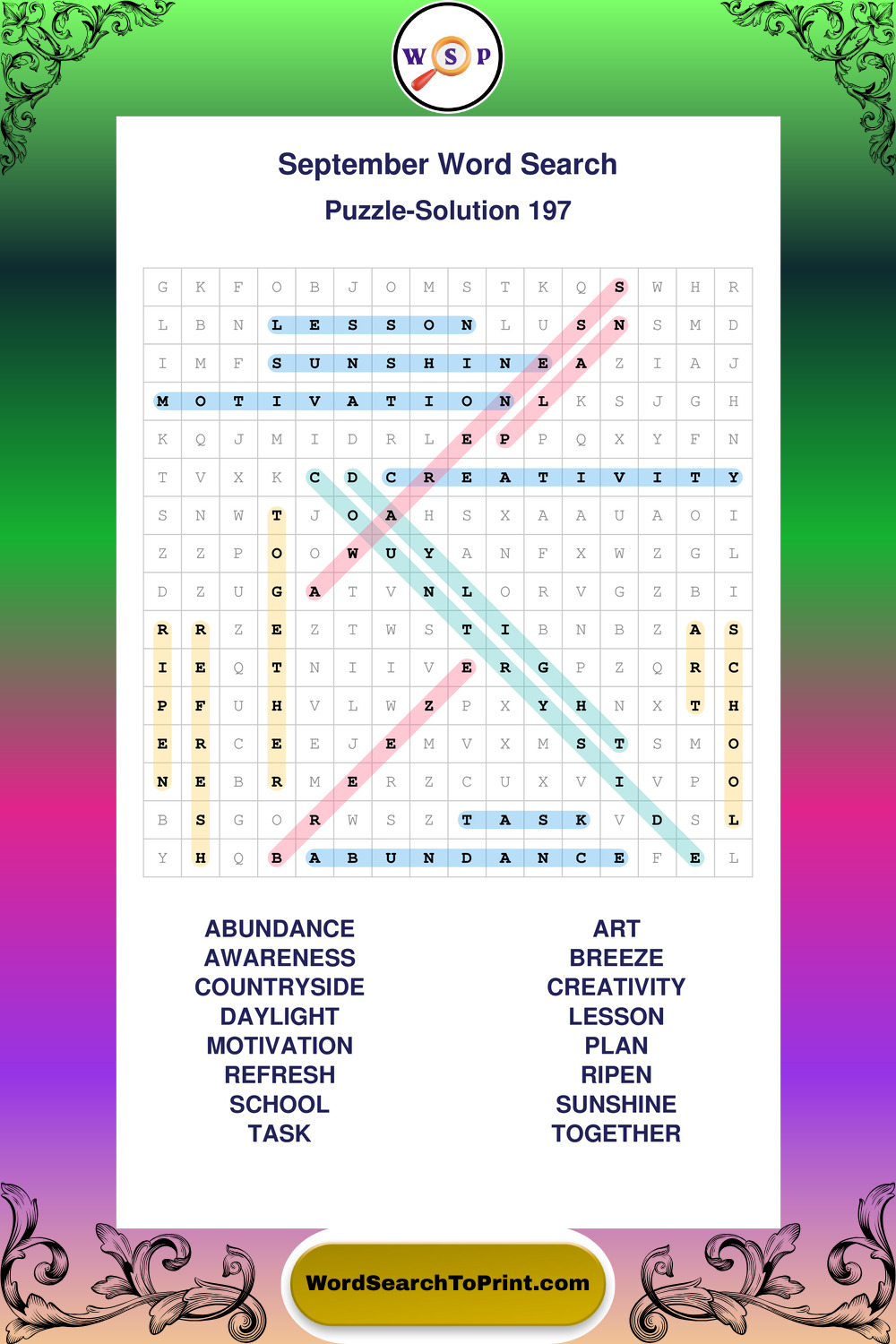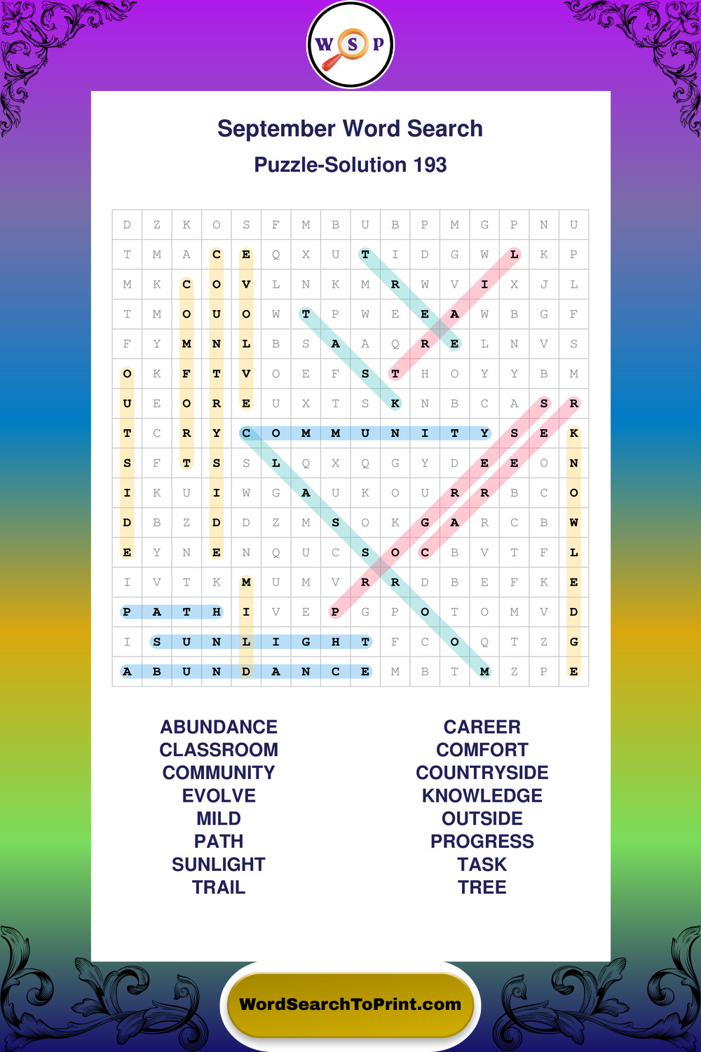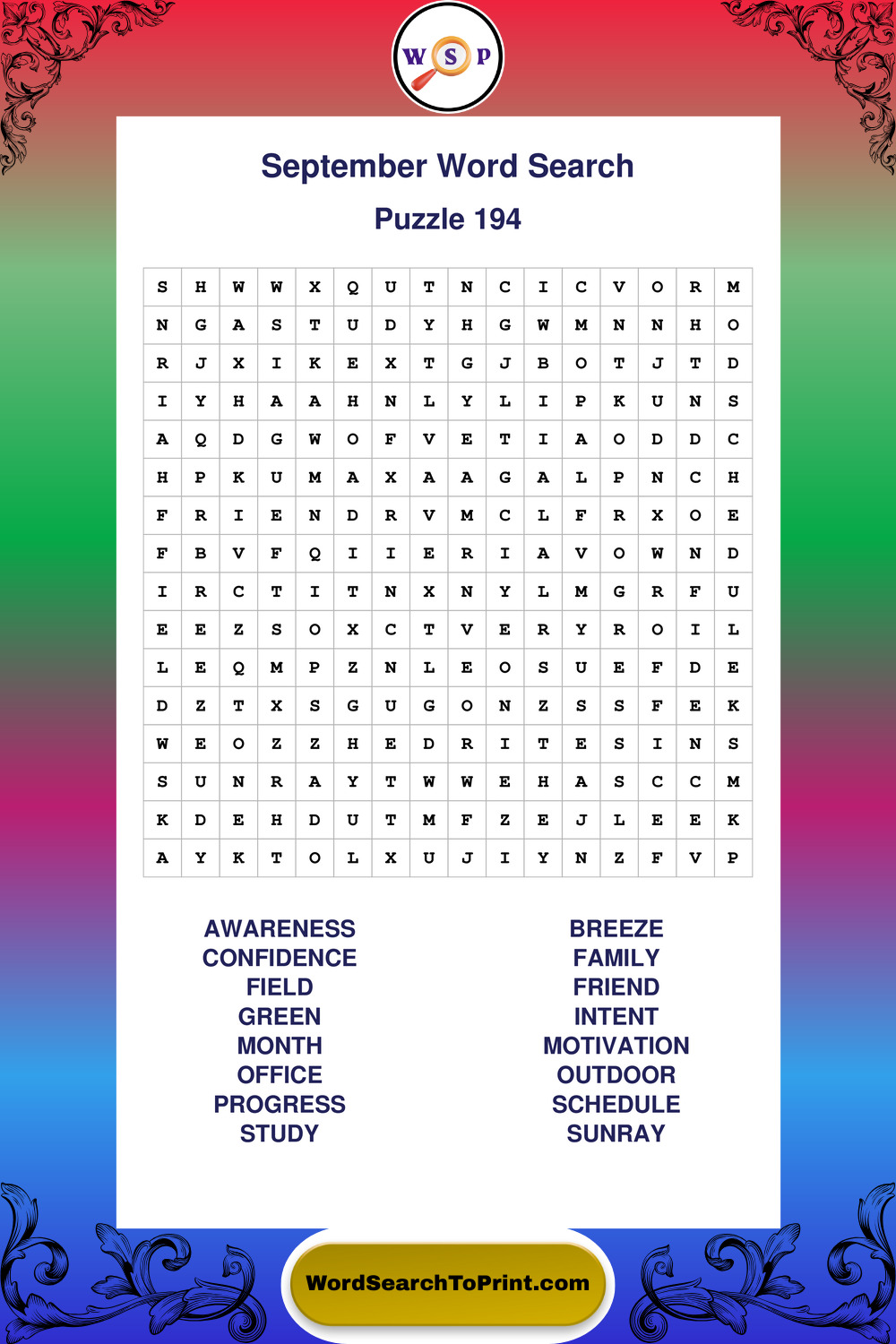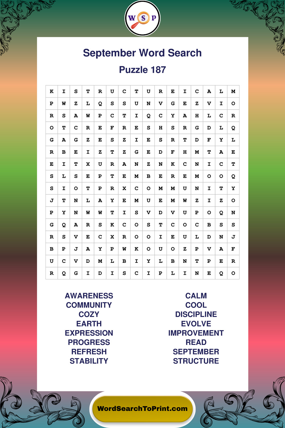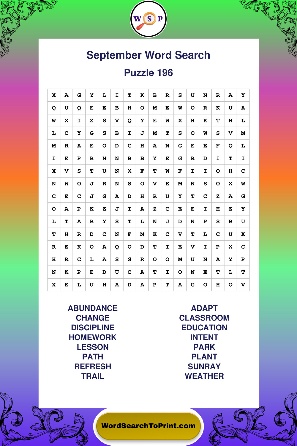 Discover printable large print September wordsearches made for relaxed enjoyment and clear, uncluttered solving.