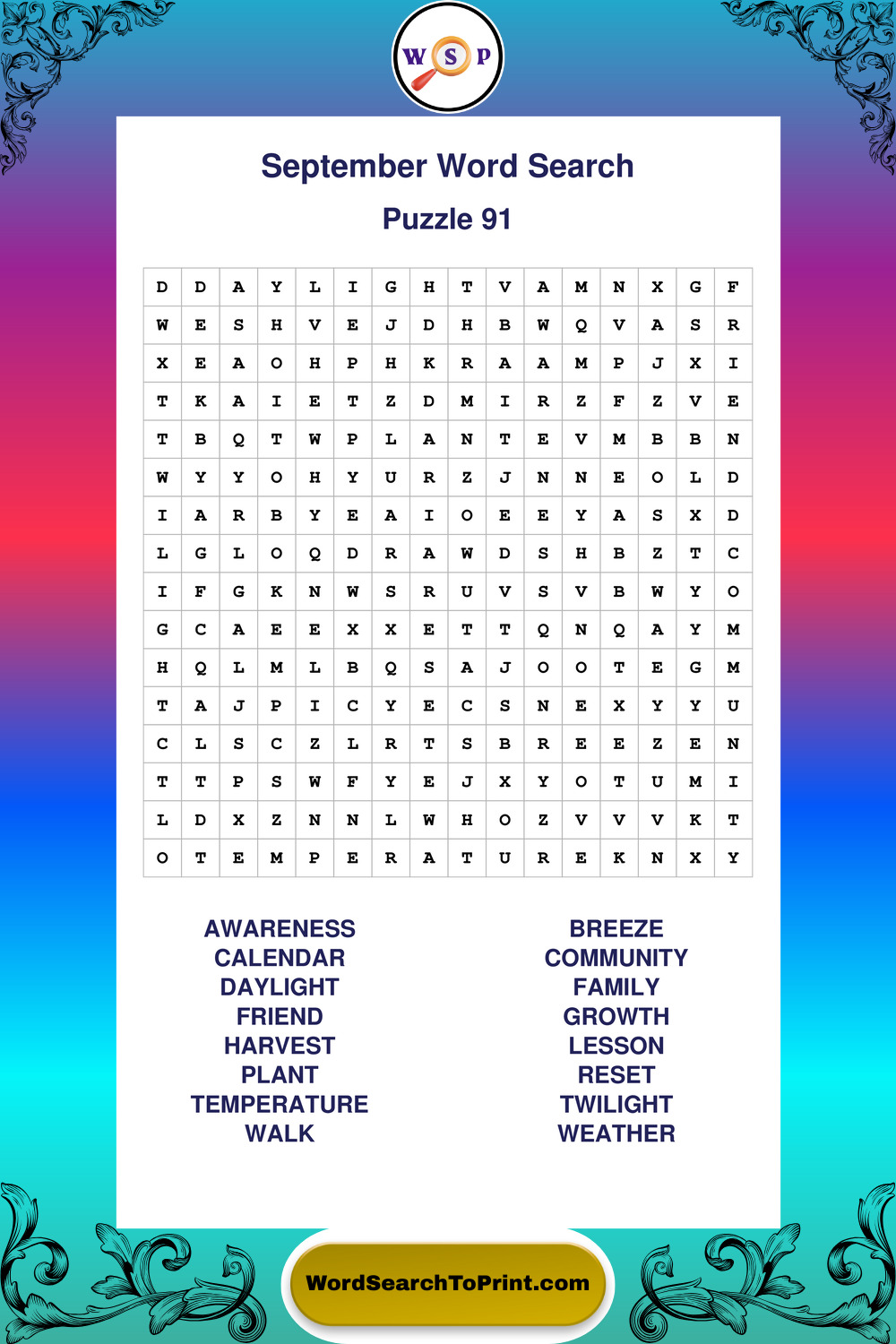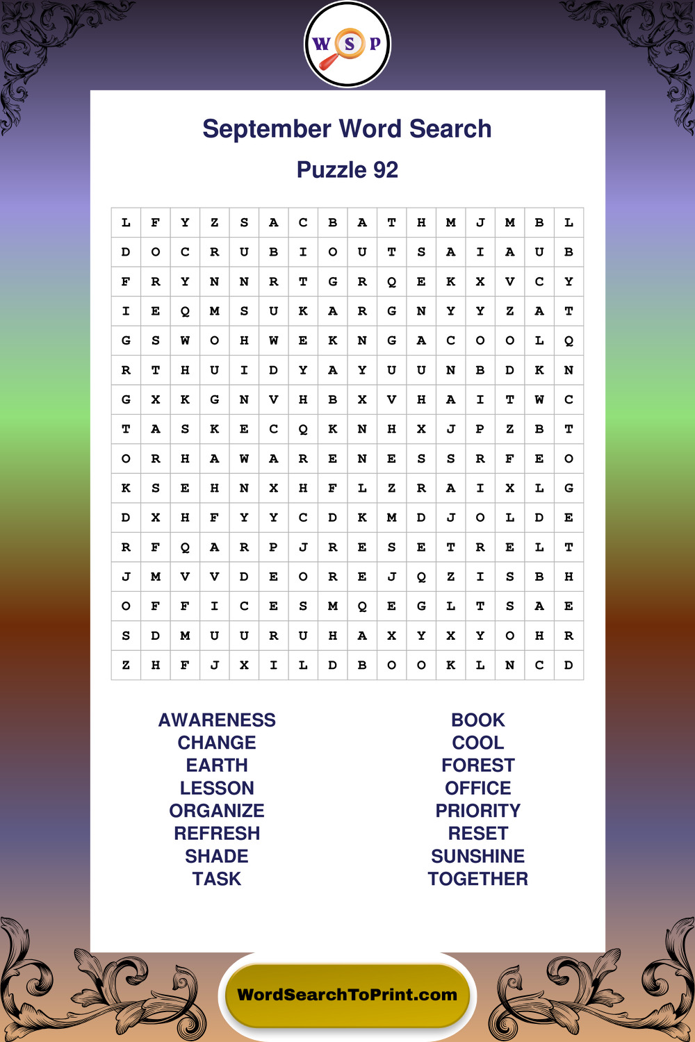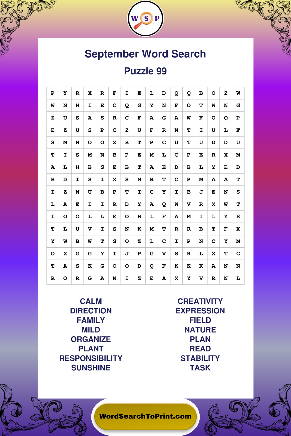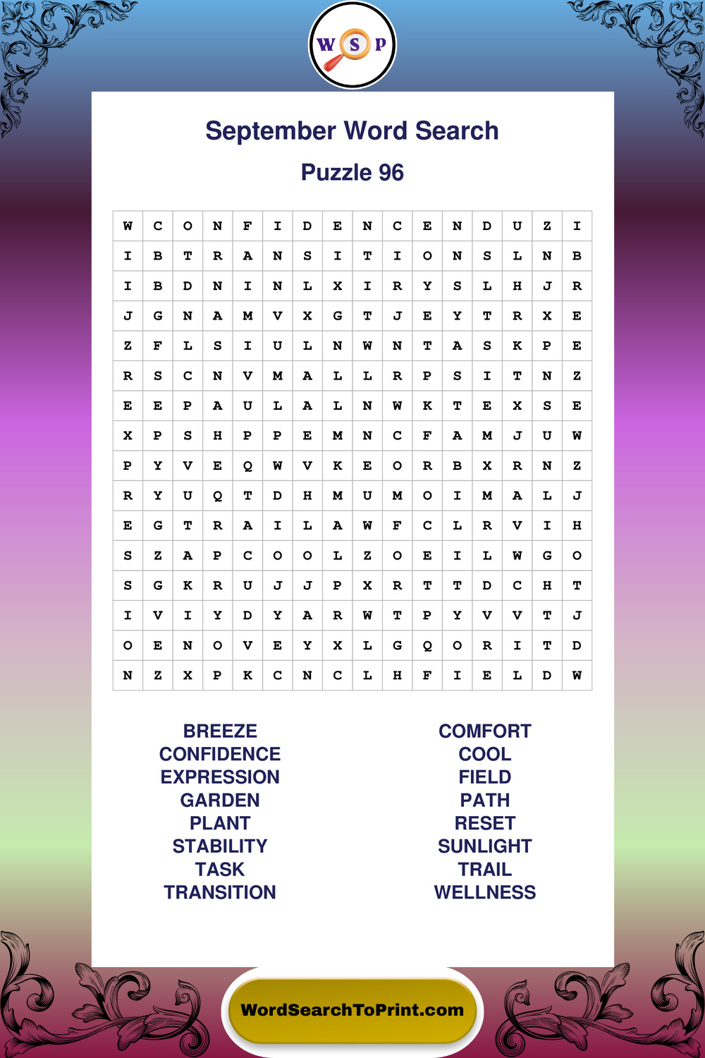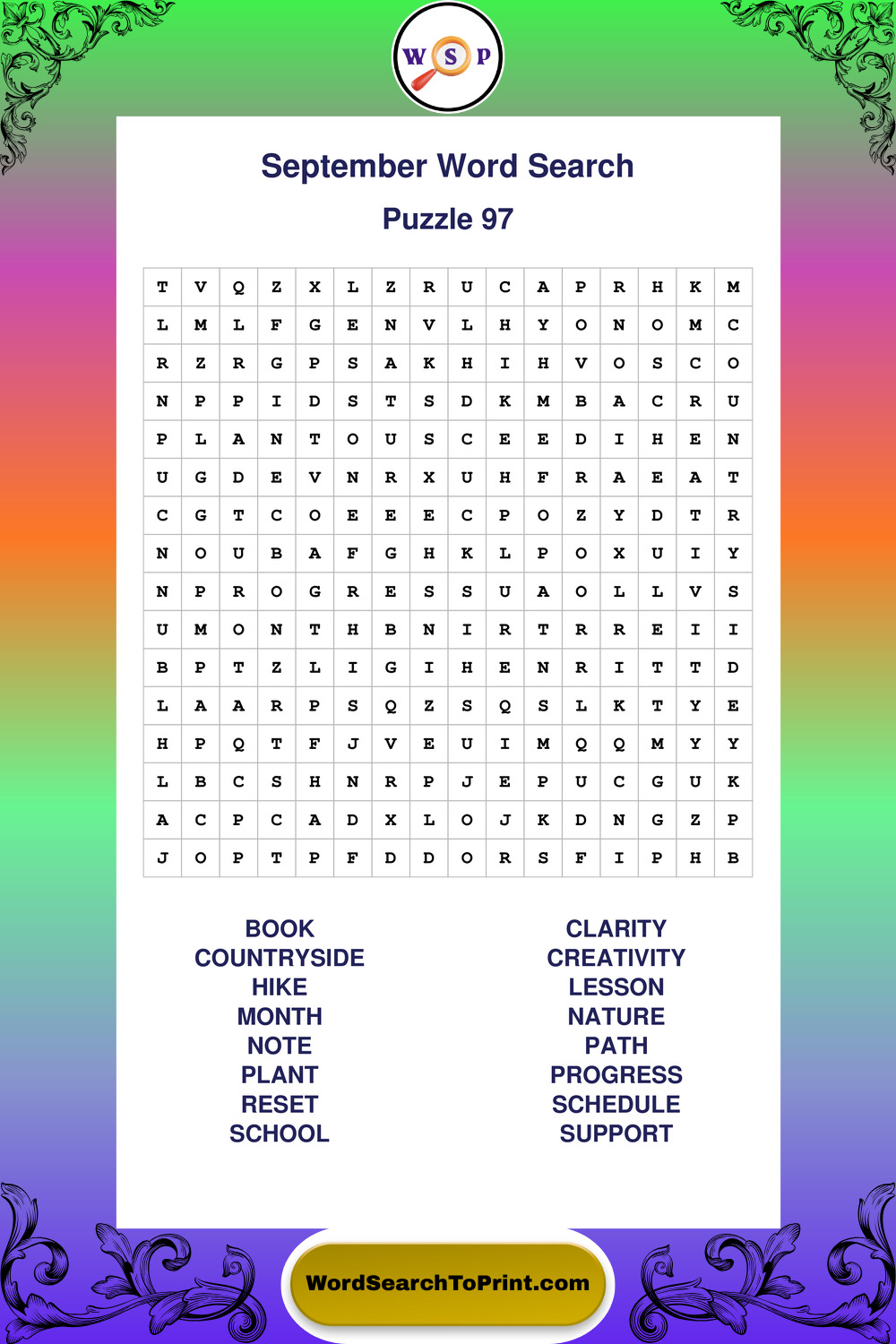 Discover printable large print September wordsearches made for relaxed enjoyment and clear, uncluttered solving.