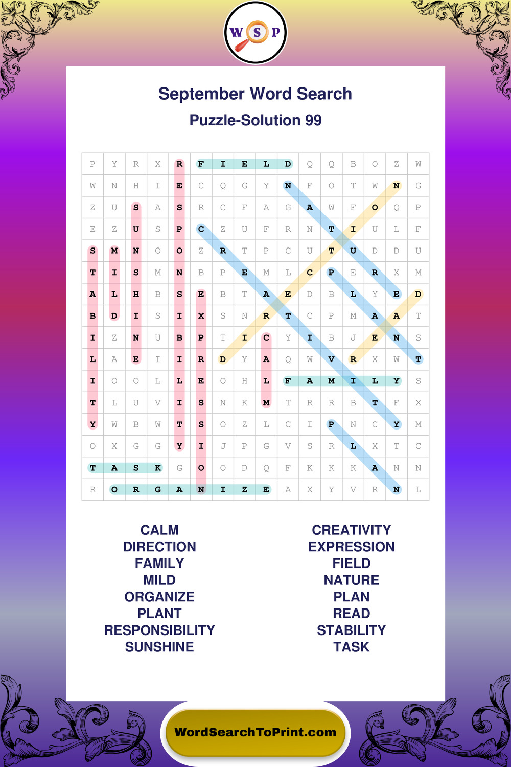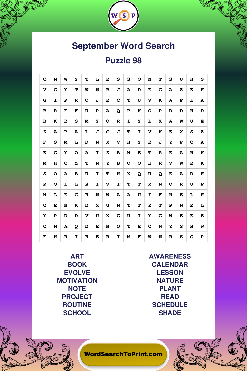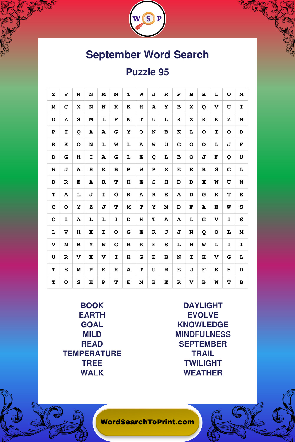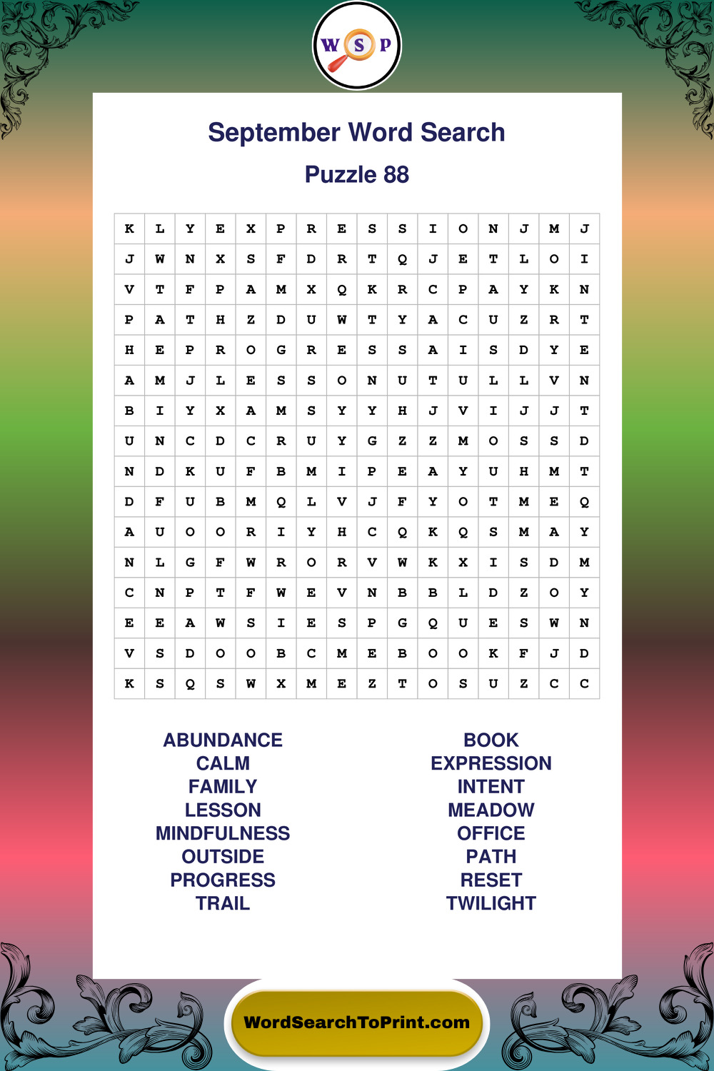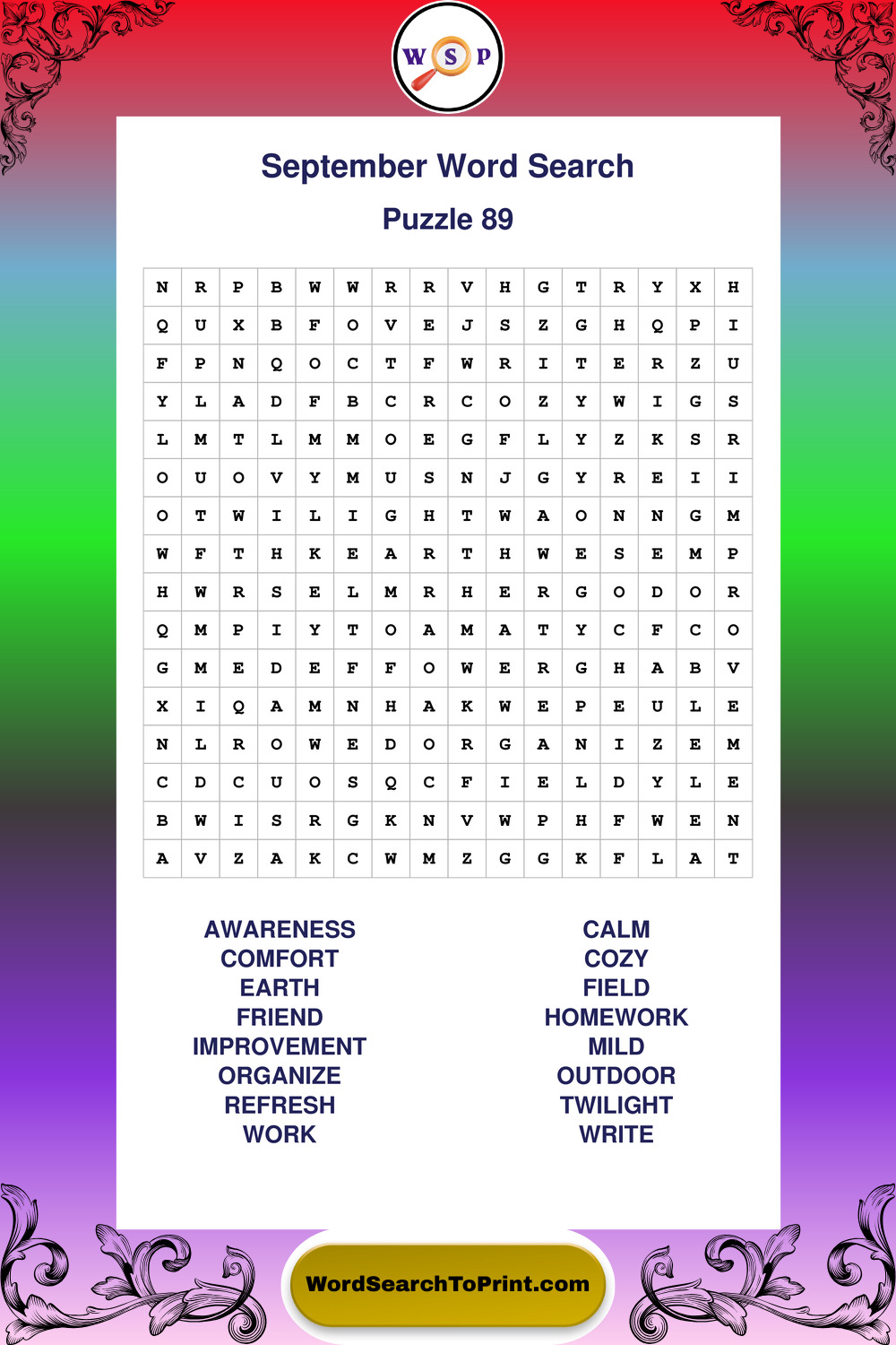 Discover printable large print September wordsearches made for relaxed enjoyment and clear, uncluttered solving.