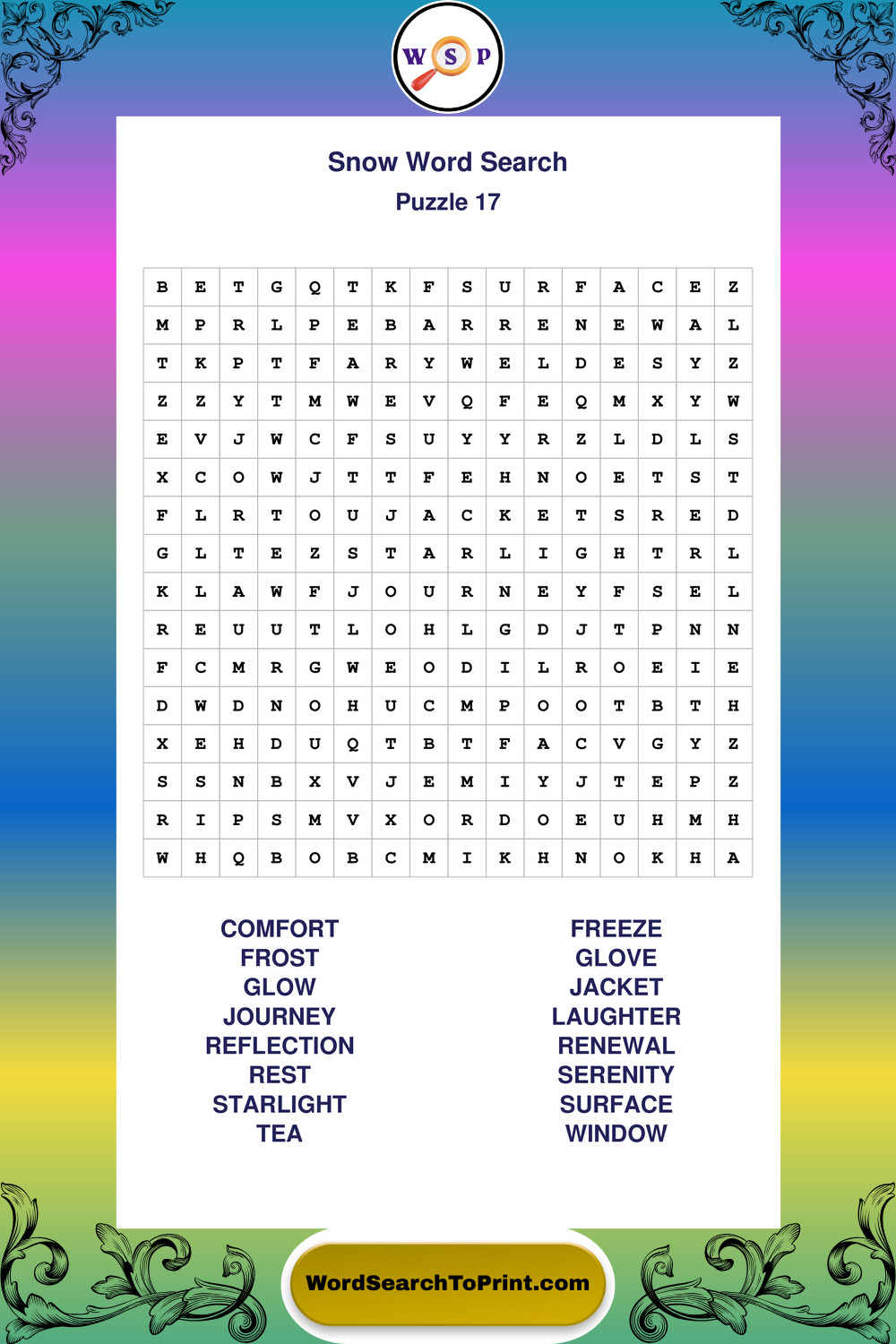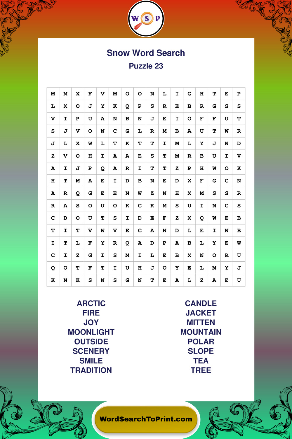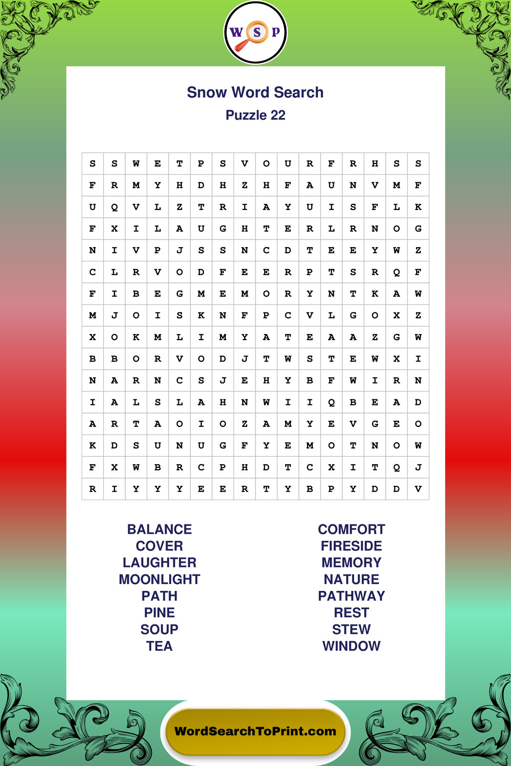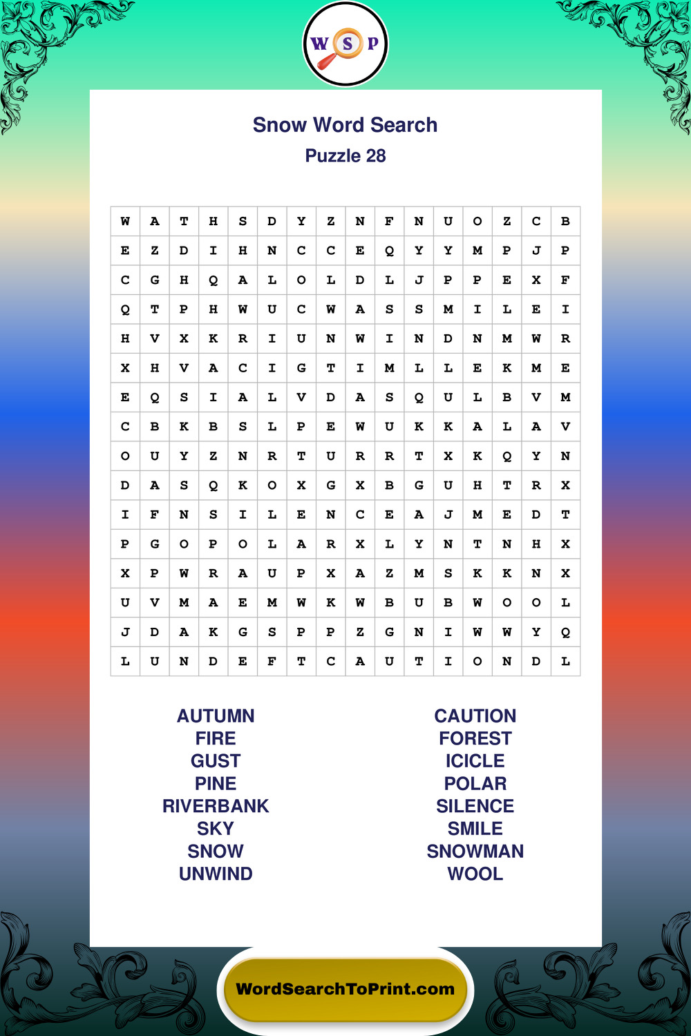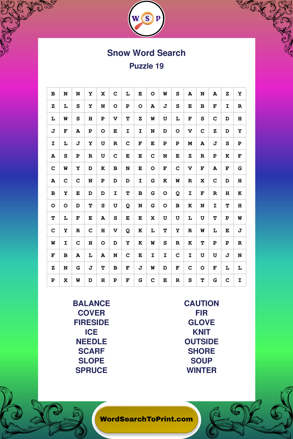 Explore a growing collection of large print Snow wordsearches created for comfortable, stress-free solving at your own pace.