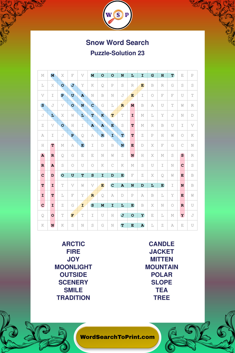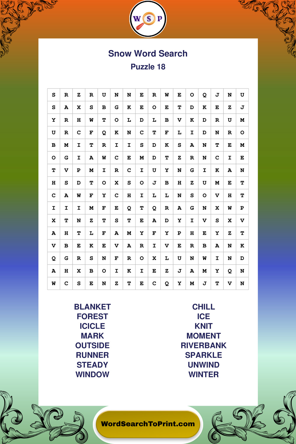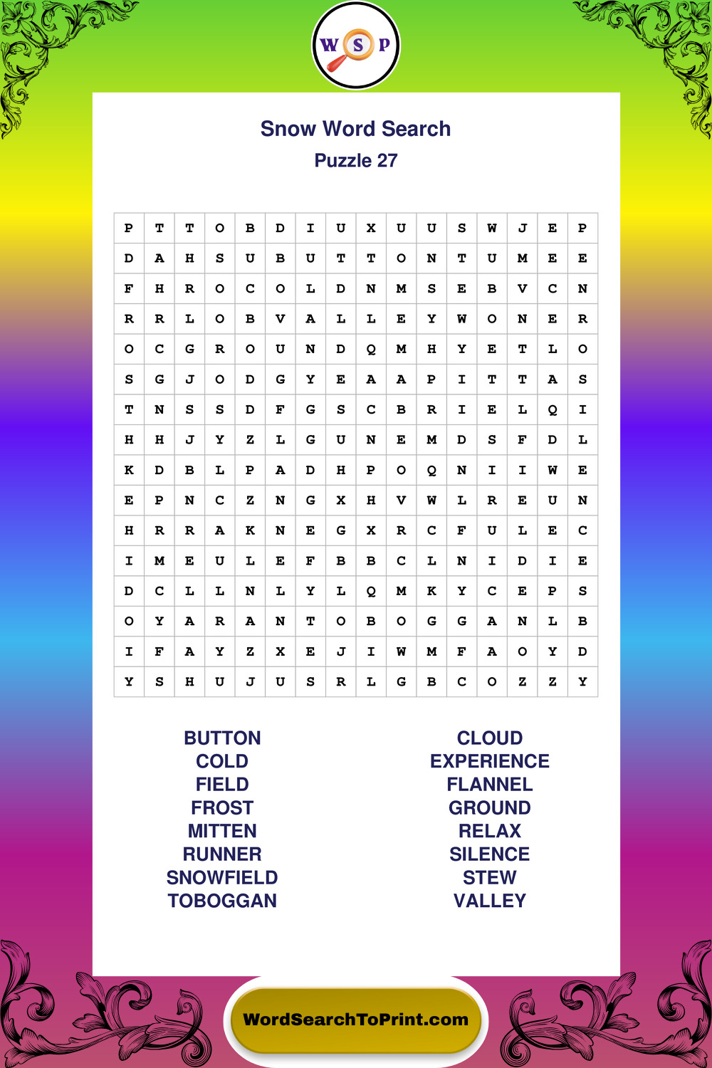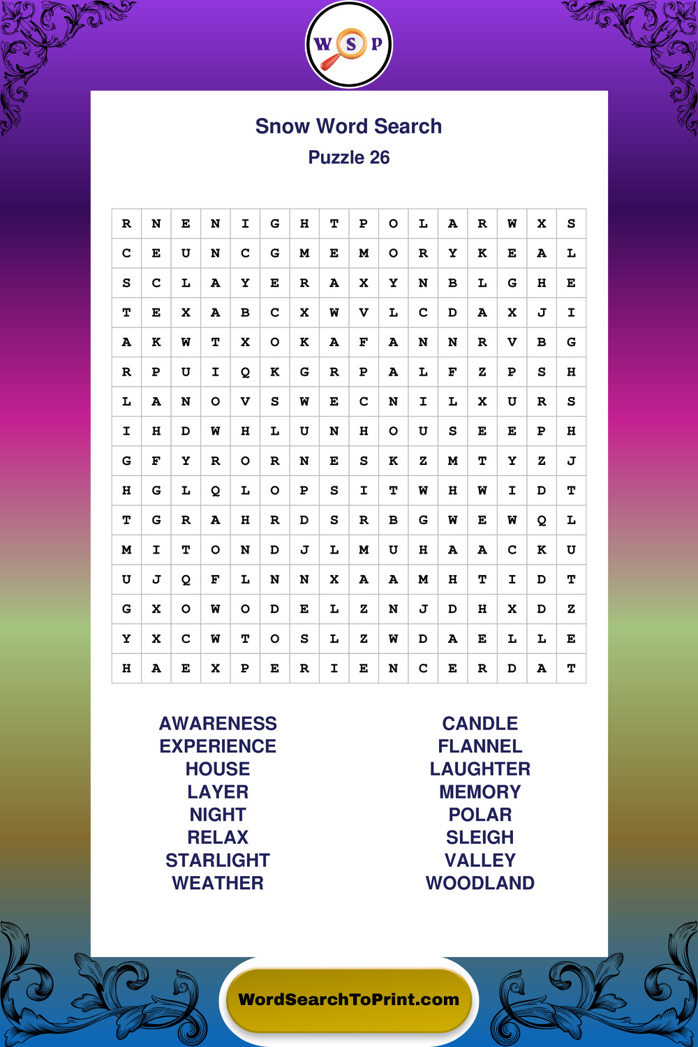 Explore a growing collection of large print Snow wordsearches created for comfortable, stress-free solving at your own pace.