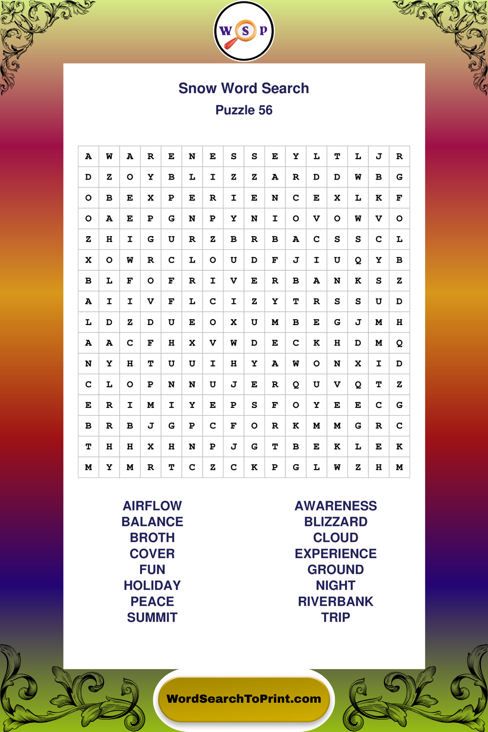 Snow Wordsearches