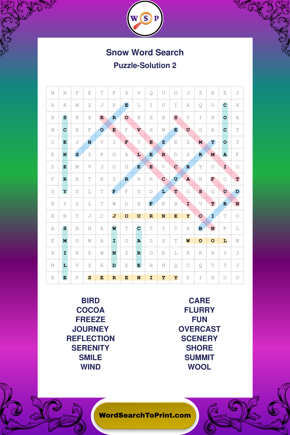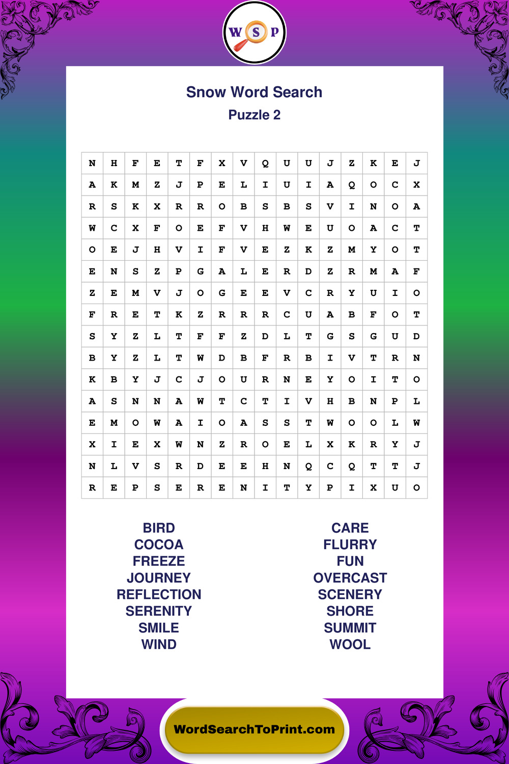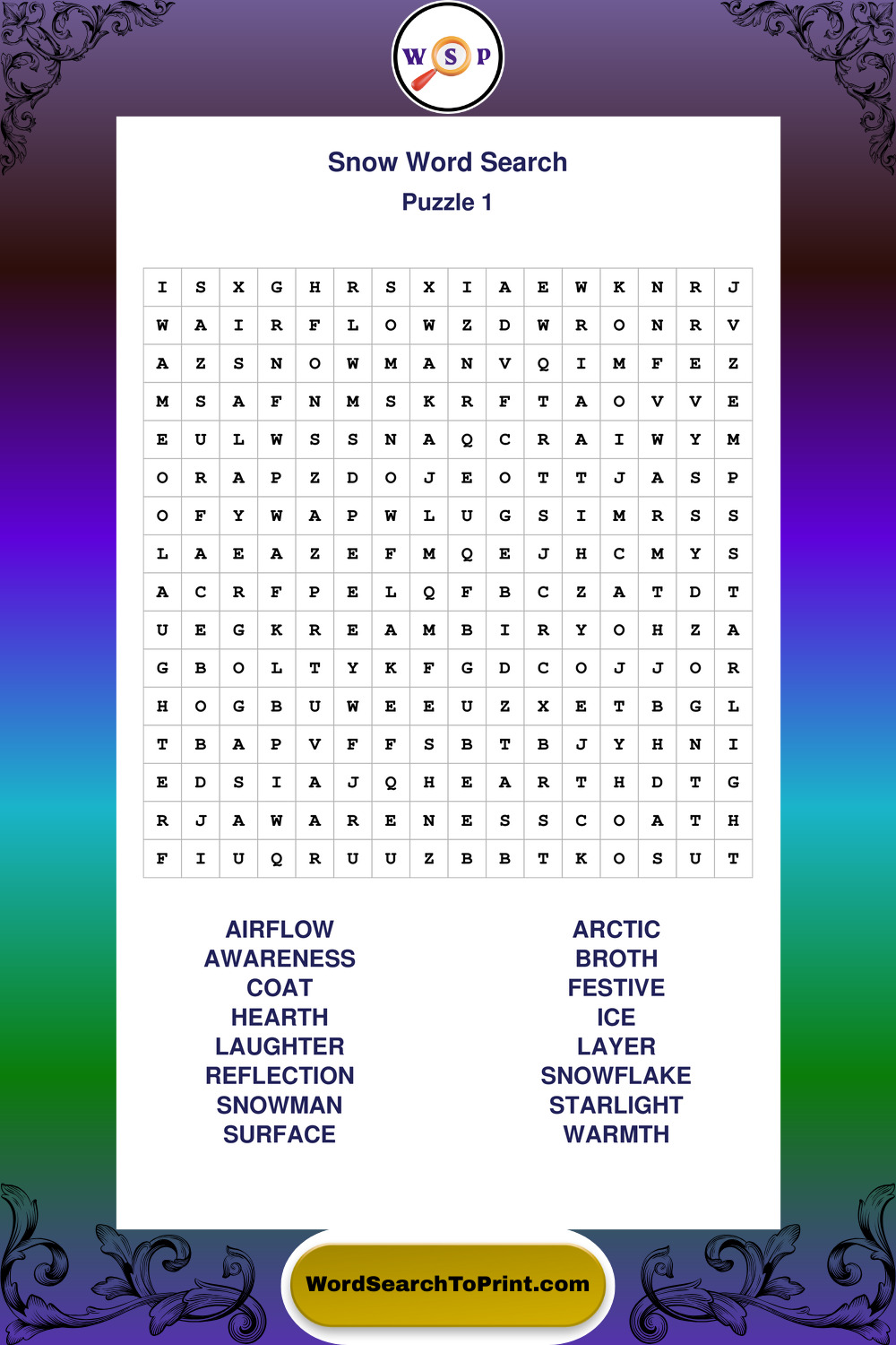 Explore a growing collection of large print Snow wordsearches created for comfortable, stress-free solving at your own pace.