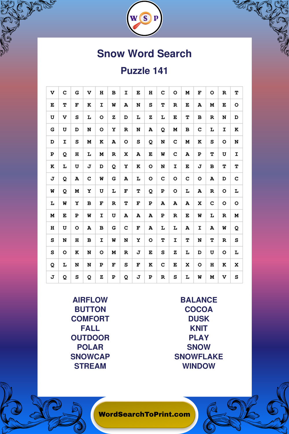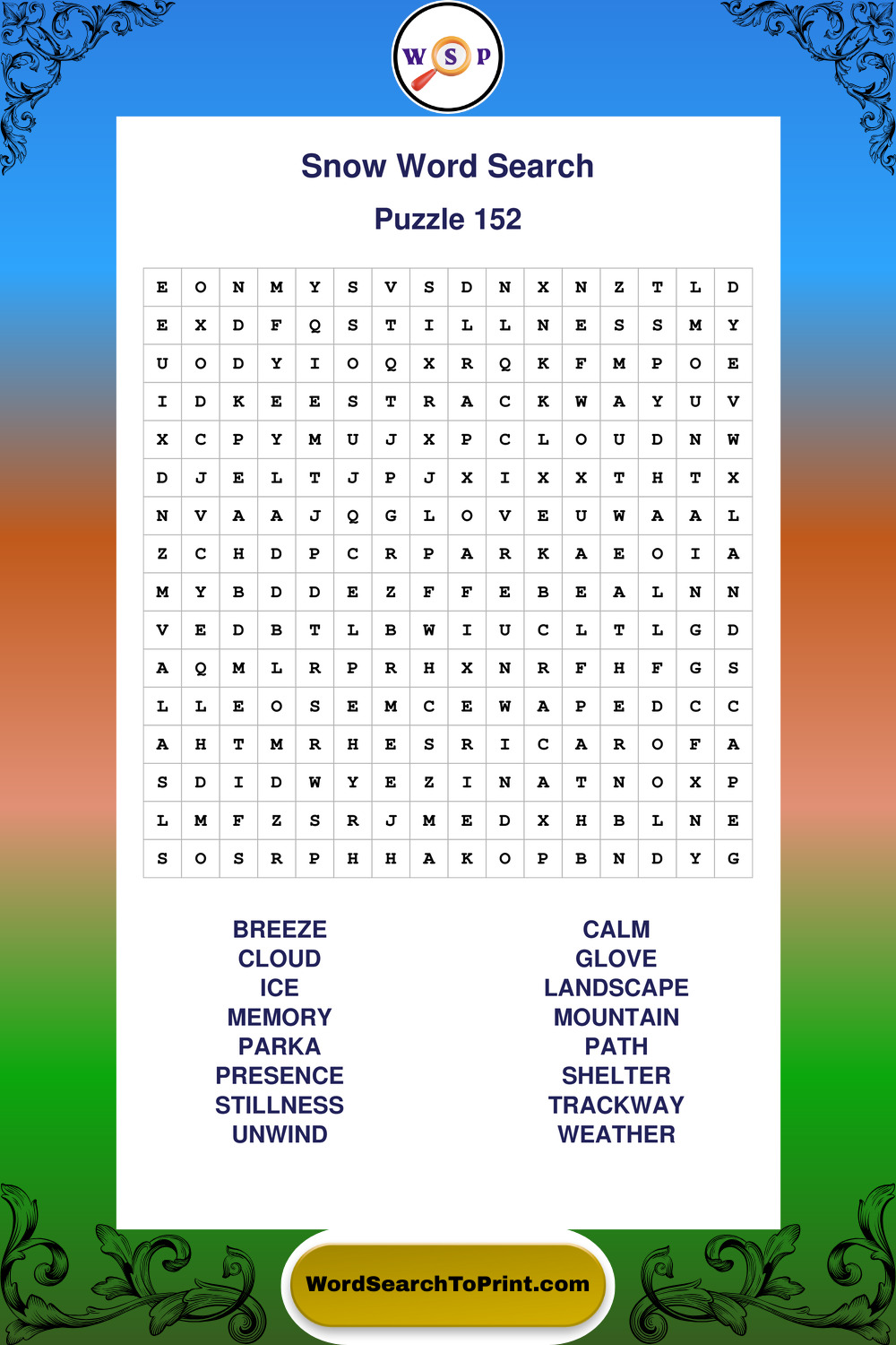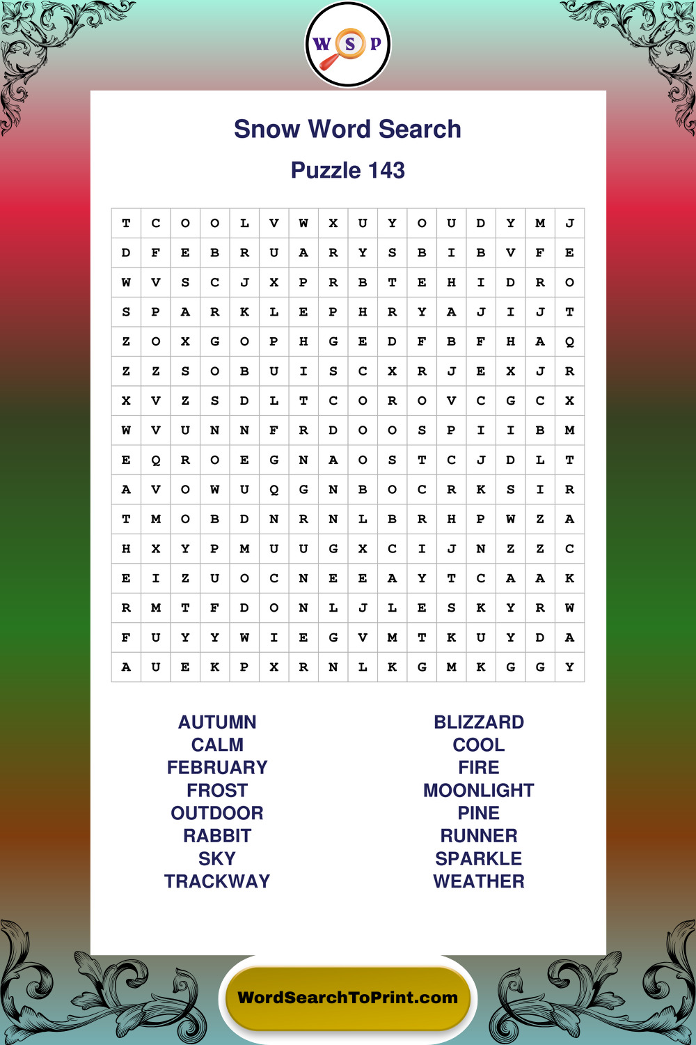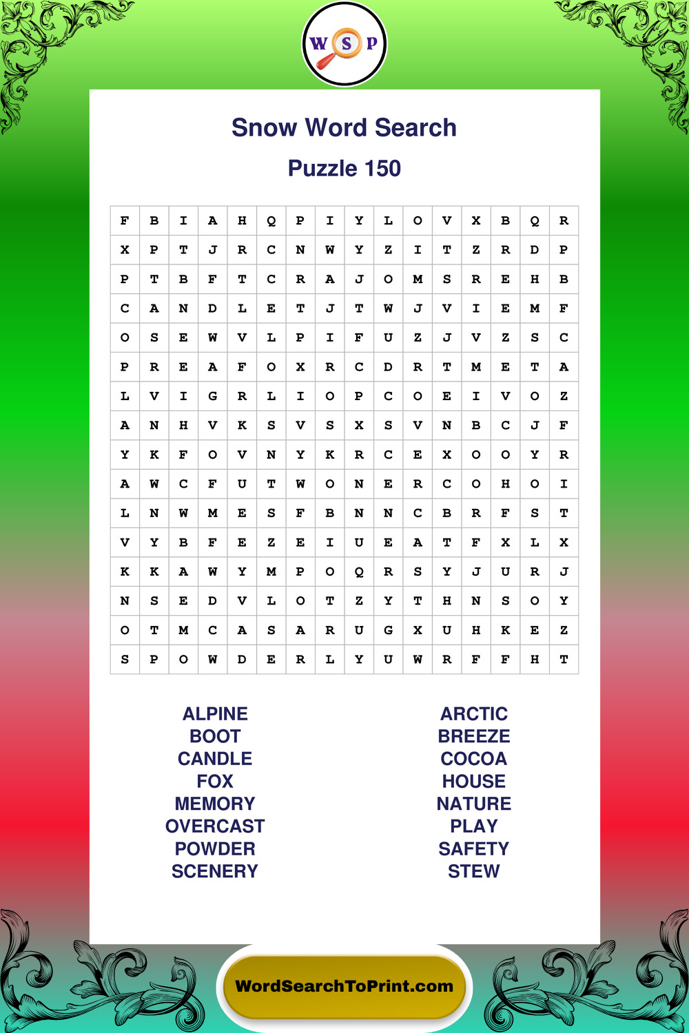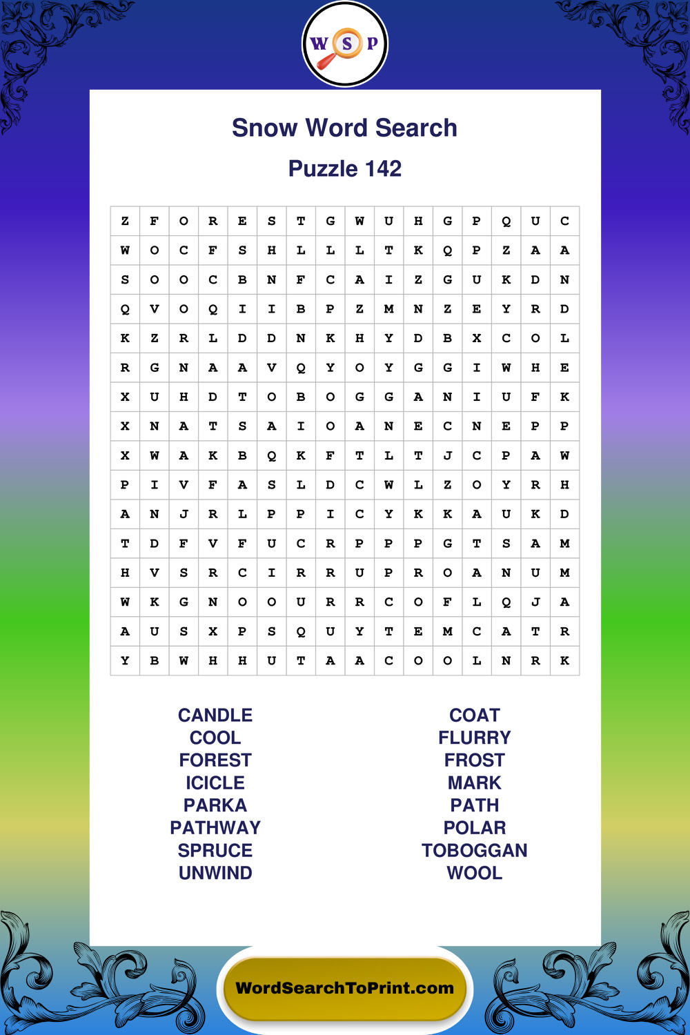 Explore a growing collection of large print Snow wordsearches created for comfortable, stress-free solving at your own pace.