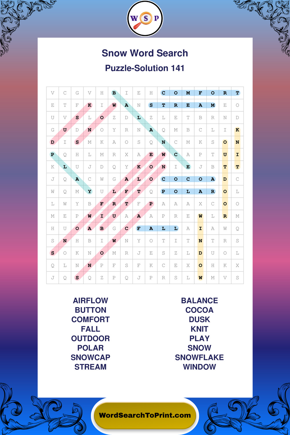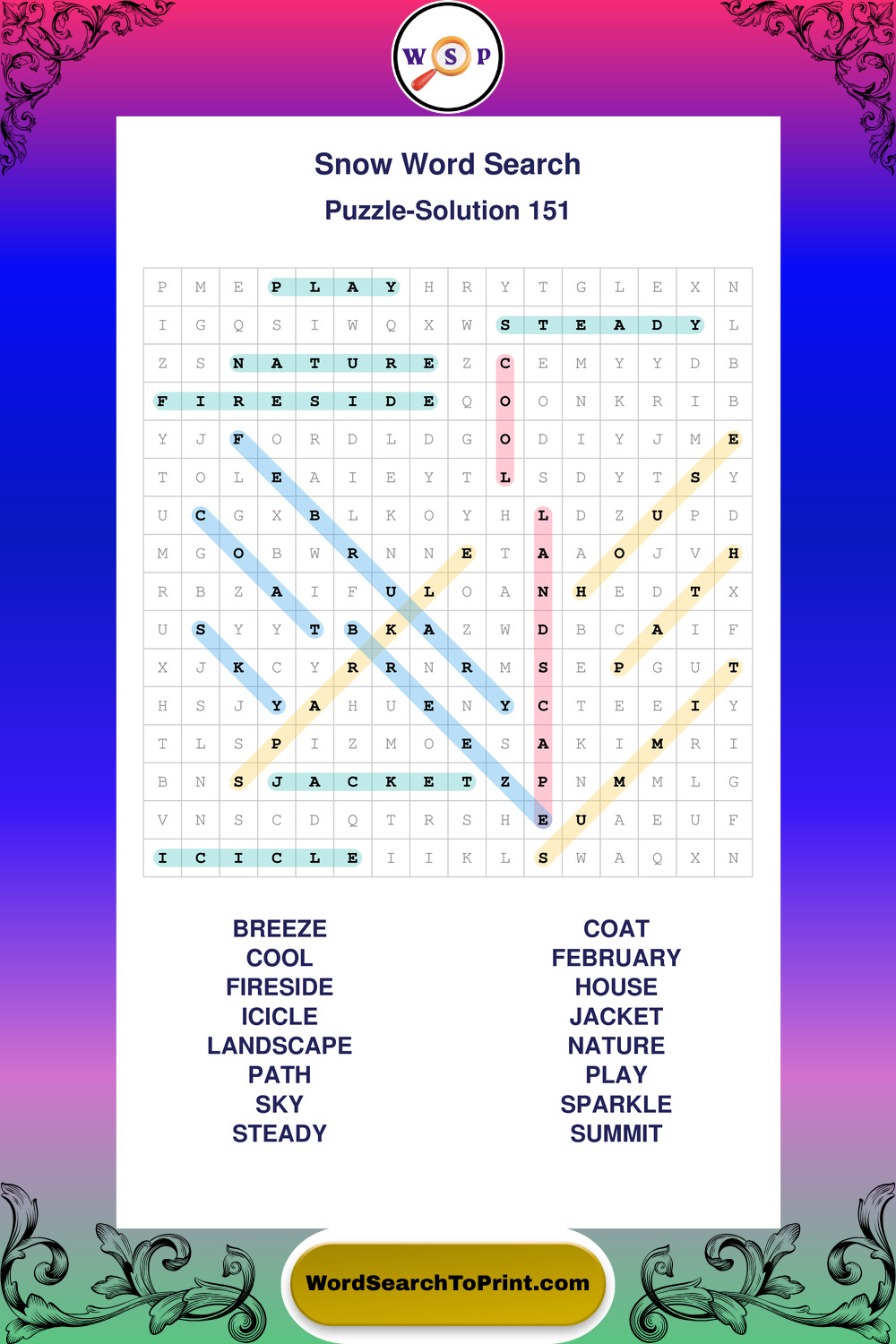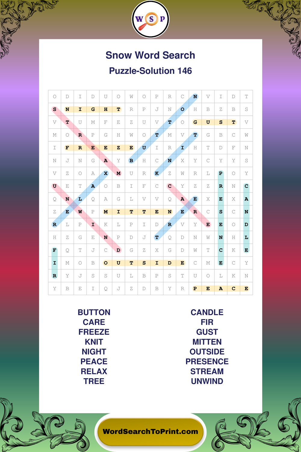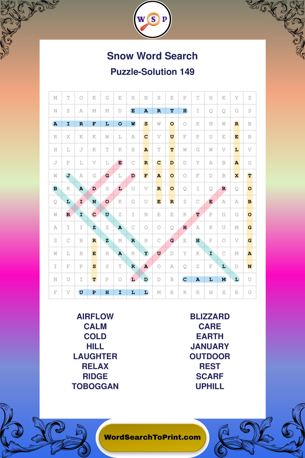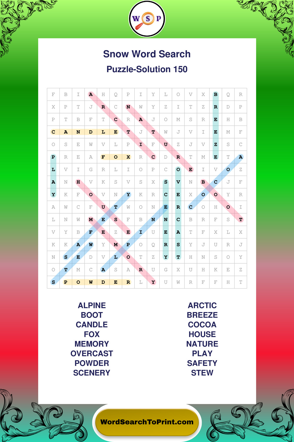 Explore a growing collection of large print Snow wordsearches created for comfortable, stress-free solving at your own pace.
