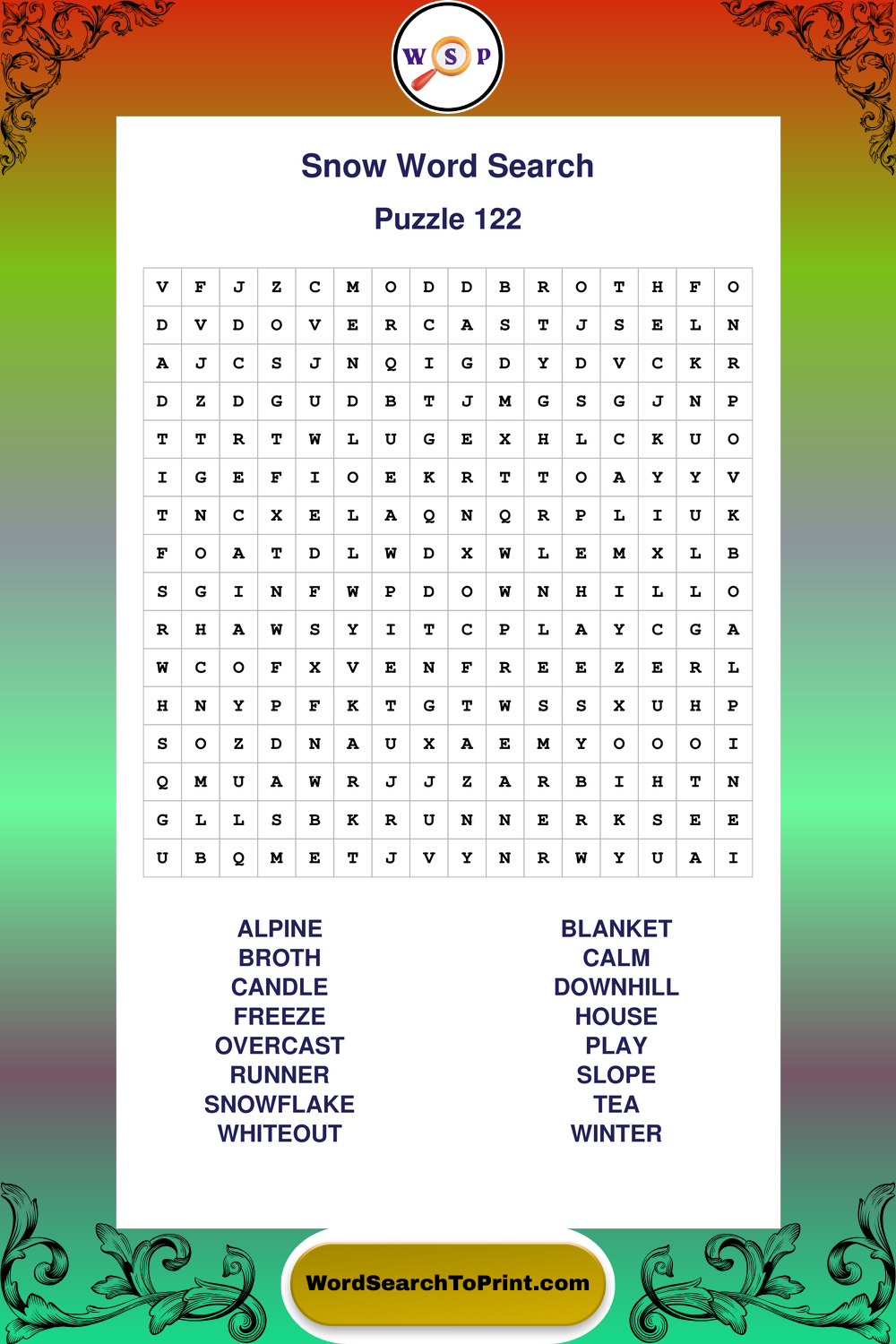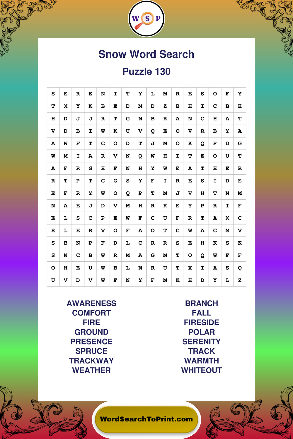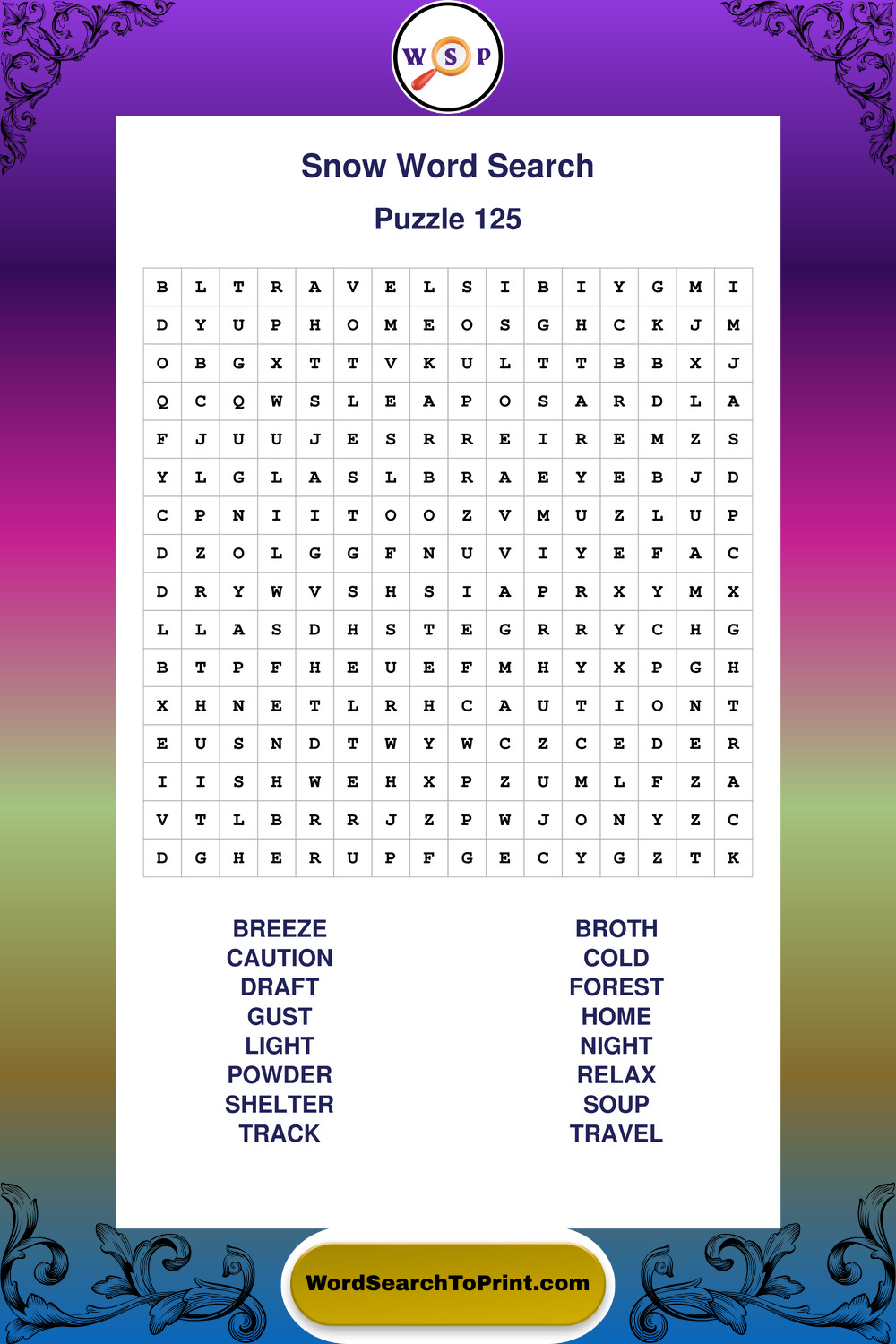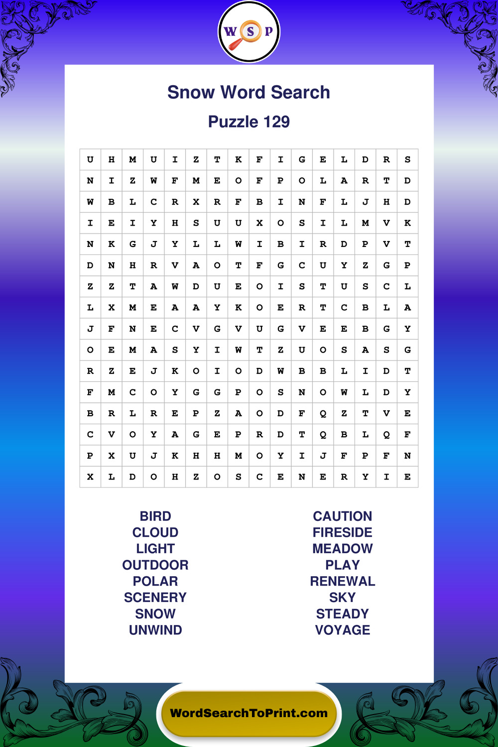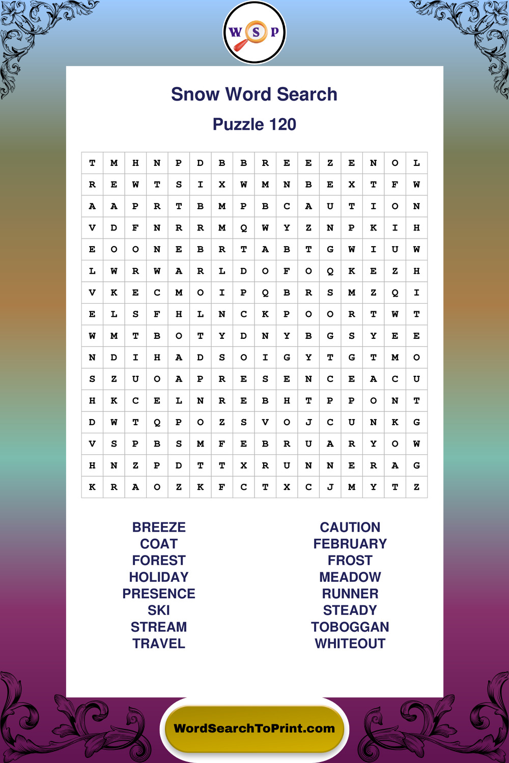 Explore a growing collection of large print Snow wordsearches created for comfortable, stress-free solving at your own pace.