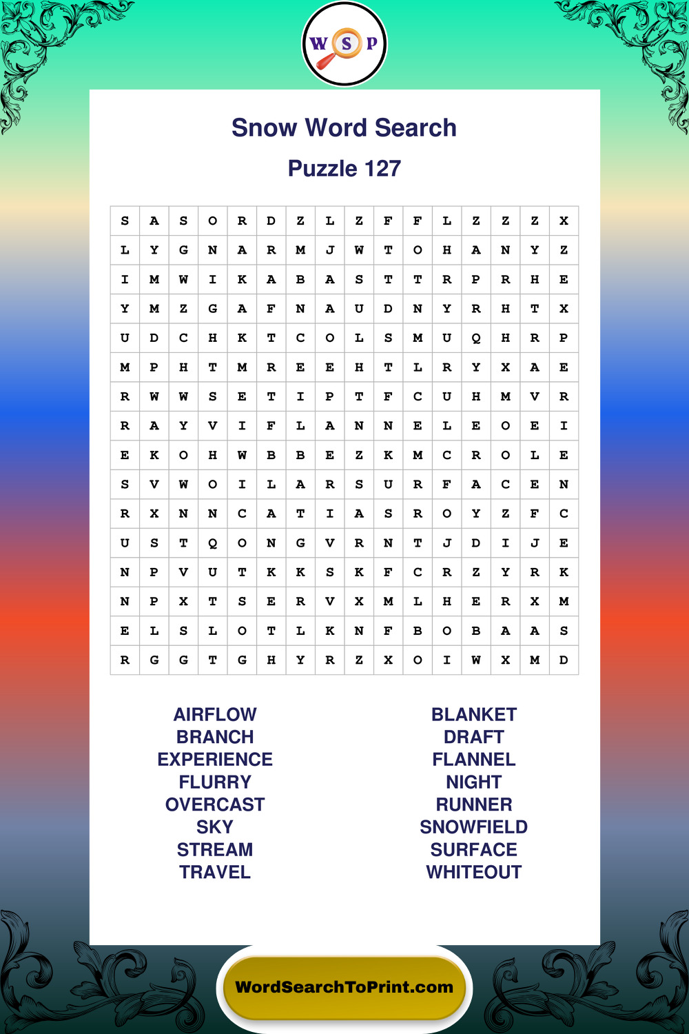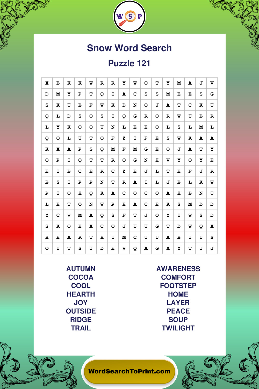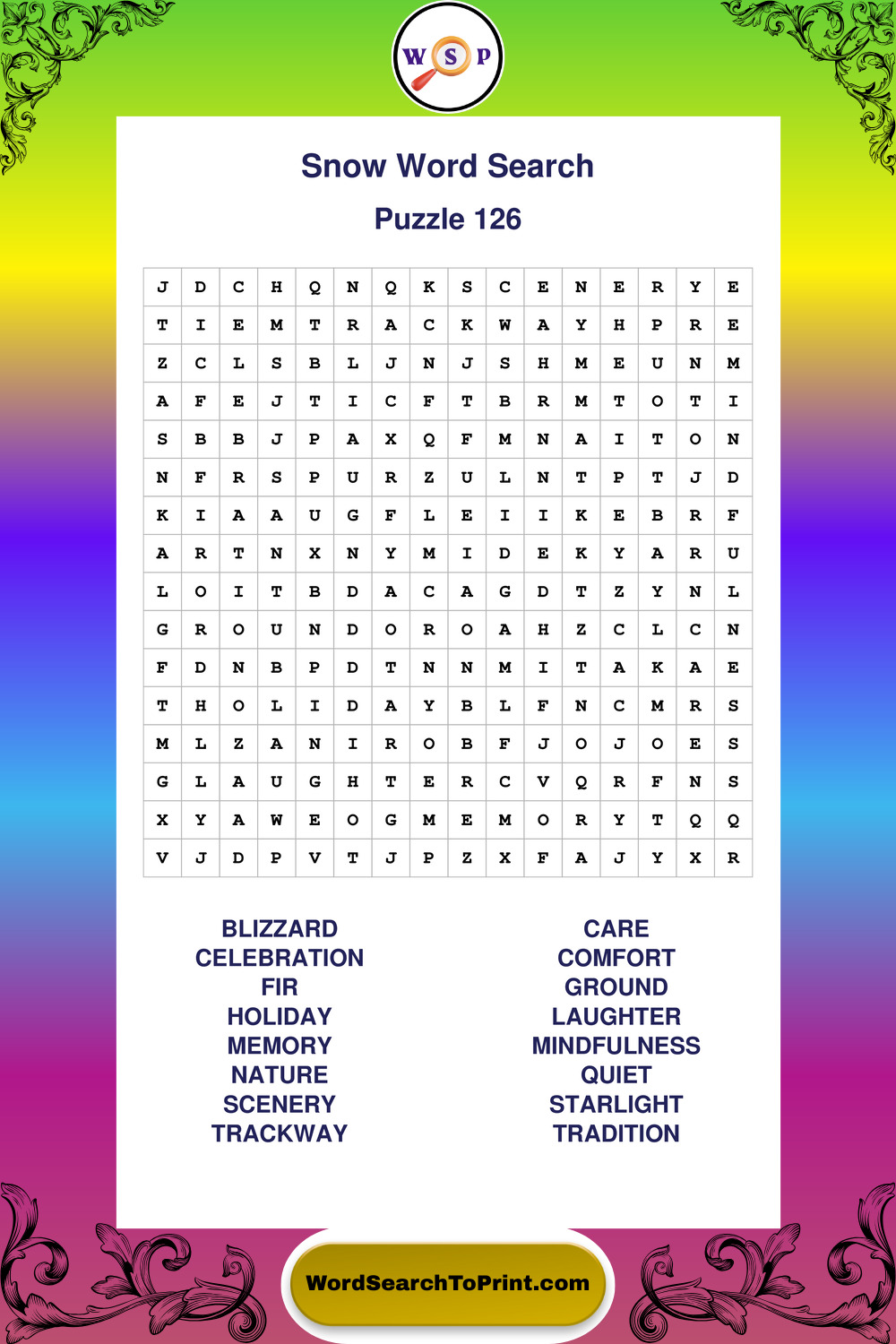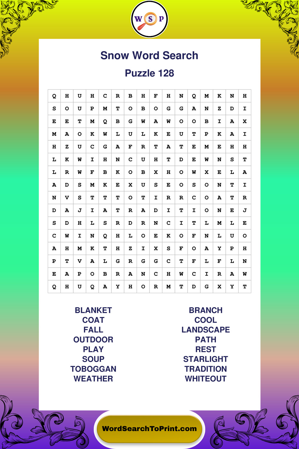 Explore a growing collection of large print Snow wordsearches created for comfortable, stress-free solving at your own pace.