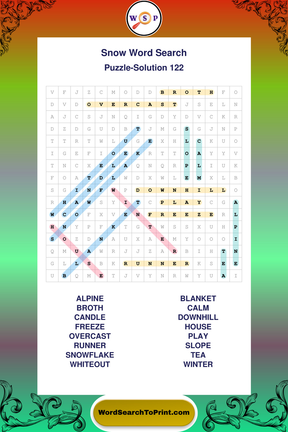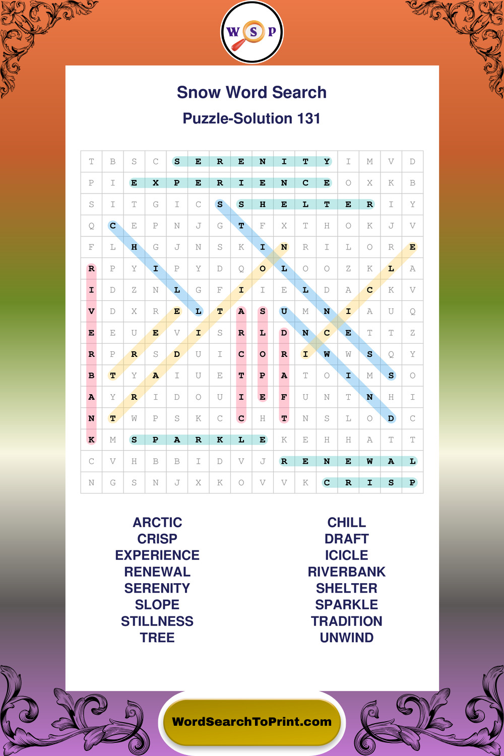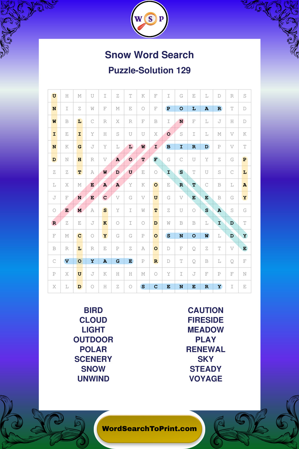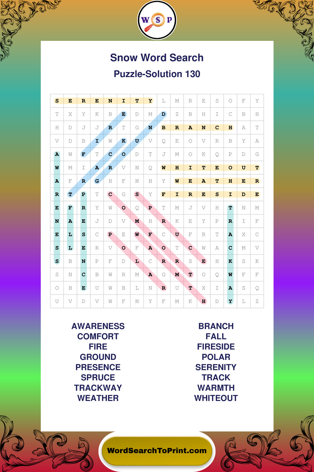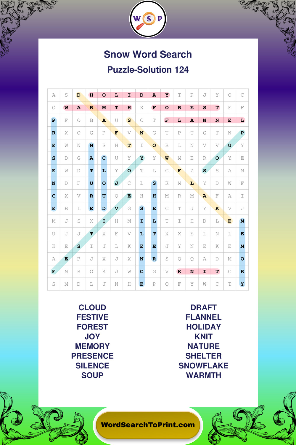 Explore a growing collection of large print Snow wordsearches created for comfortable, stress-free solving at your own pace.