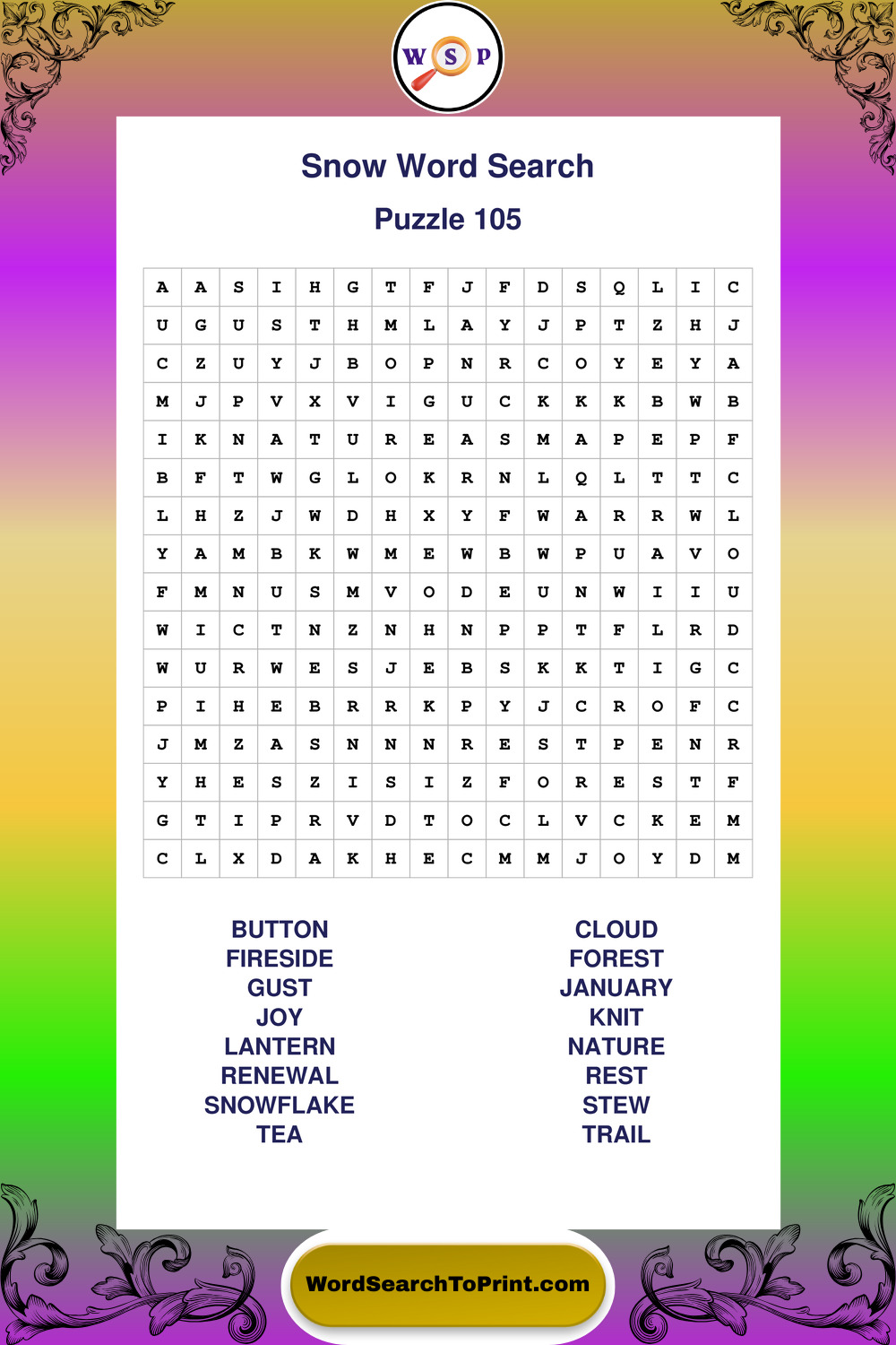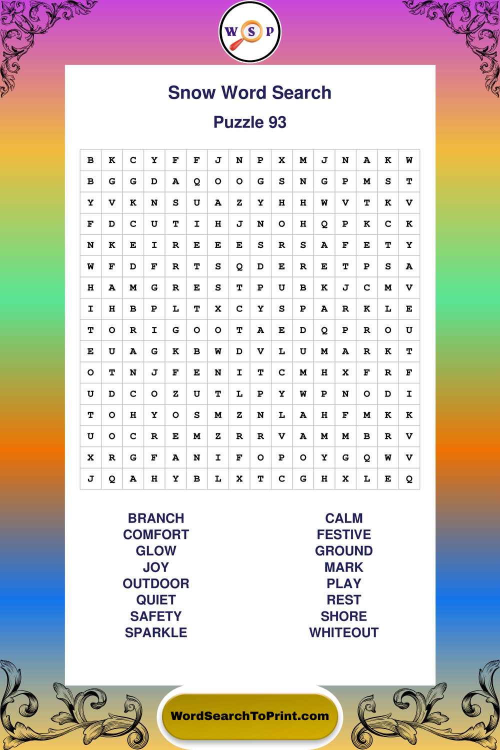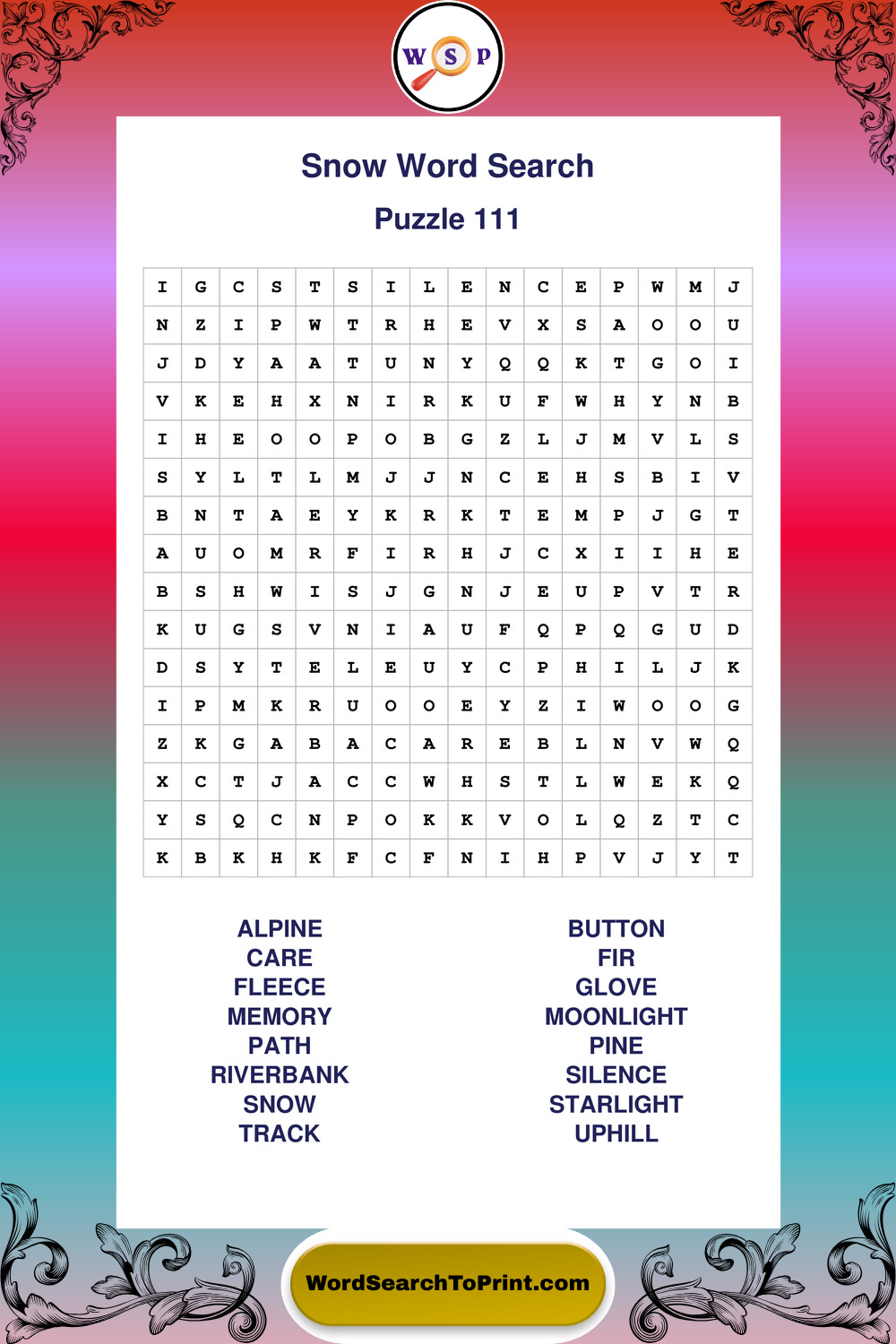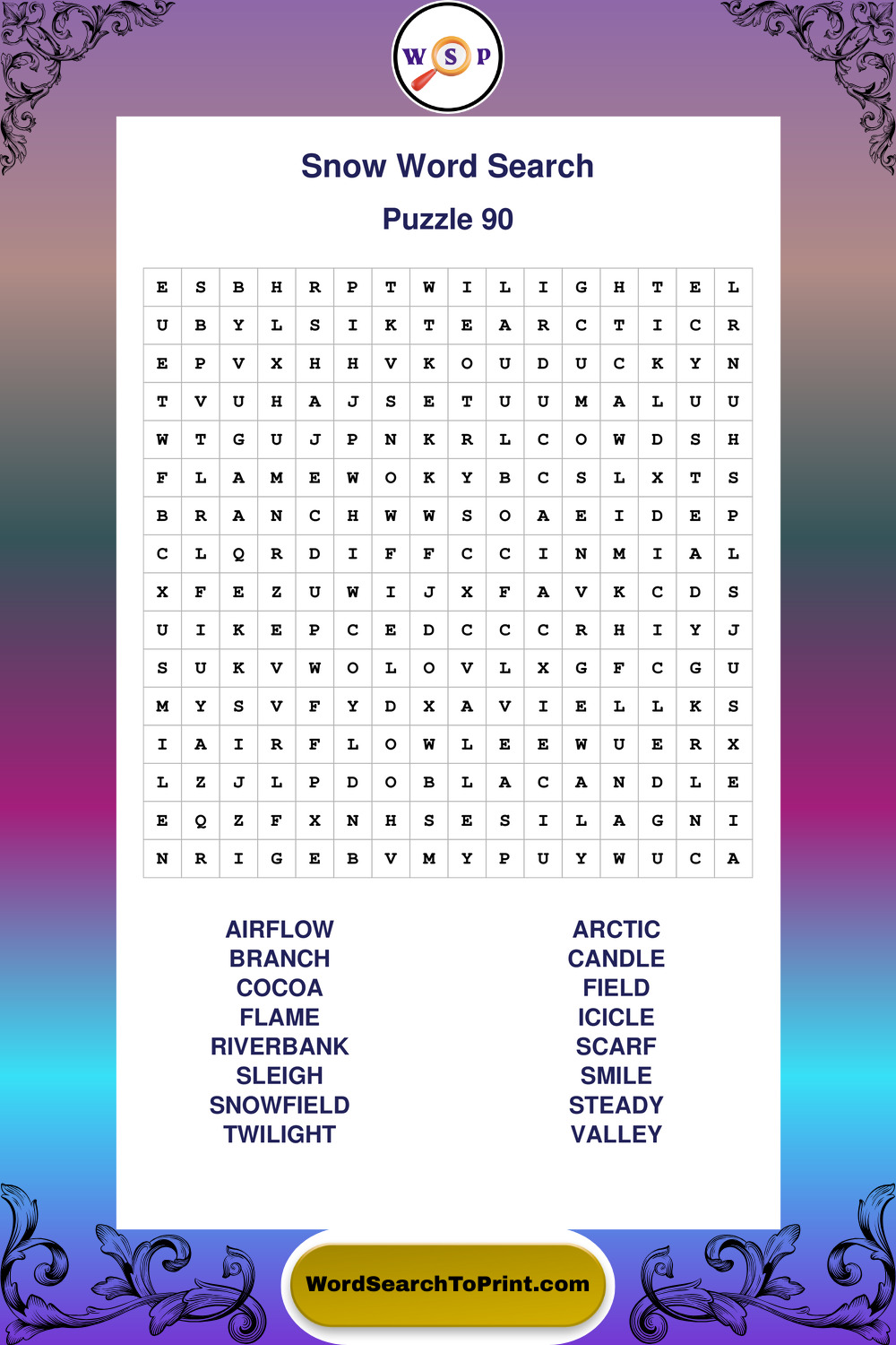 Explore a growing collection of large print Snow wordsearches created for comfortable, stress-free solving at your own pace.
