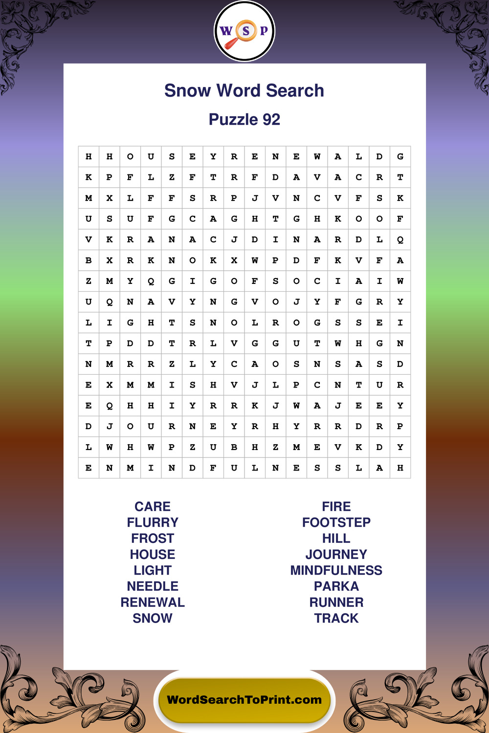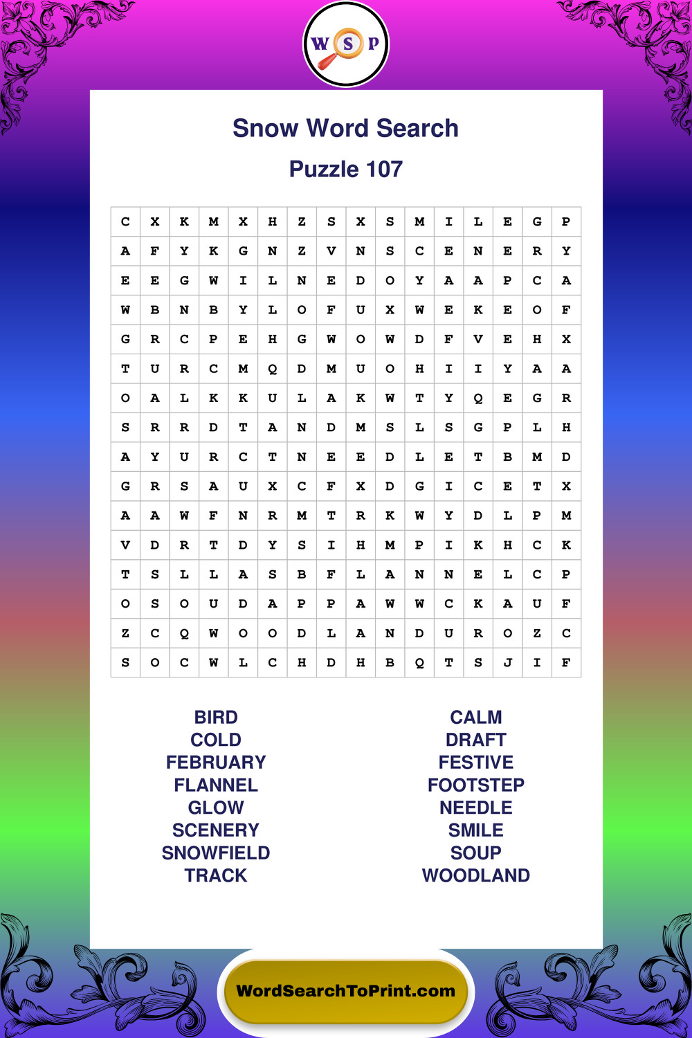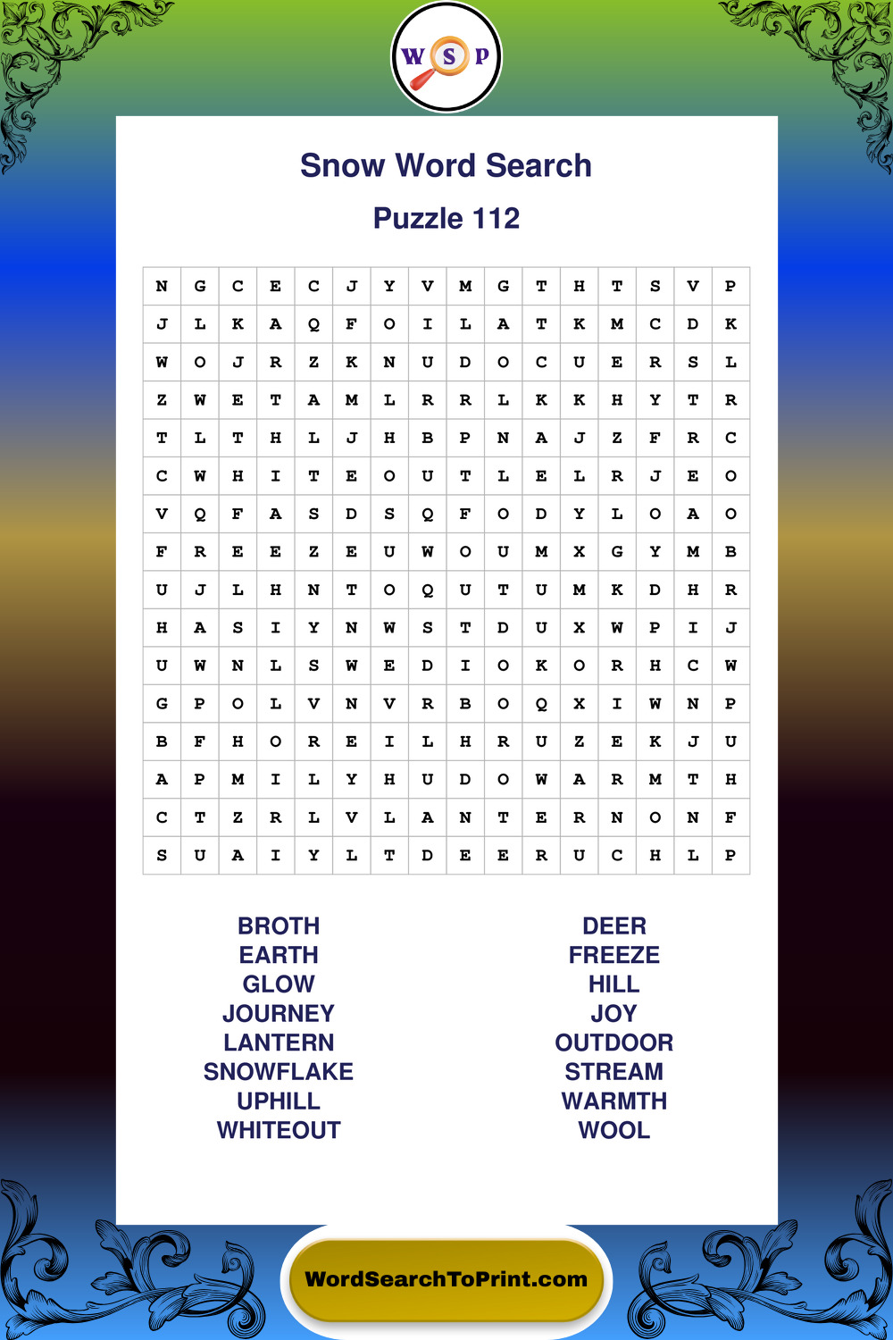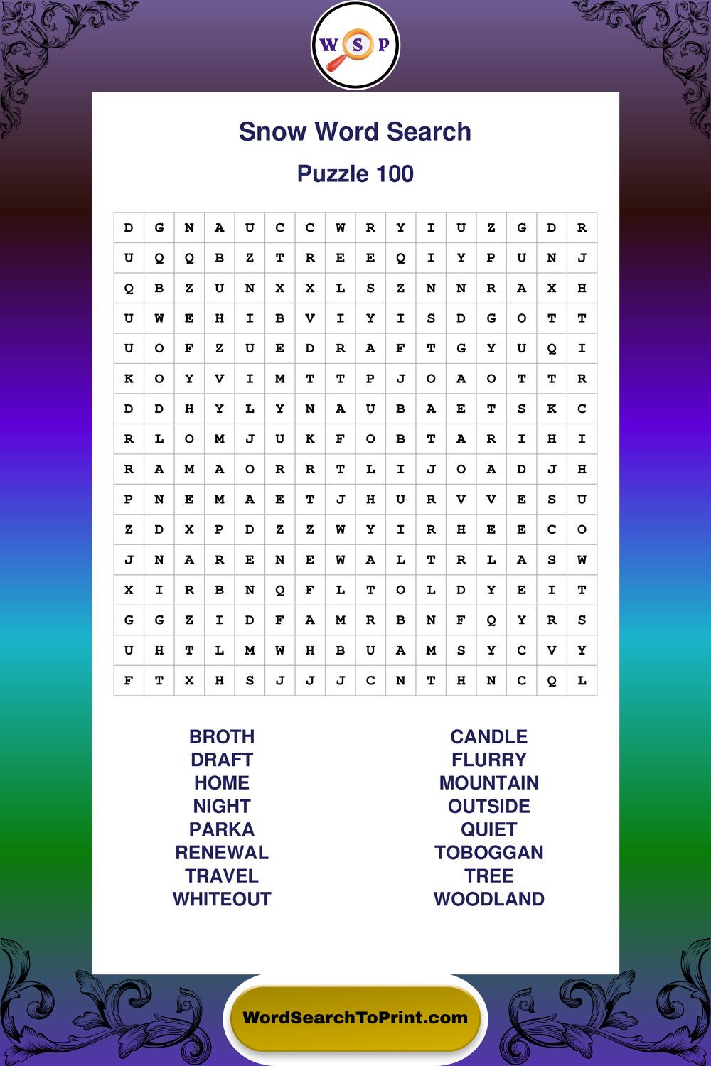 Explore a growing collection of large print Snow wordsearches created for comfortable, stress-free solving at your own pace.