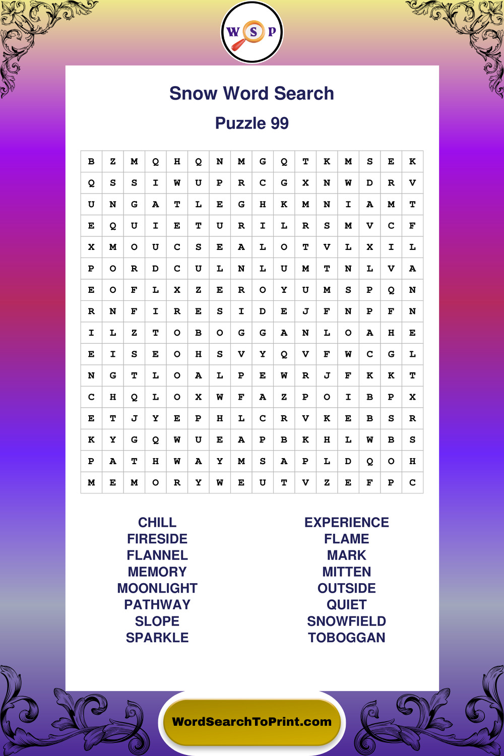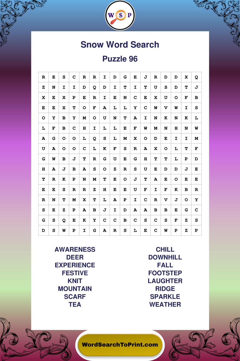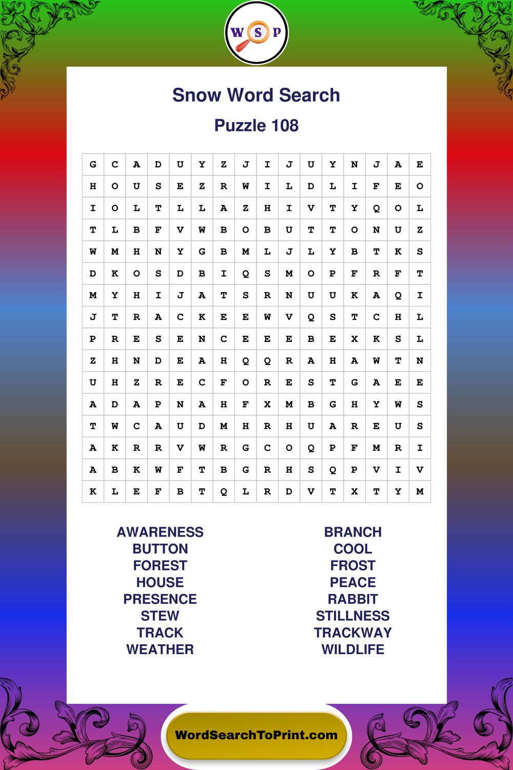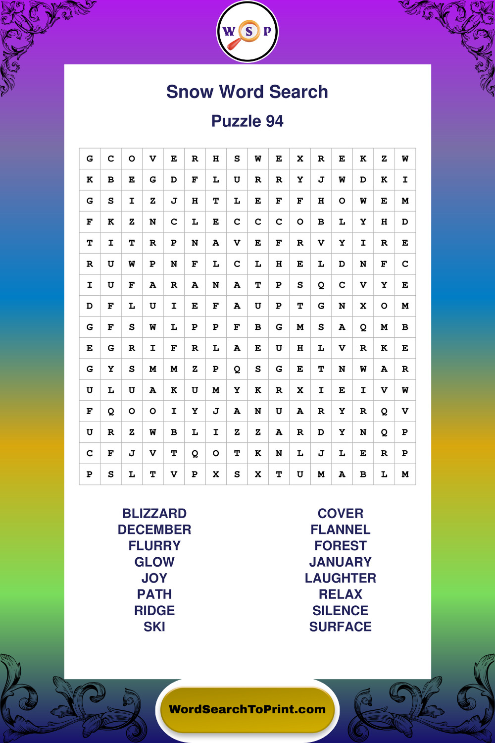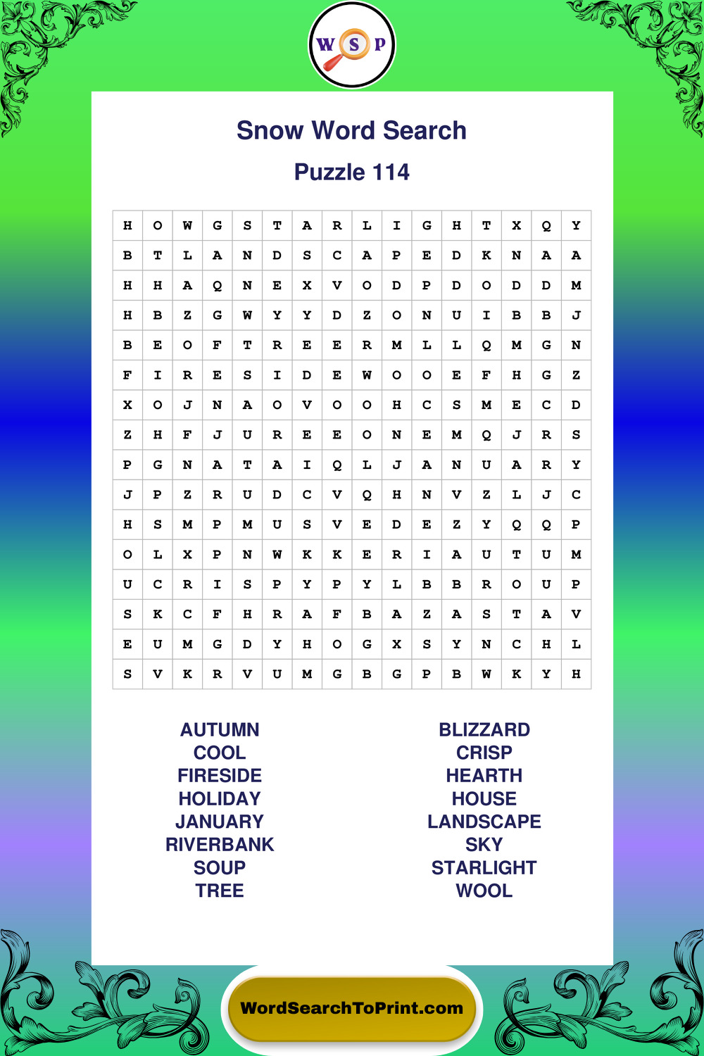 Explore a growing collection of large print Snow wordsearches created for comfortable, stress-free solving at your own pace.