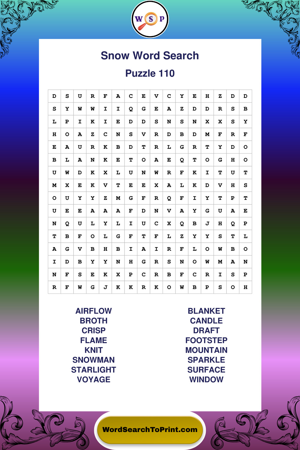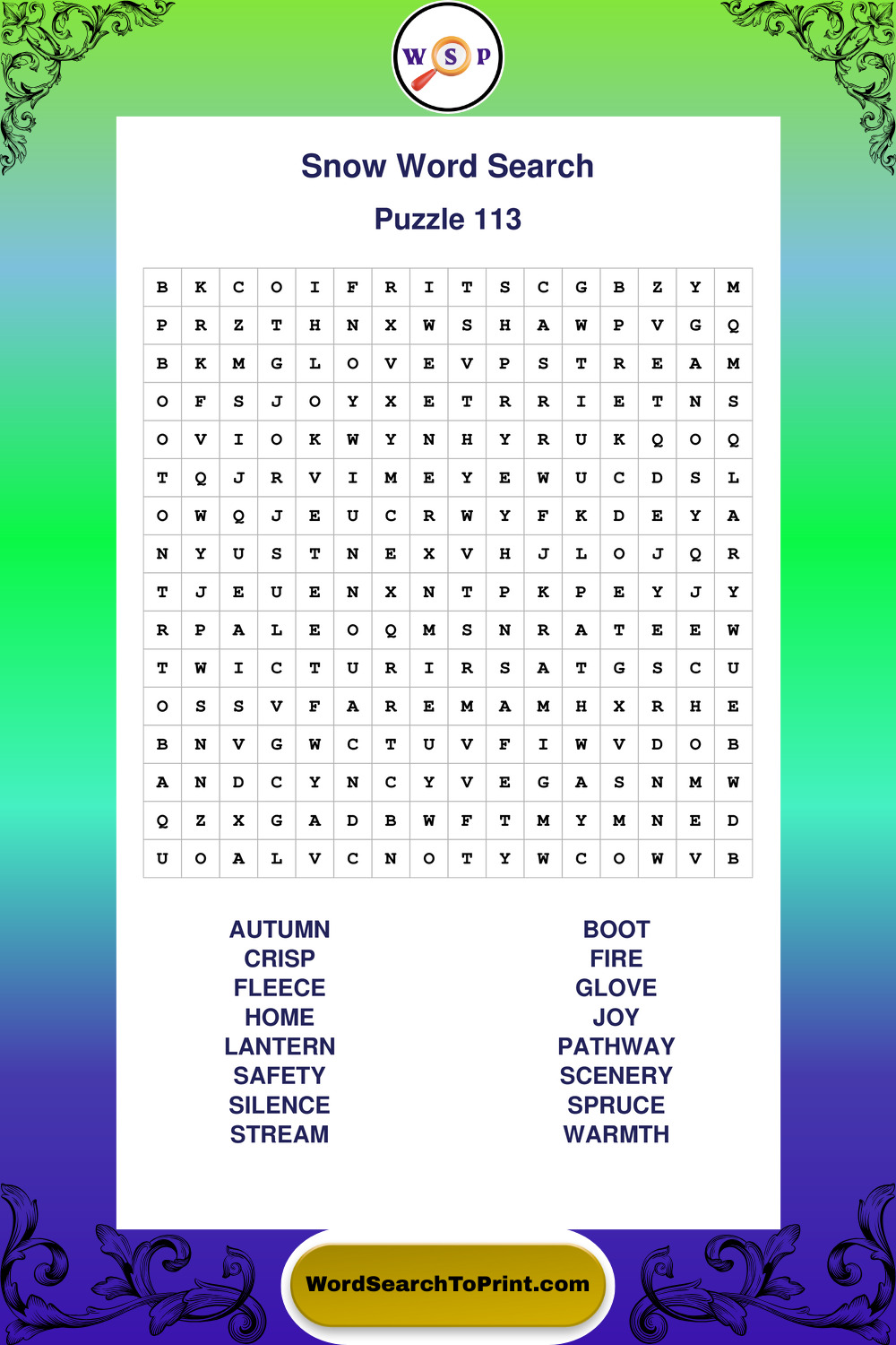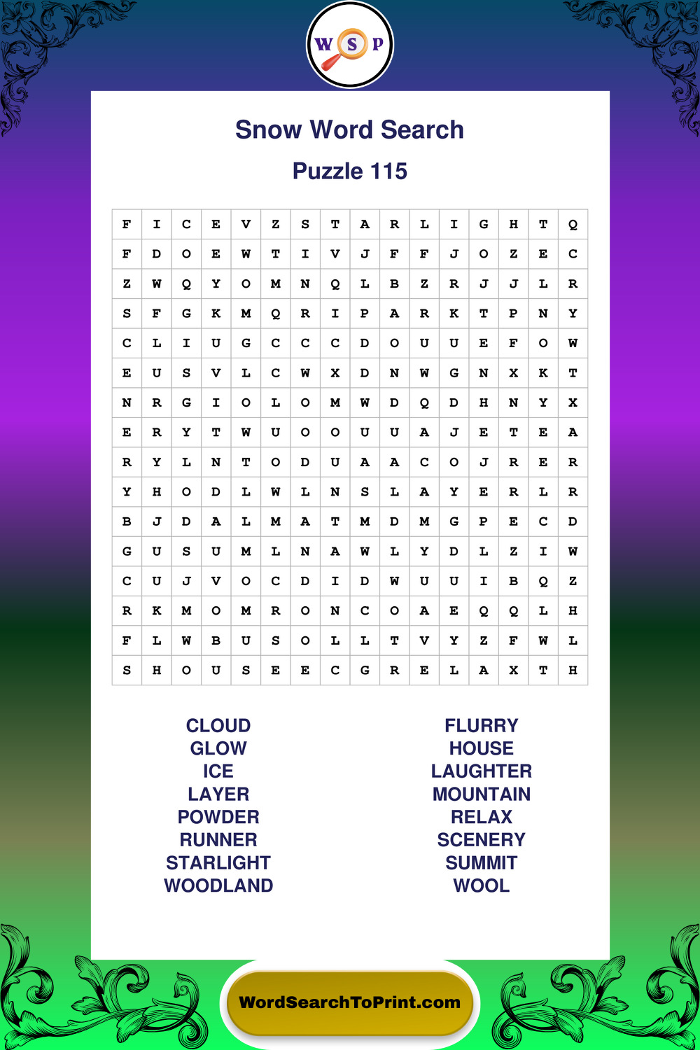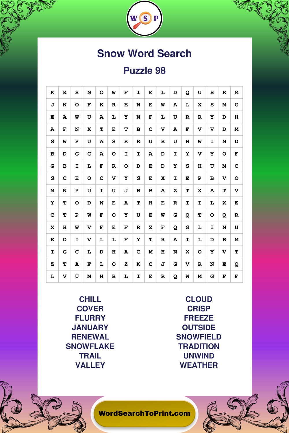 Explore a growing collection of large print Snow wordsearches created for comfortable, stress-free solving at your own pace.