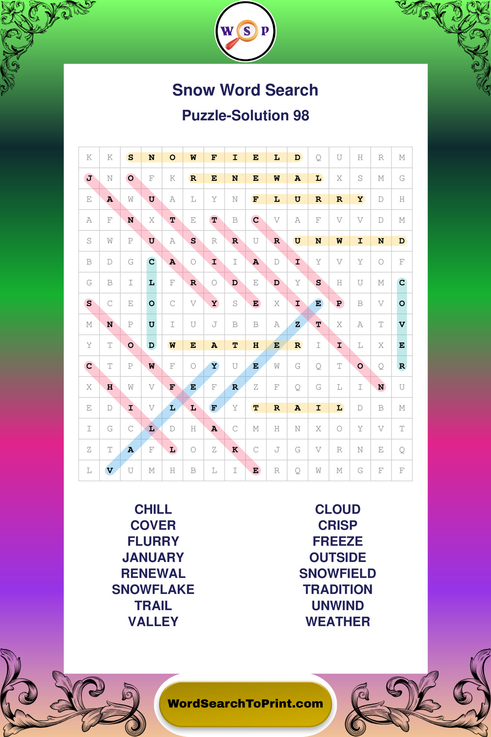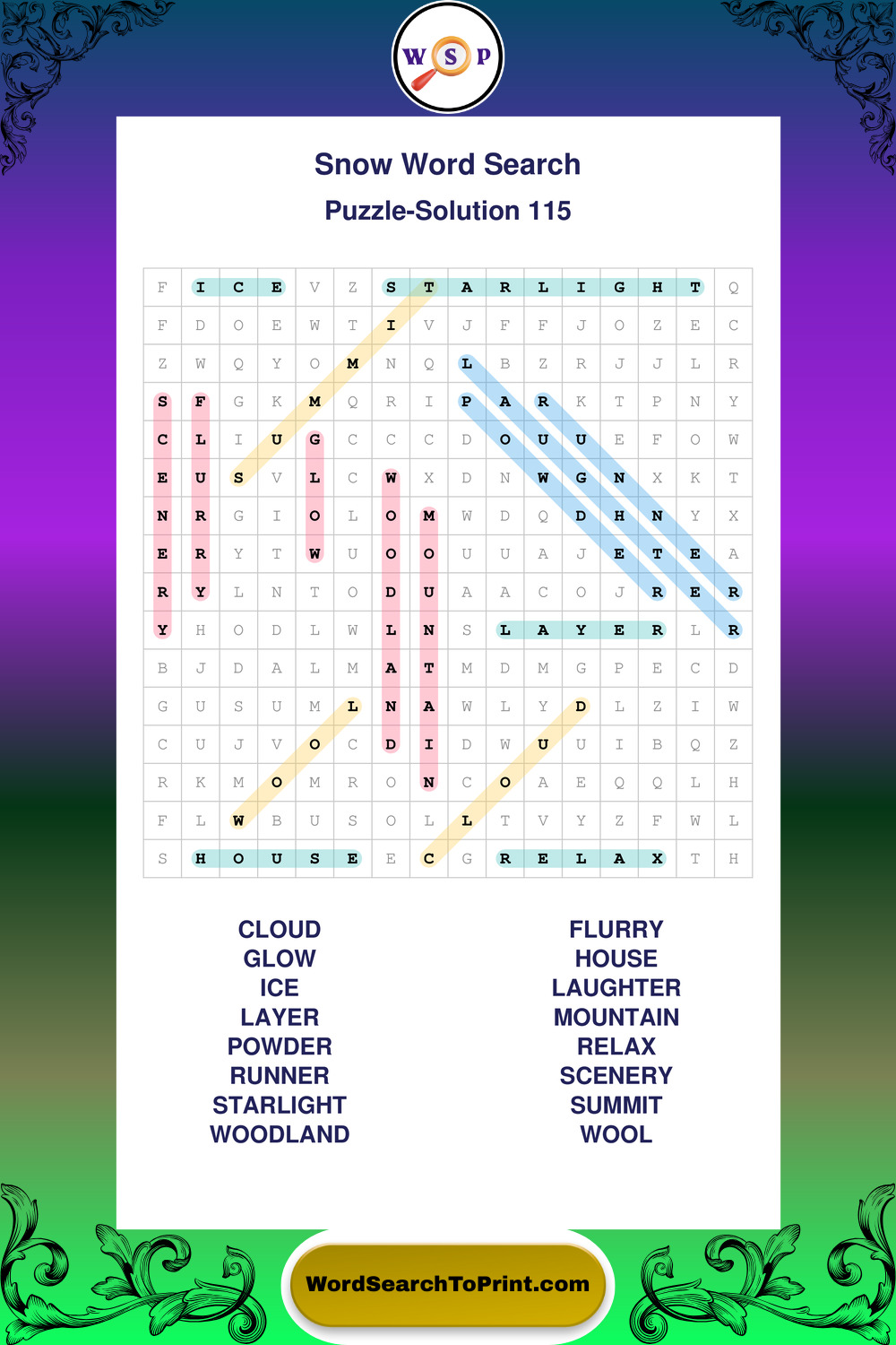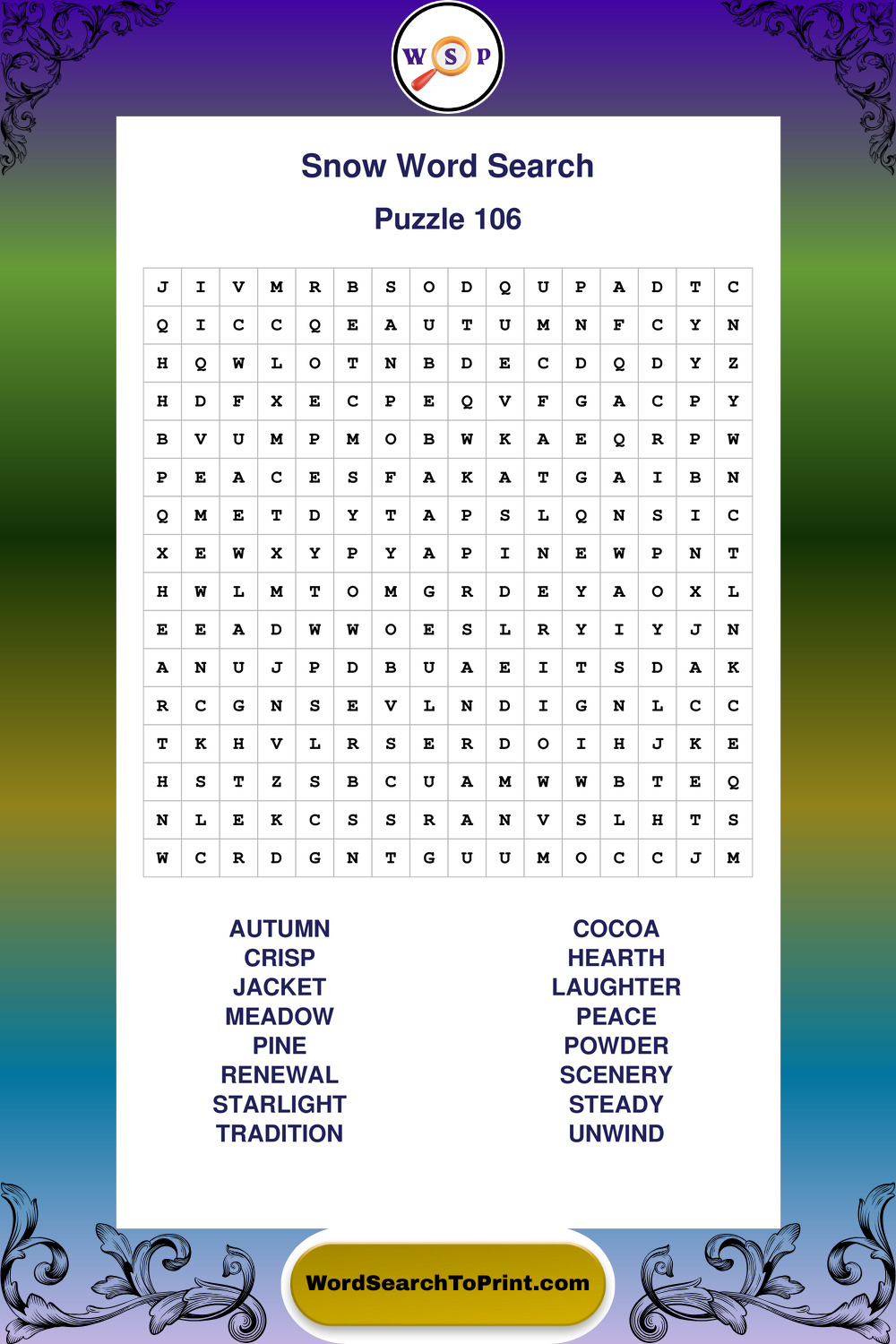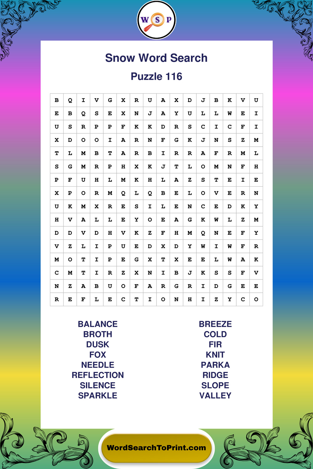 Explore a growing collection of large print Snow wordsearches created for comfortable, stress-free solving at your own pace.