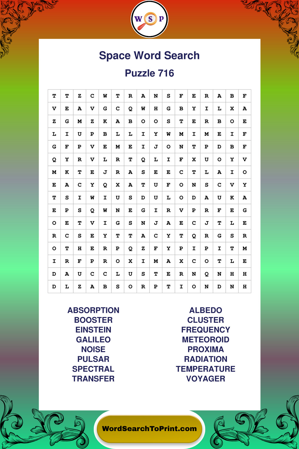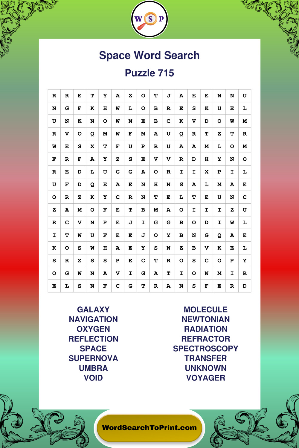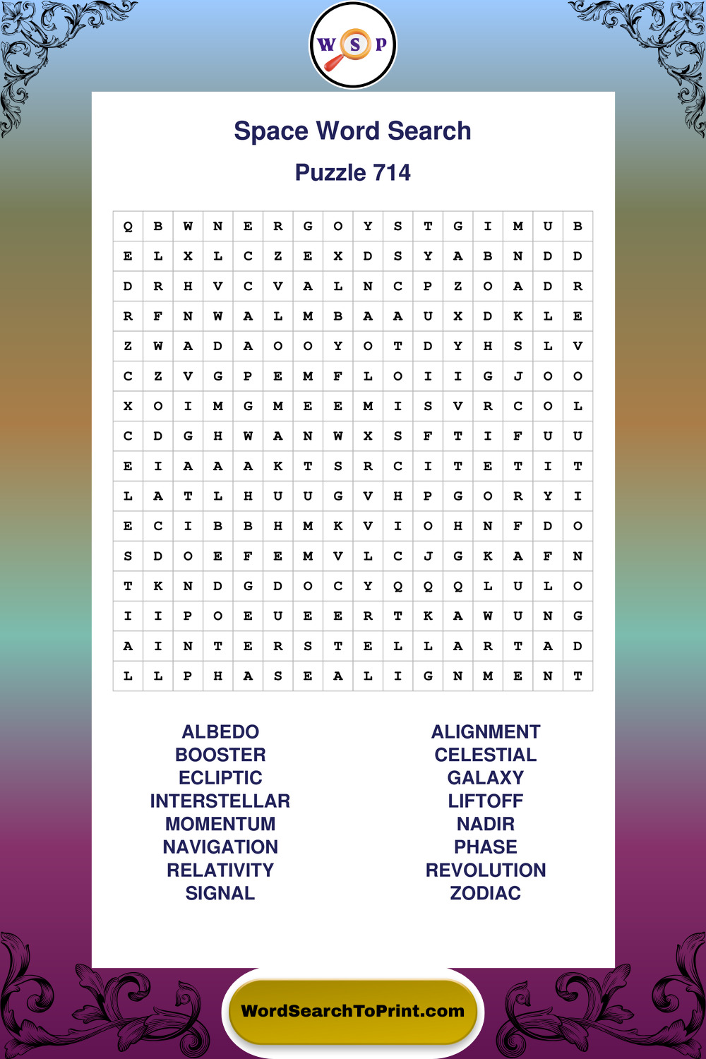 Discover large print Space wordsearches designed to support relaxed thinking and comfortable reading.