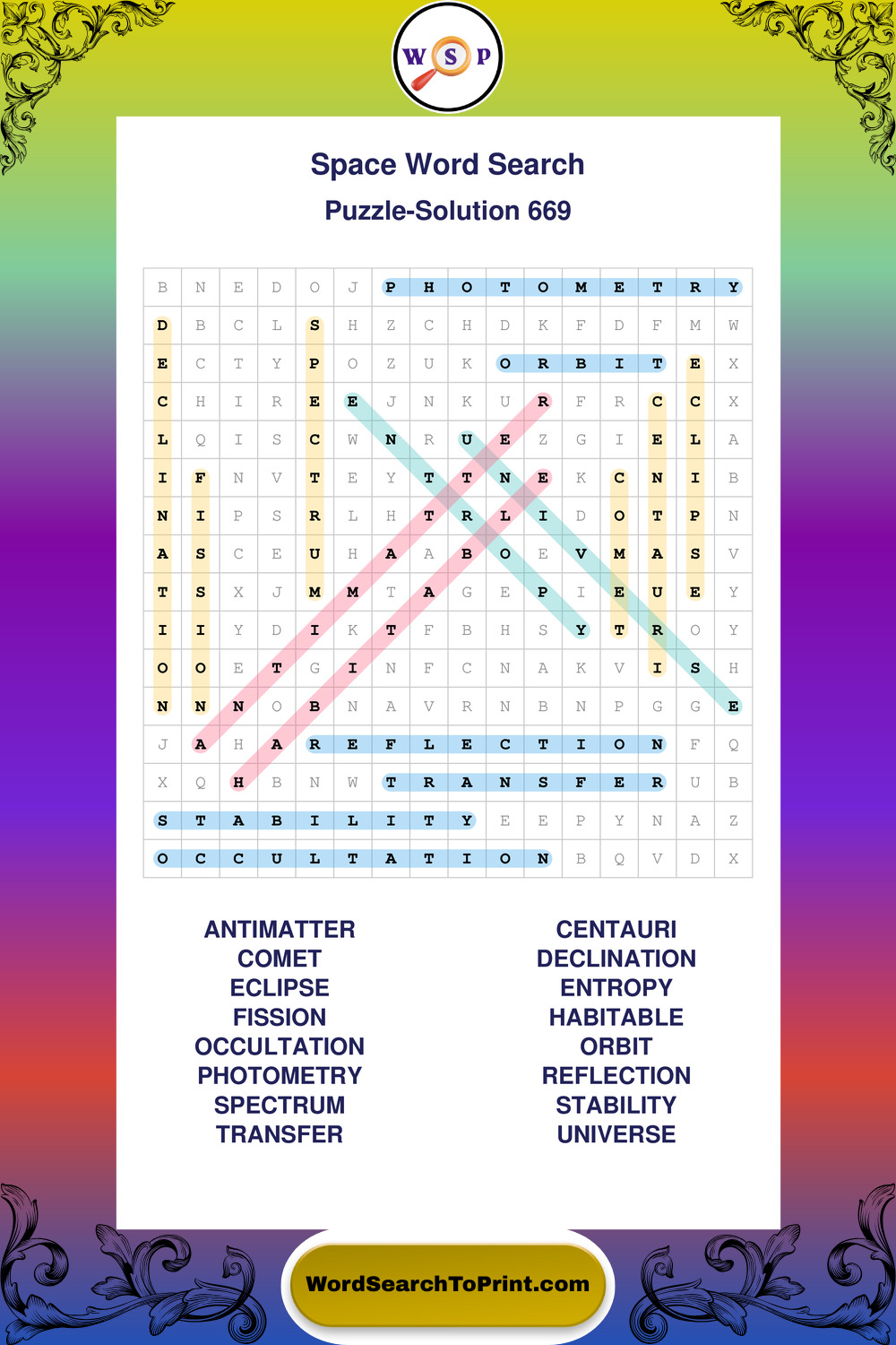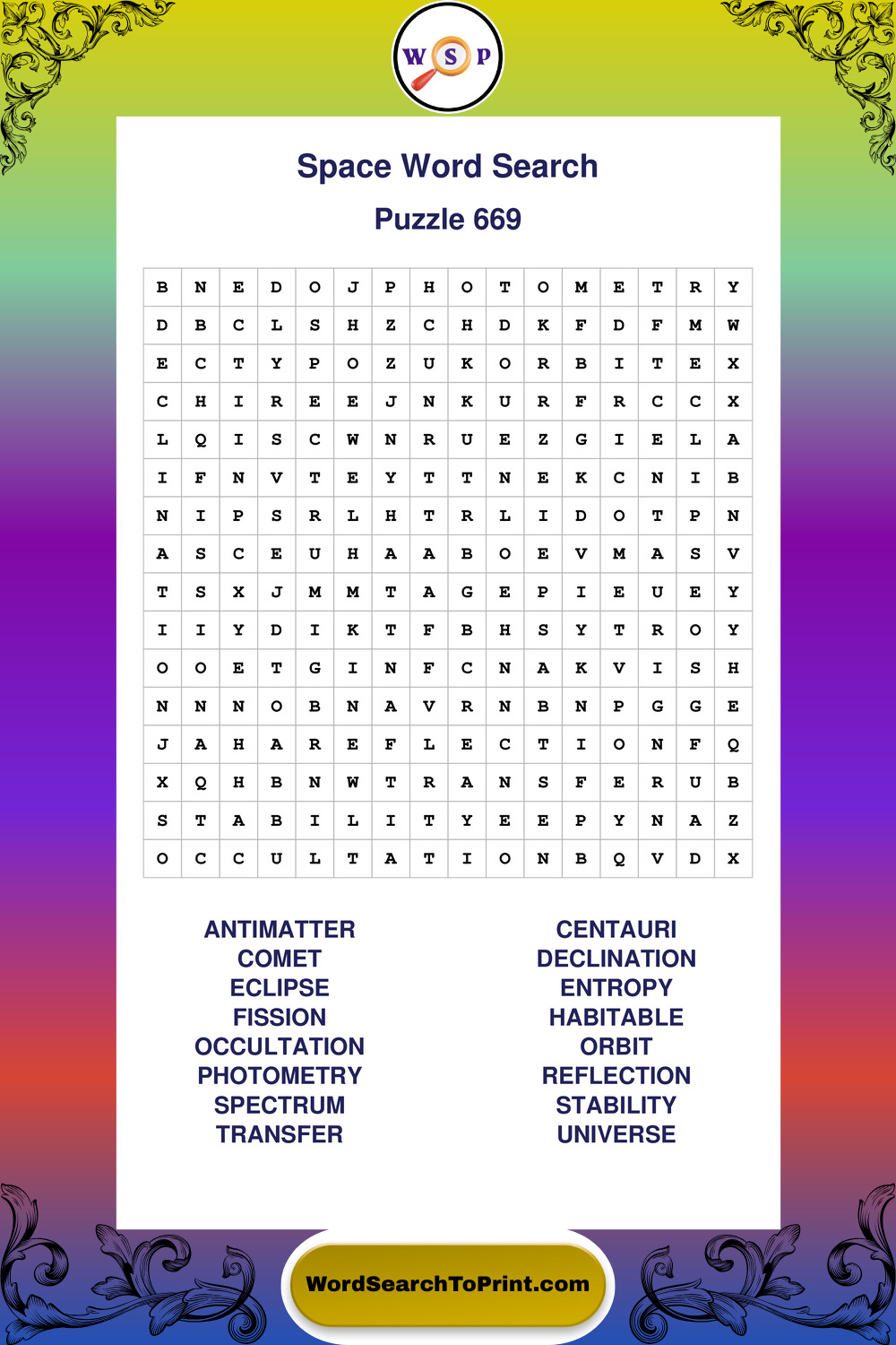 Discover large print Space wordsearches designed to support relaxed thinking and comfortable reading.