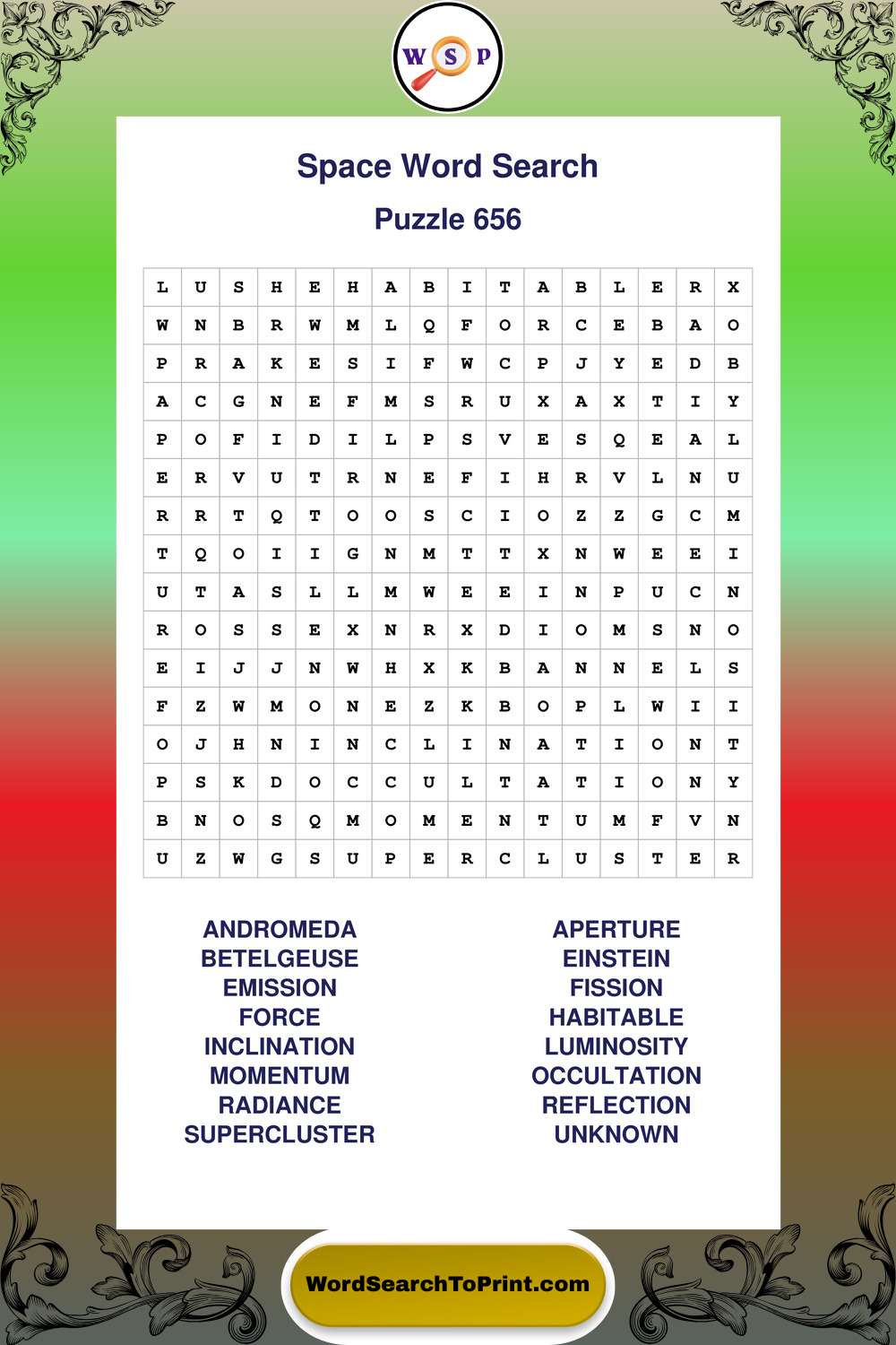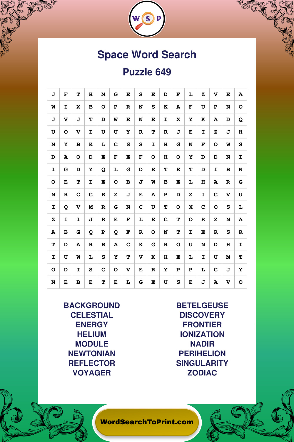 Discover large print Space wordsearches designed to support relaxed thinking and comfortable reading.