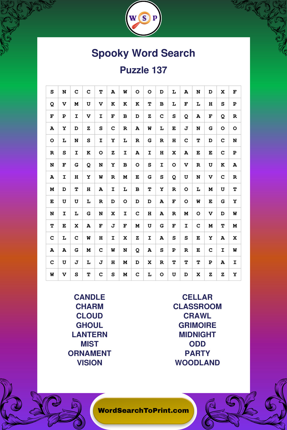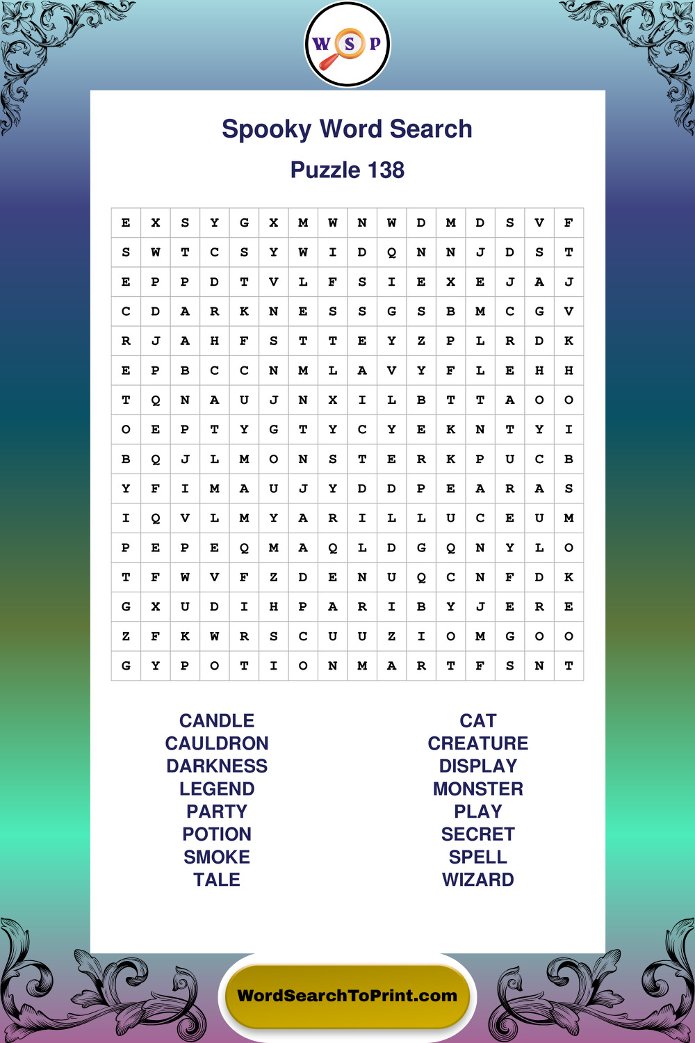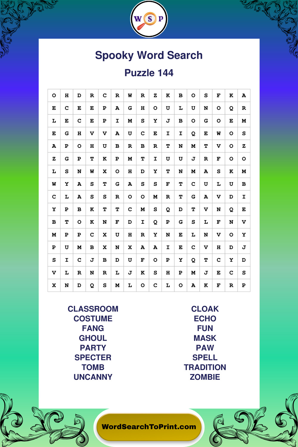 Discover large print Spooky wordsearches designed to support relaxed thinking and comfortable reading.