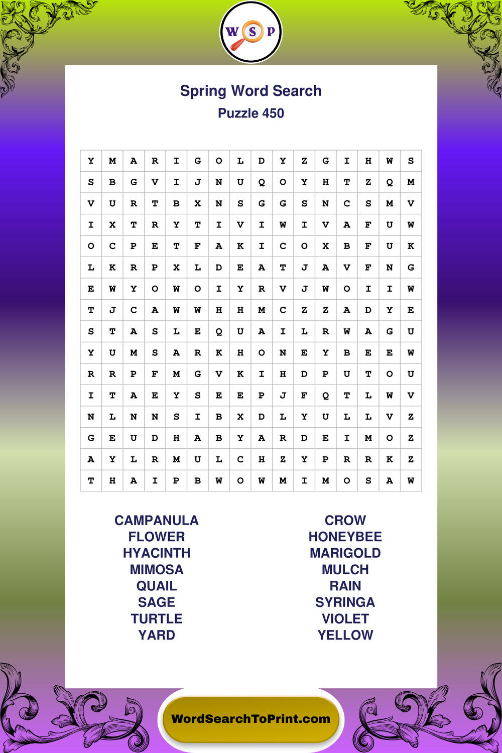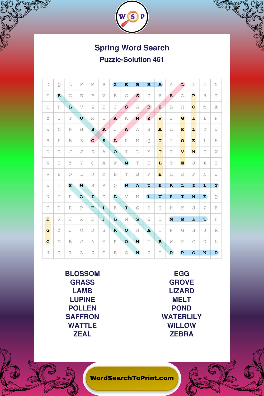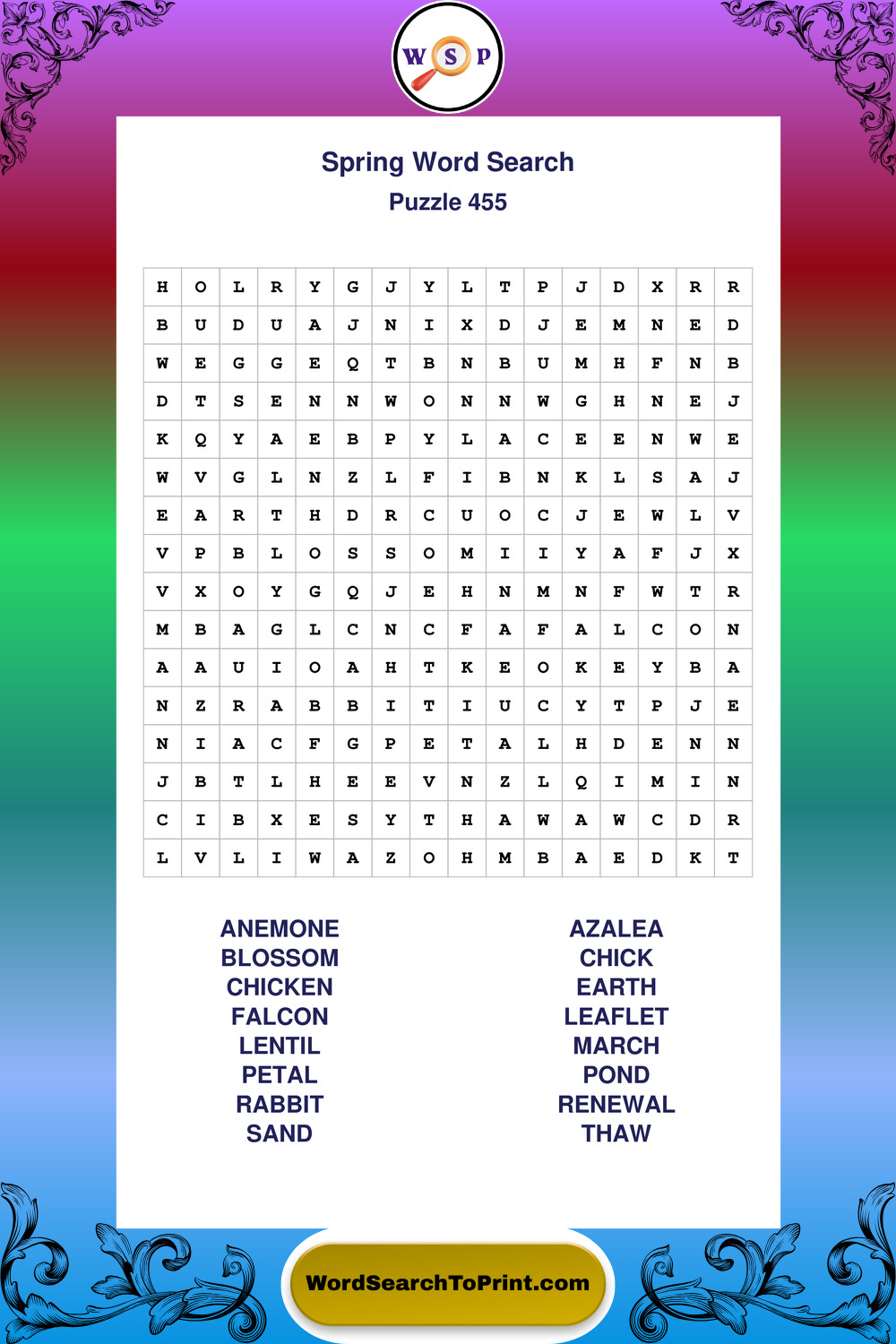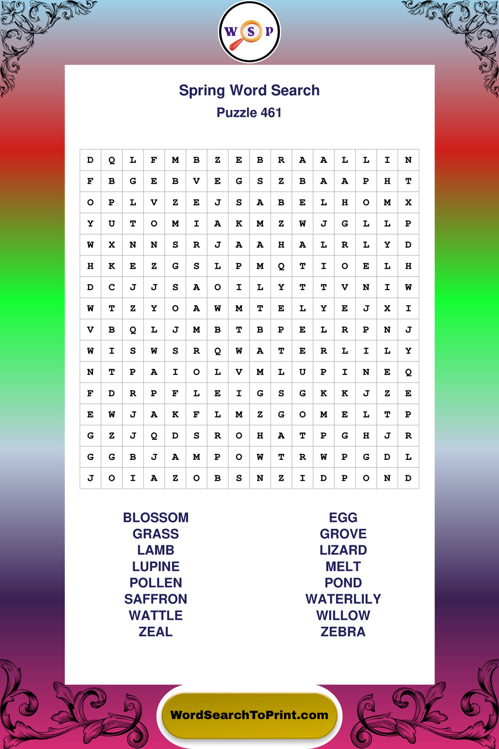 Free Large Print Spring Wordsearches