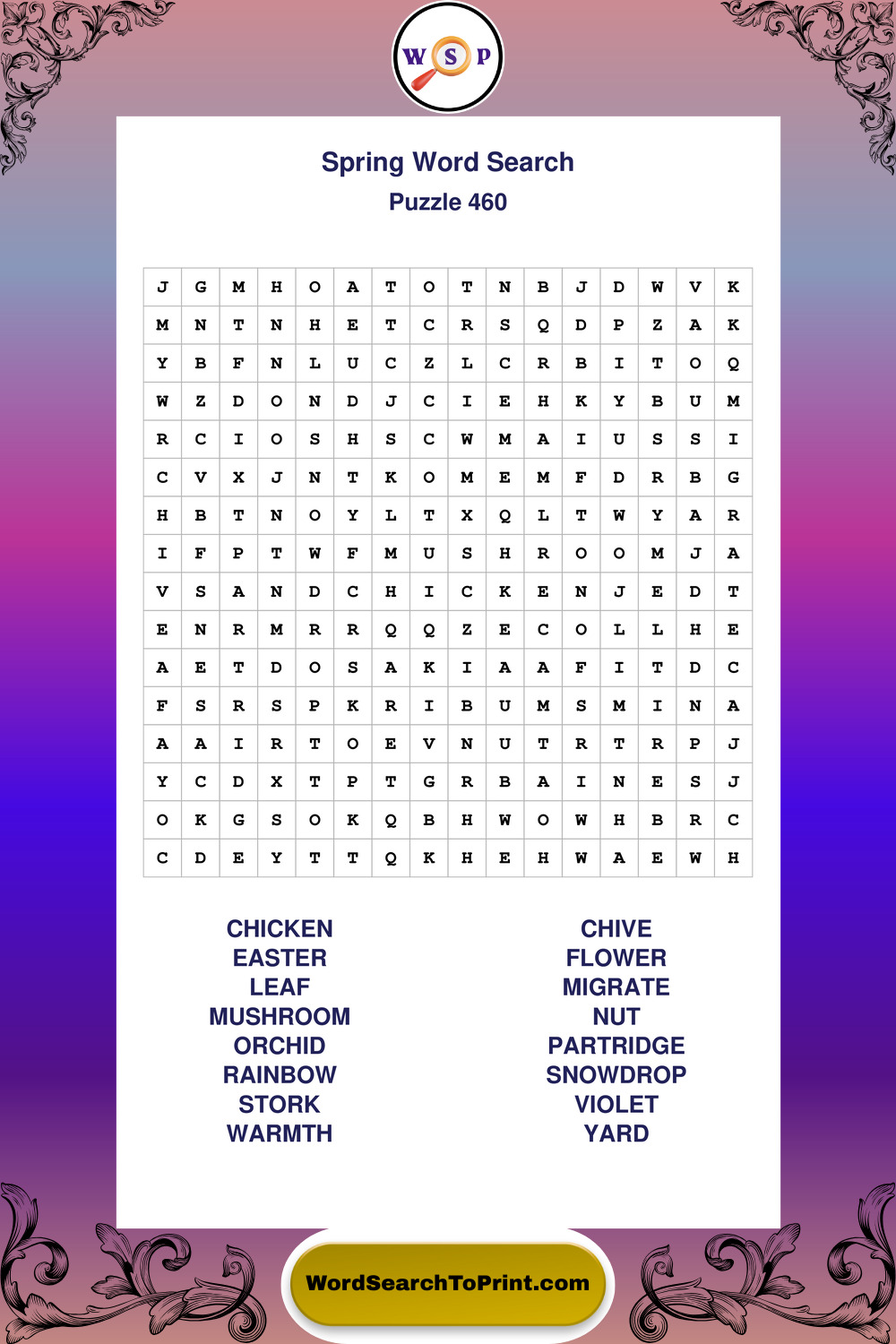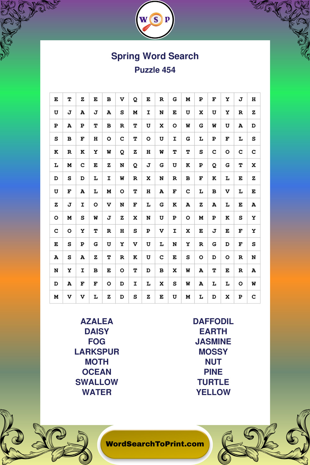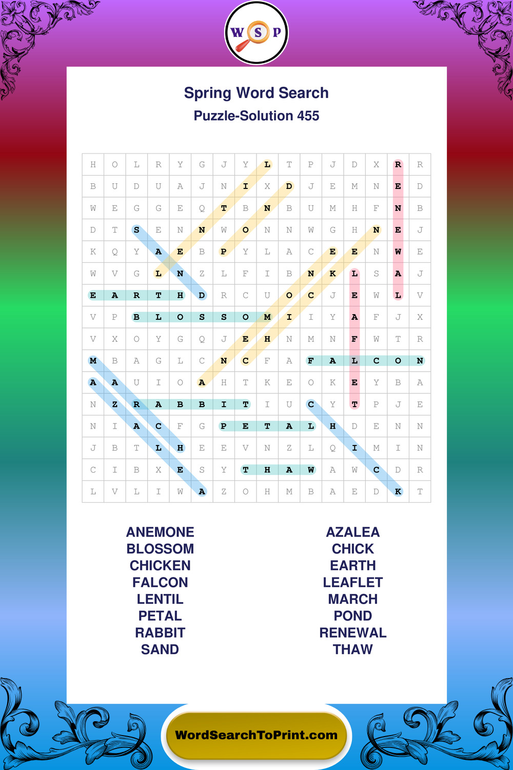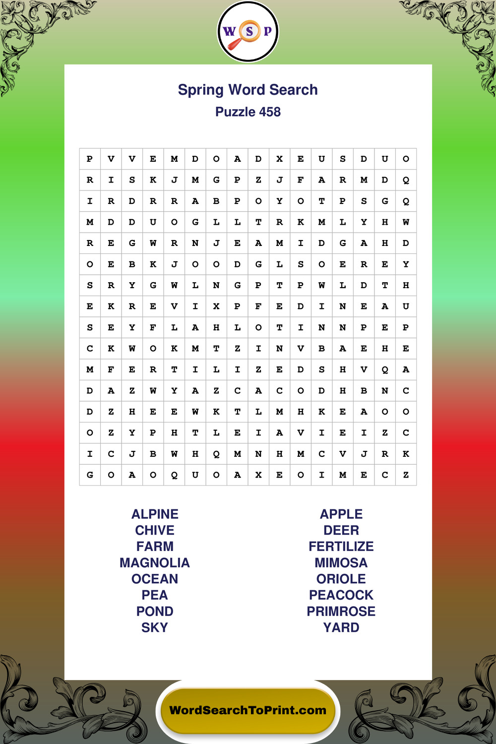 Free Large Print Spring Wordsearches