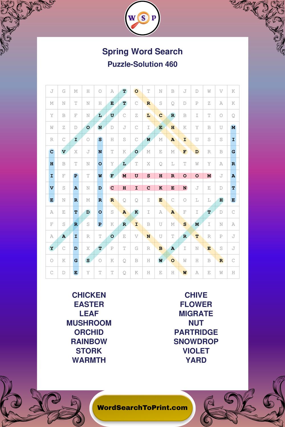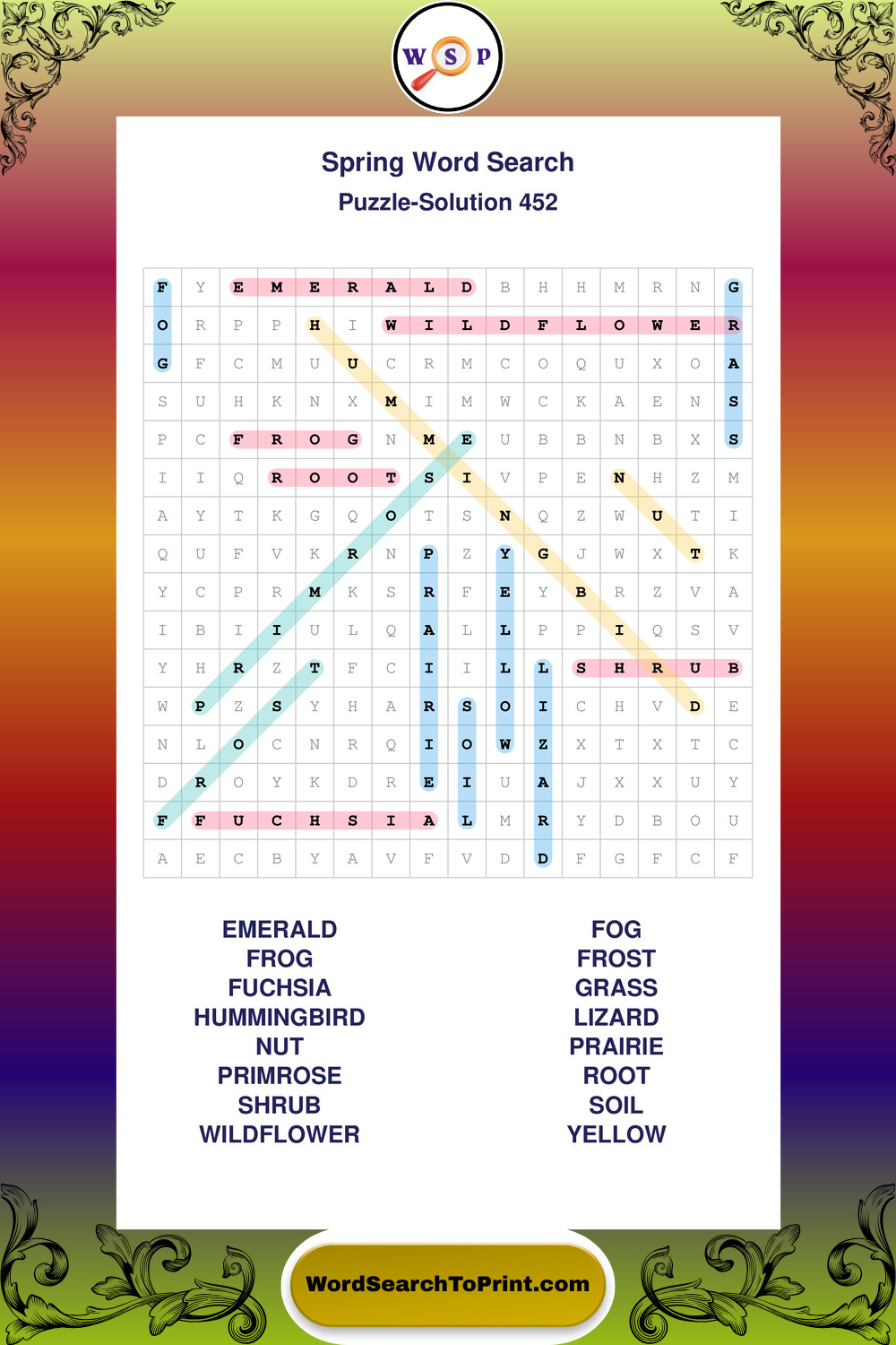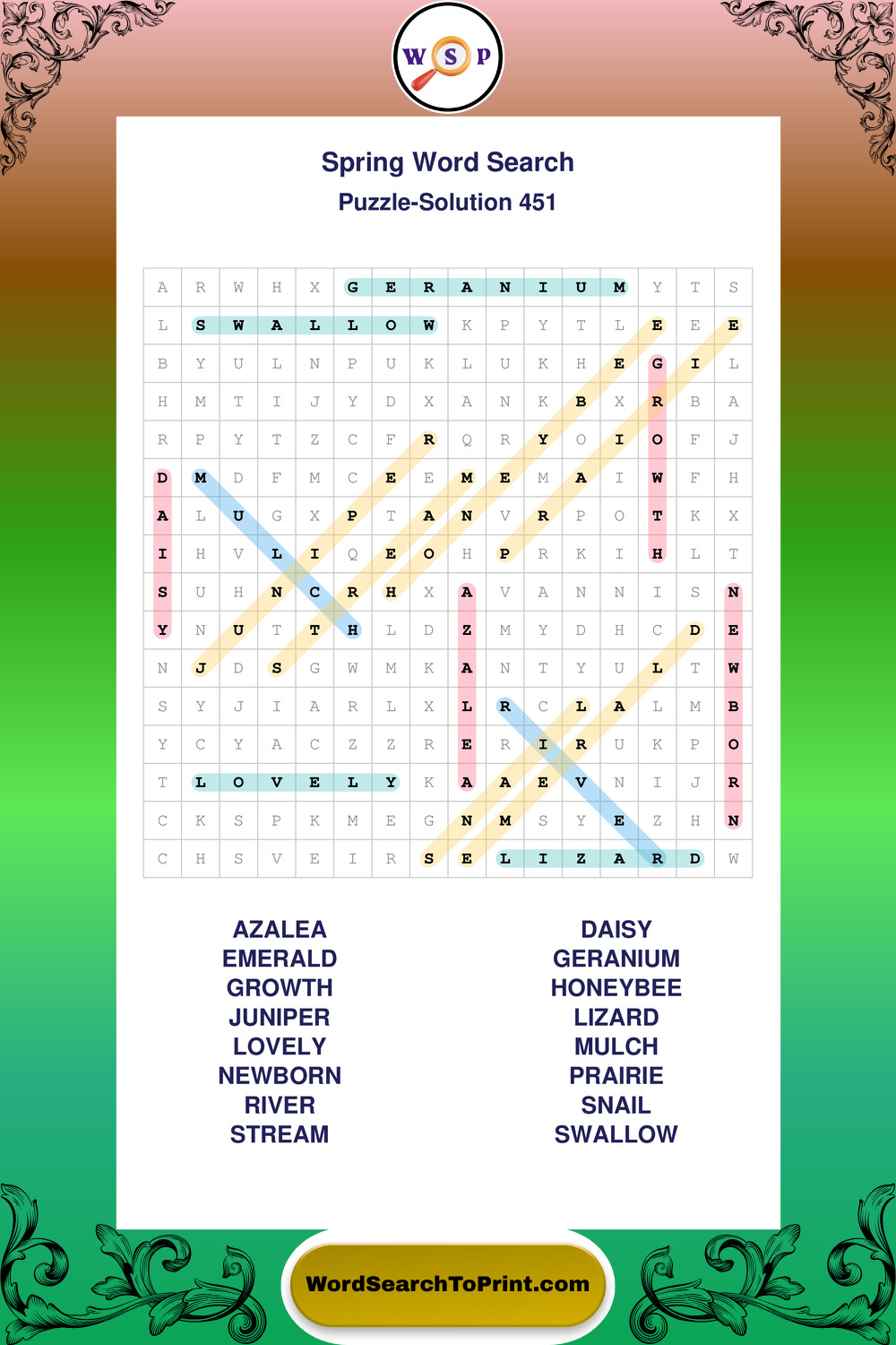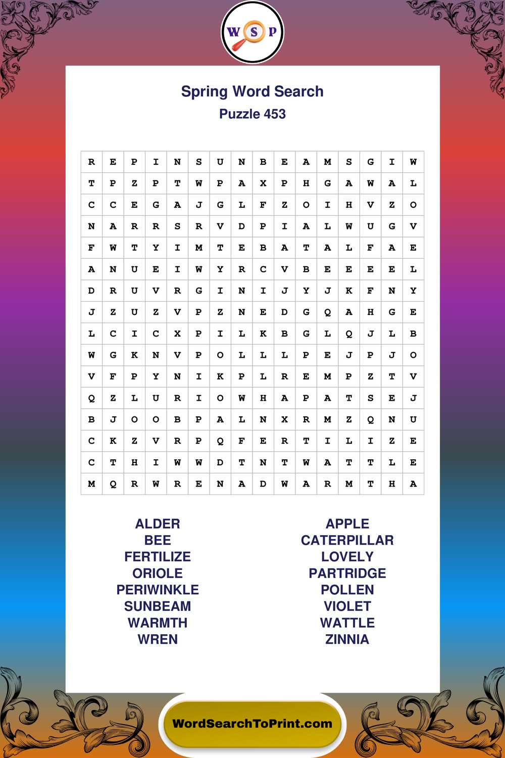 Free Large Print Spring Wordsearches