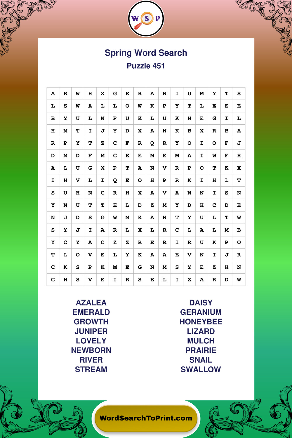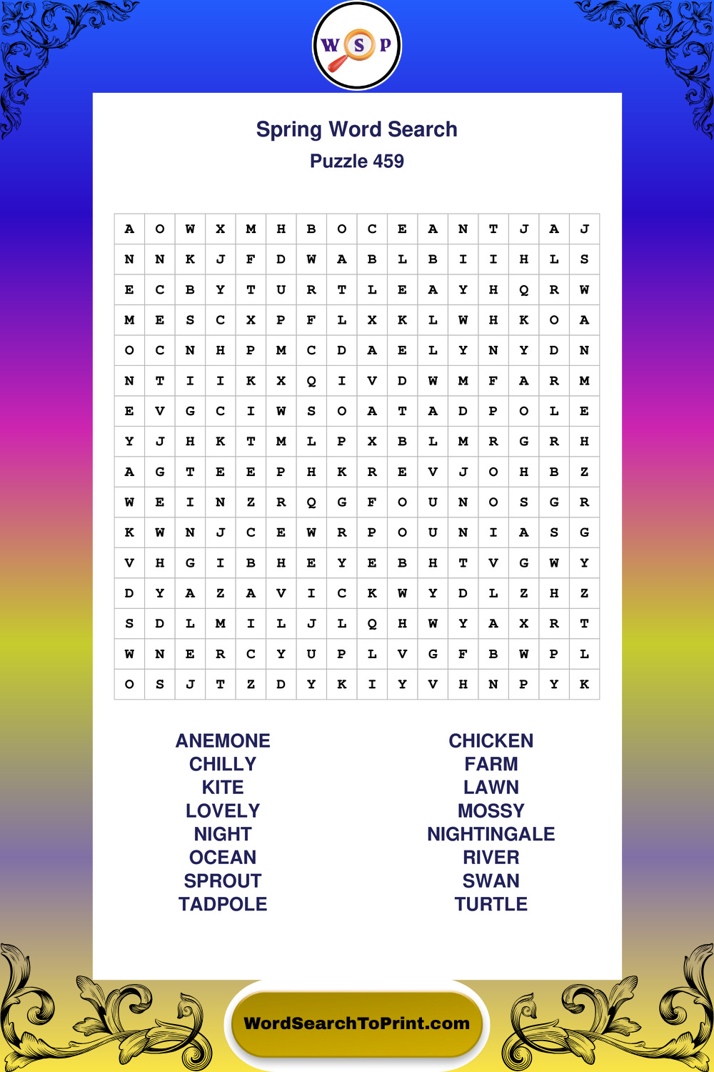Printable Spring Wordsearch Puzzles