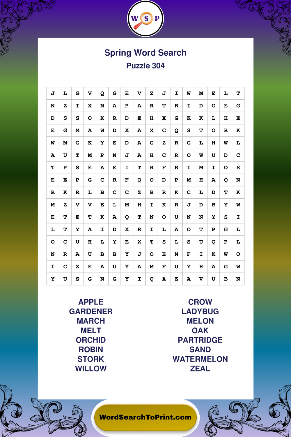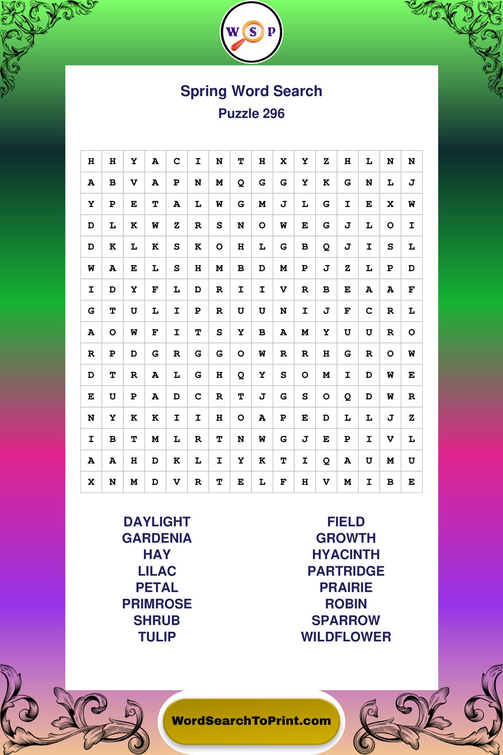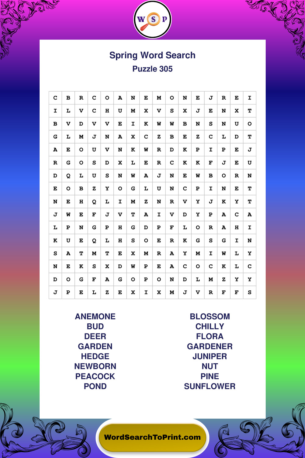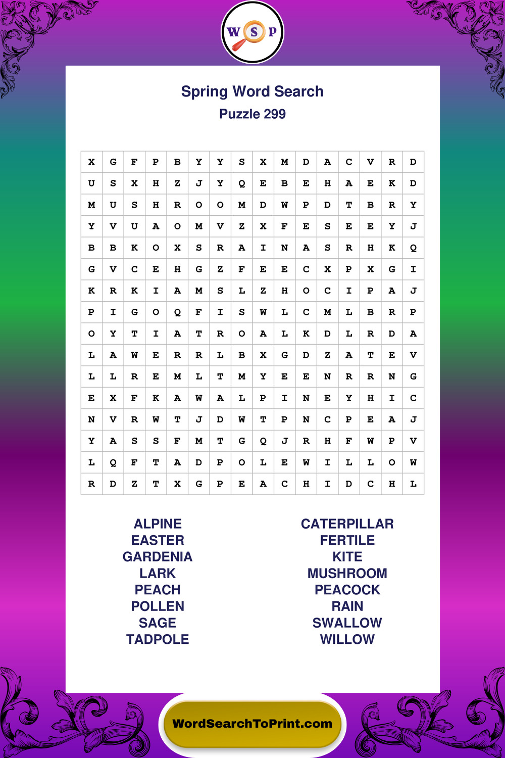 Free Large Print Spring Wordsearches