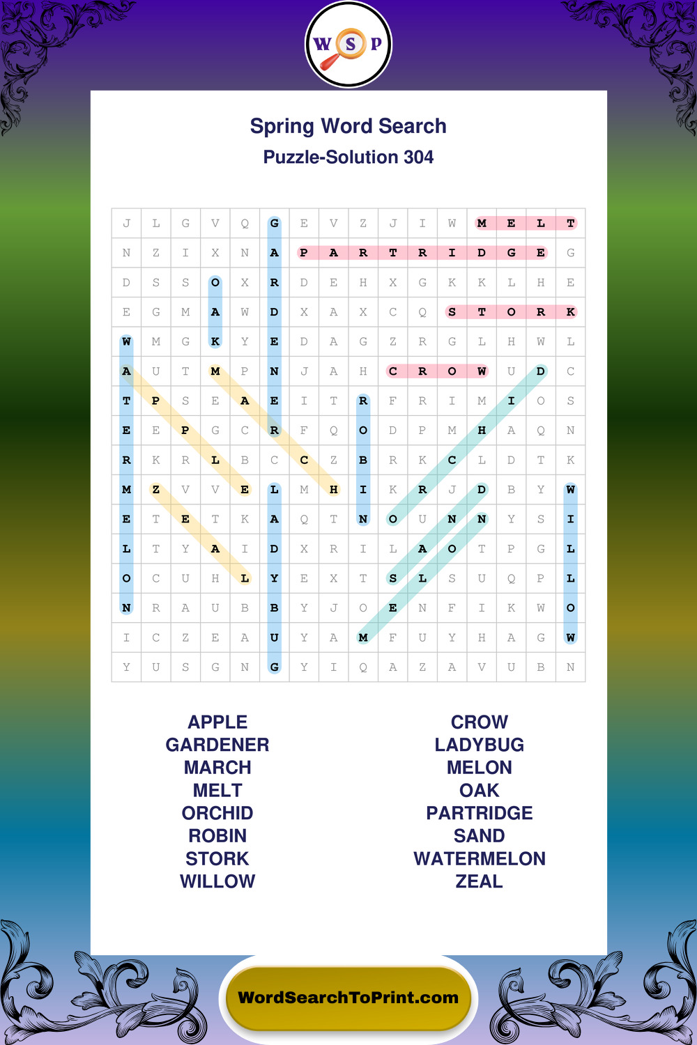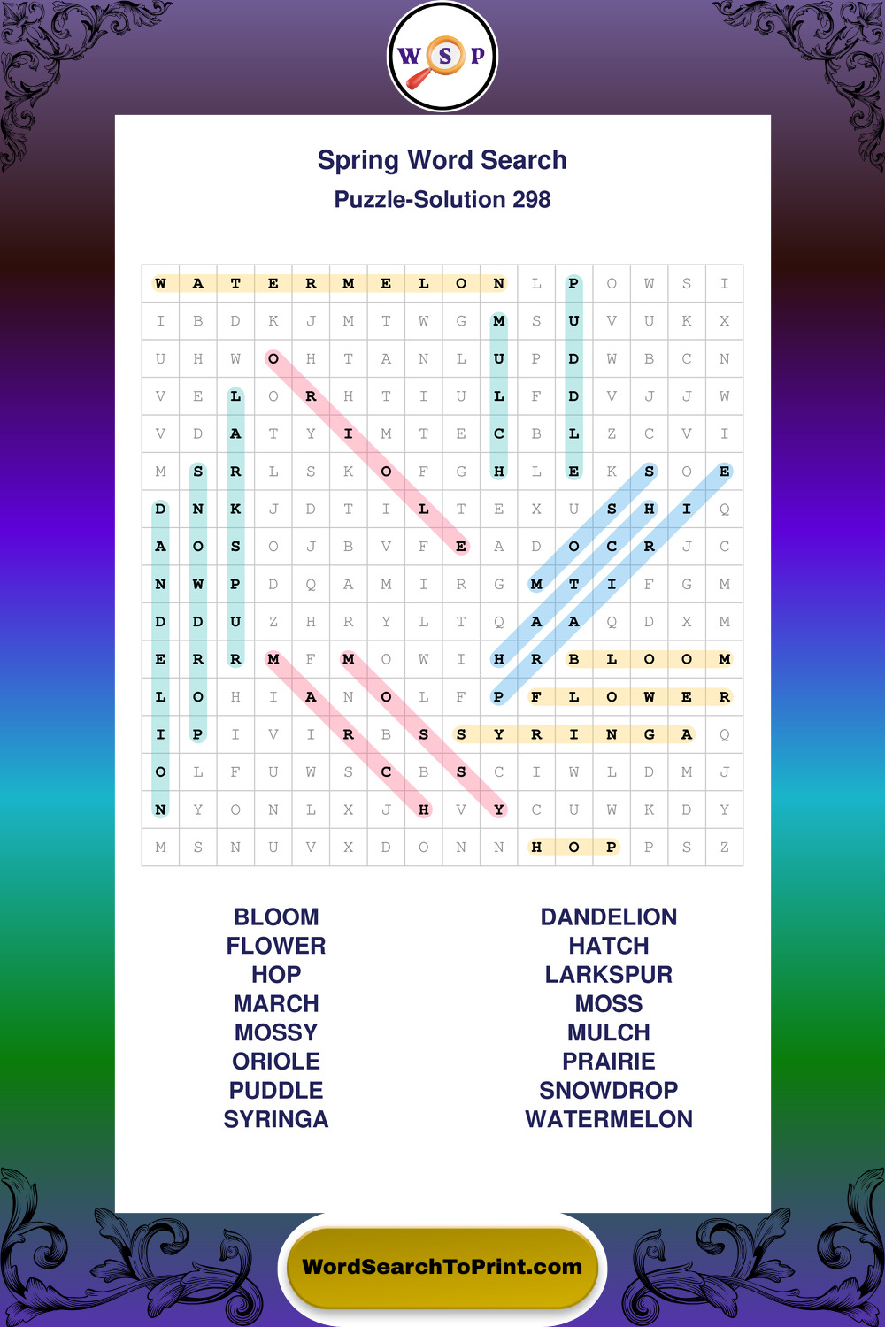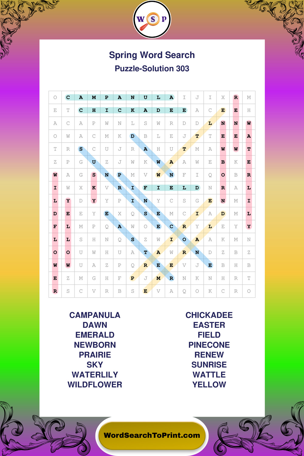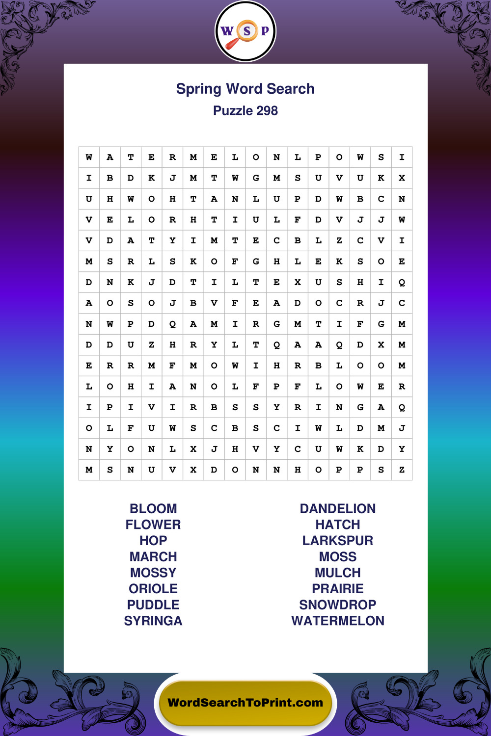 Free Large Print Spring Wordsearches