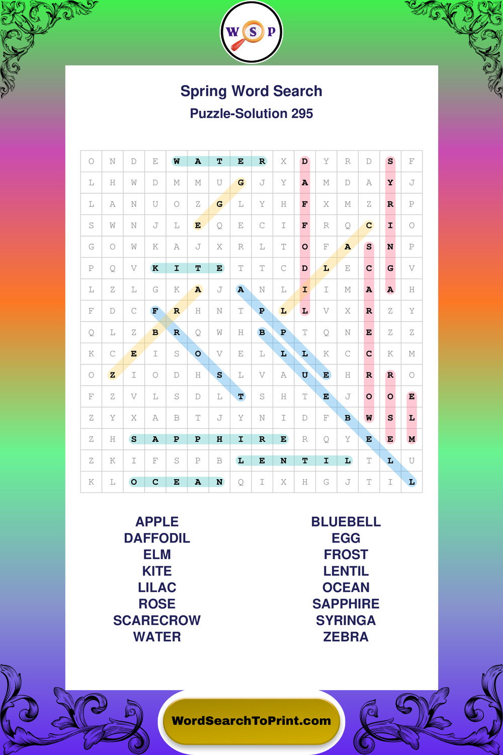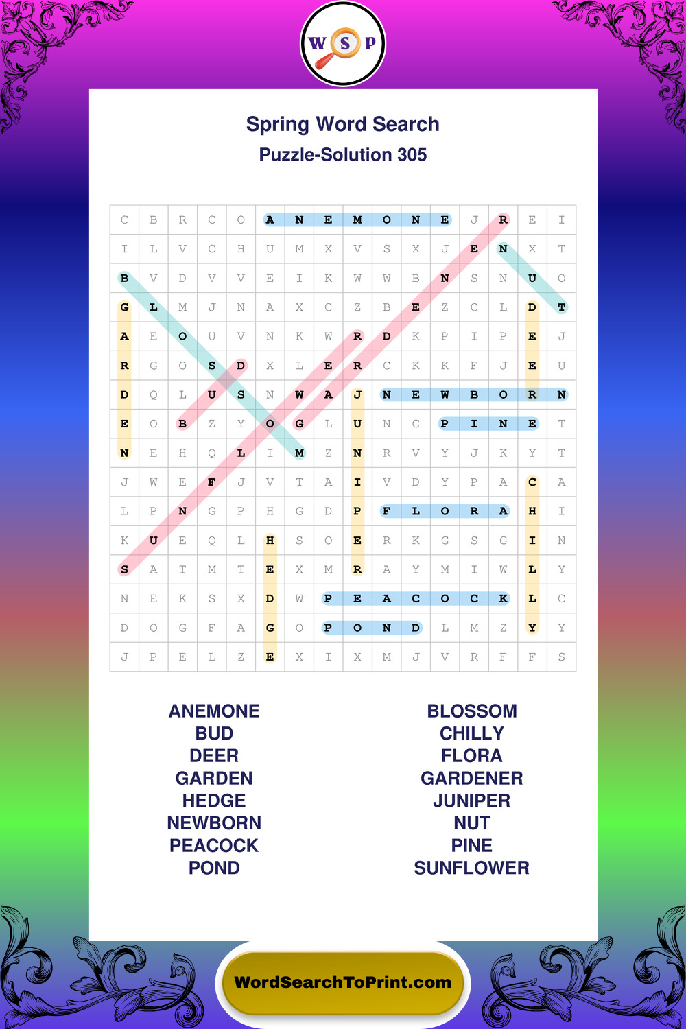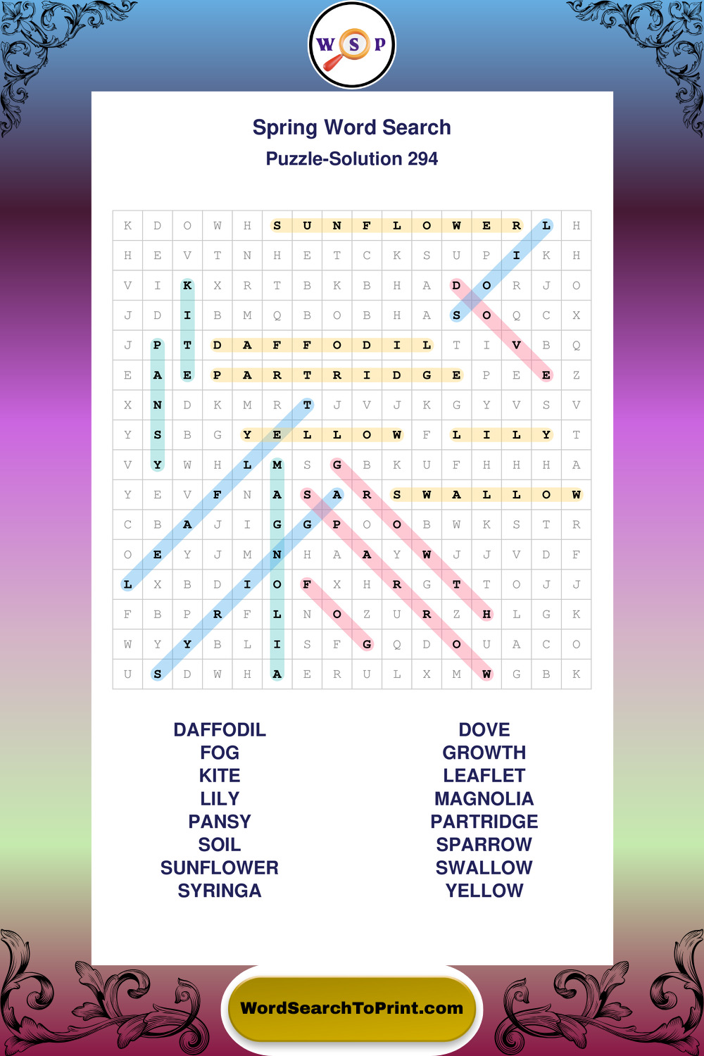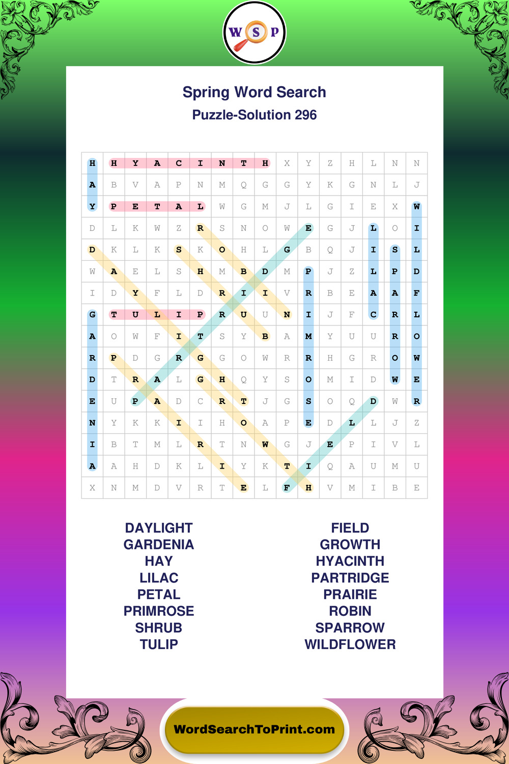 Free Large Print Spring Wordsearches