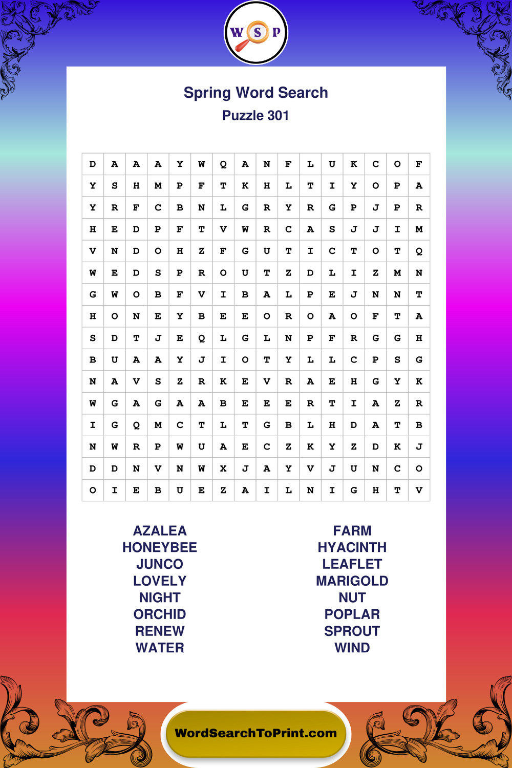 Printable Spring Wordsearch Puzzles