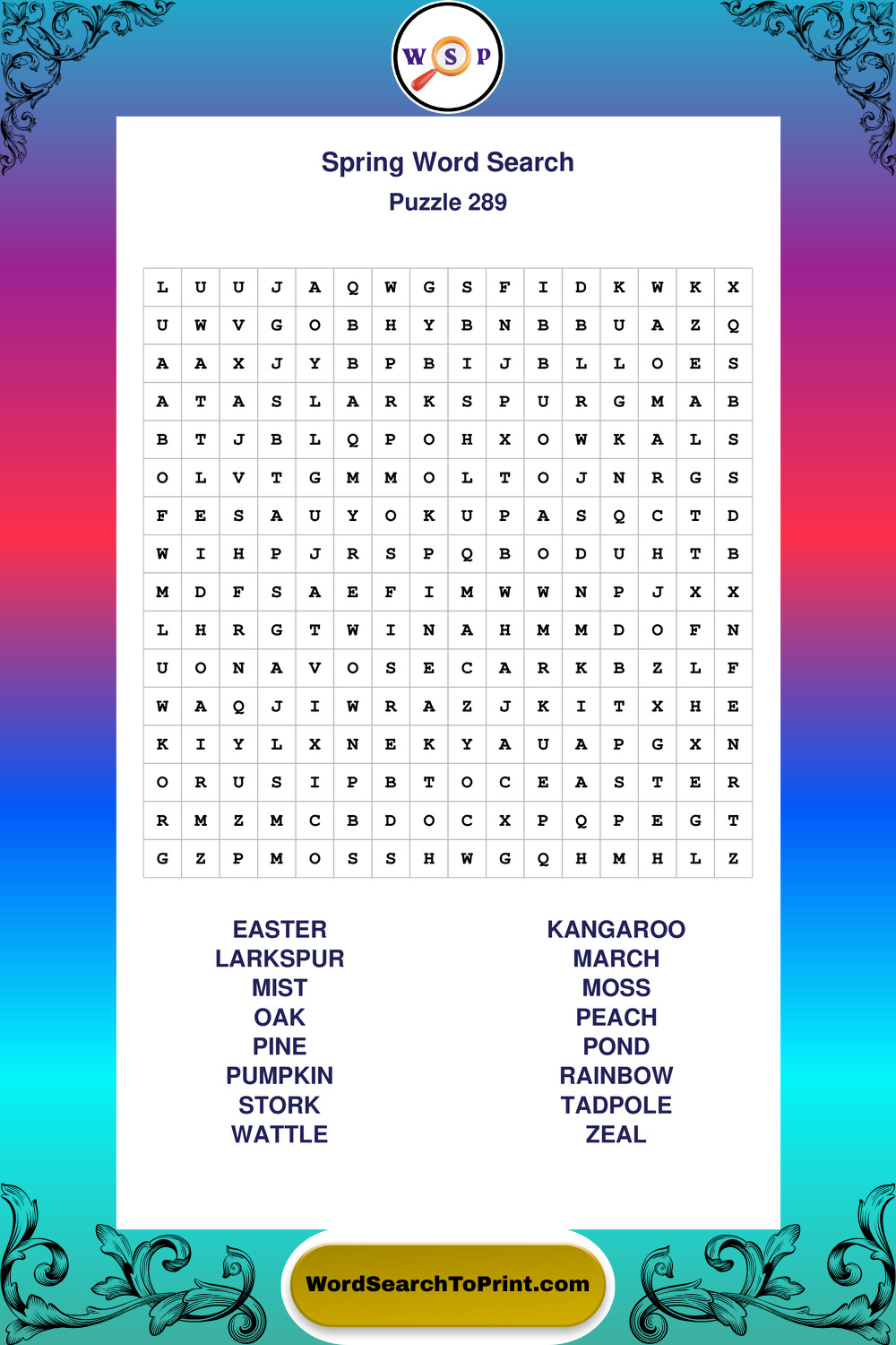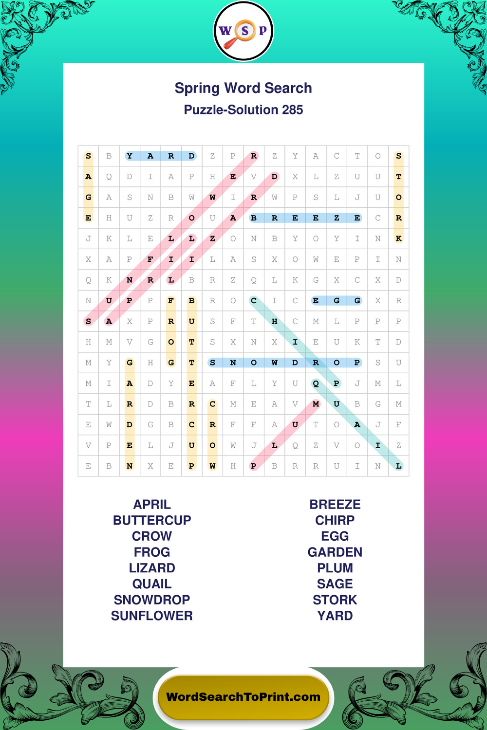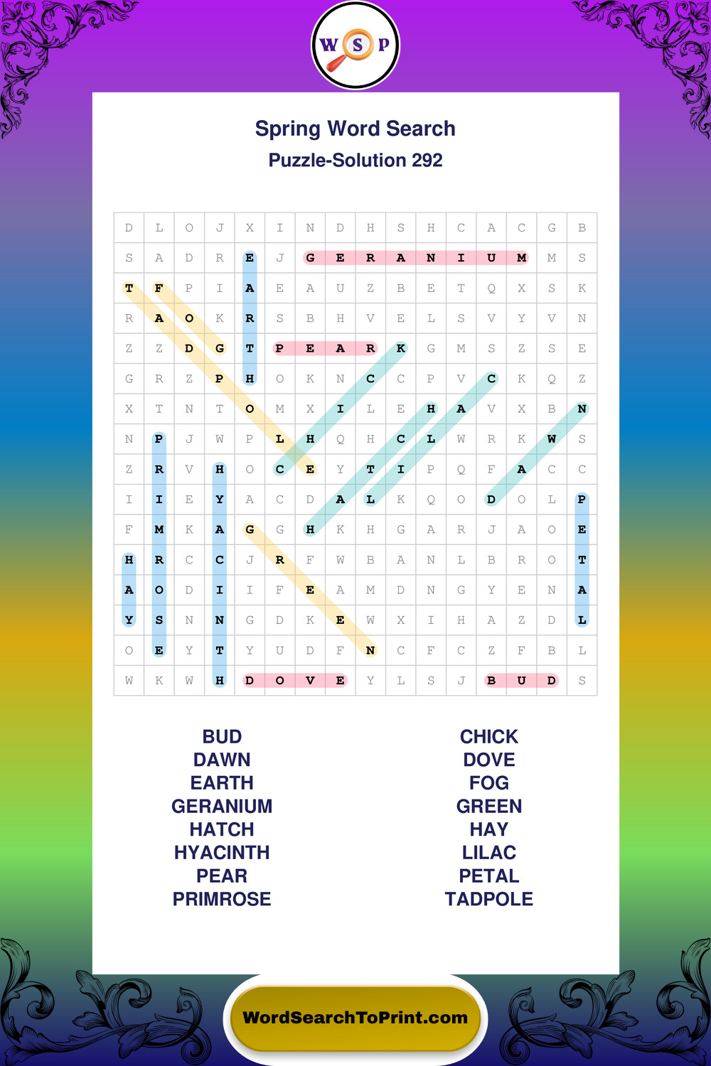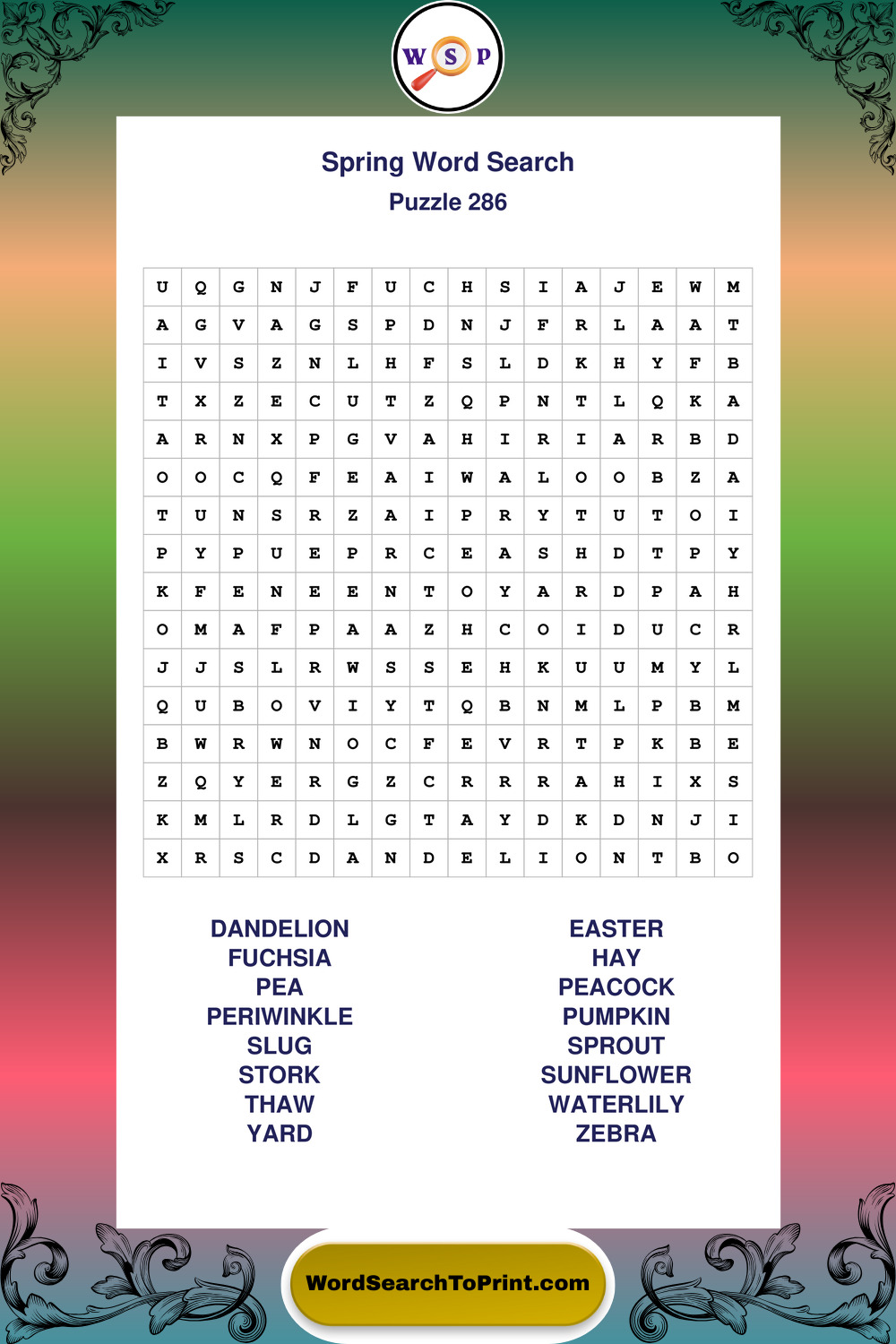 Free Large Print Spring Wordsearches