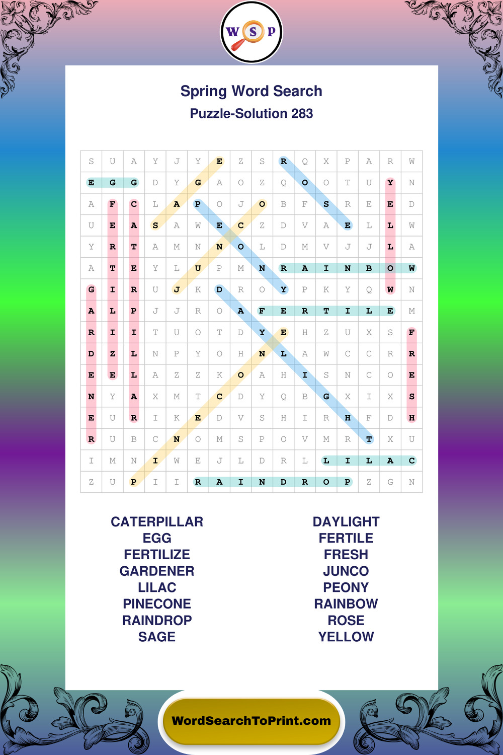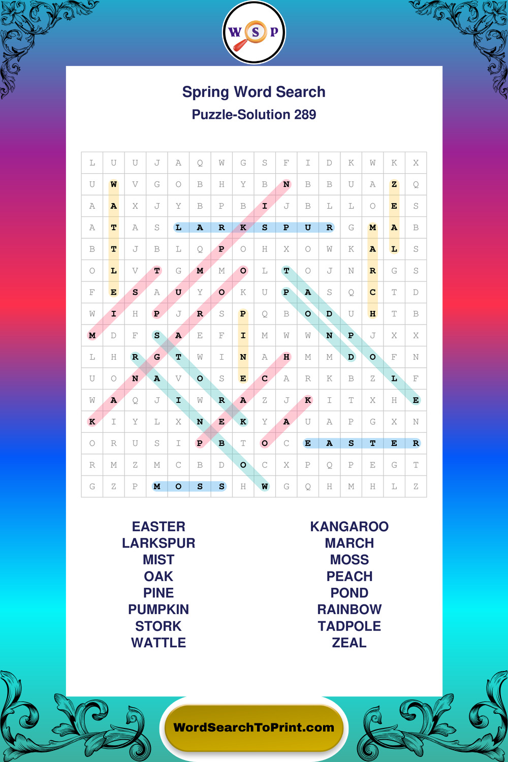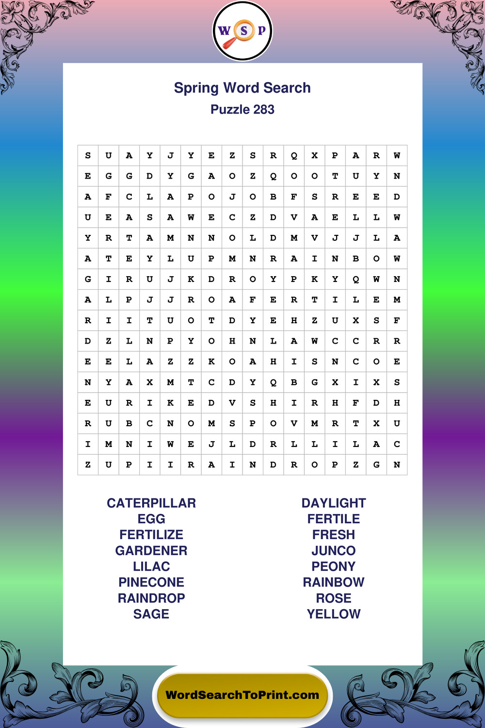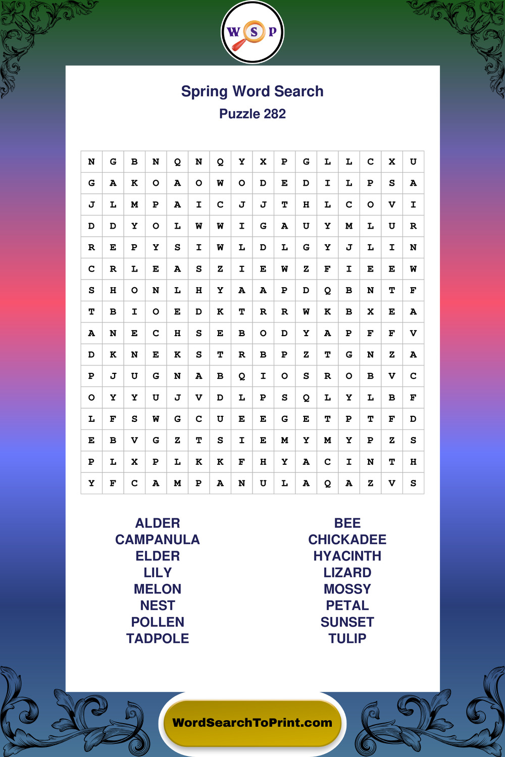 Free Large Print Spring Wordsearches