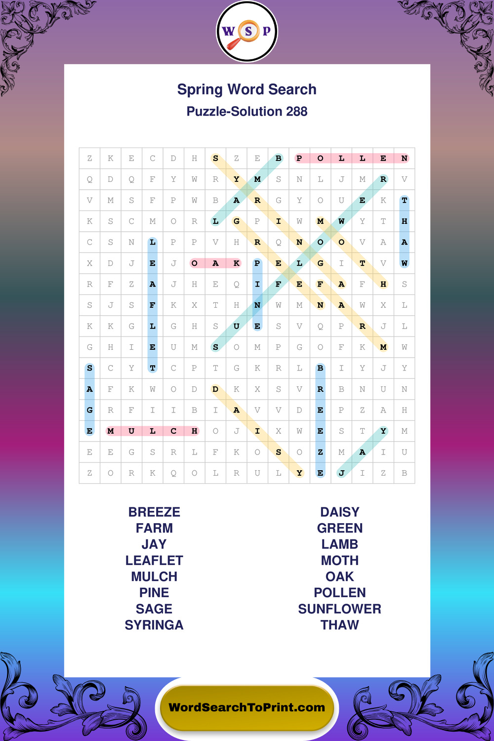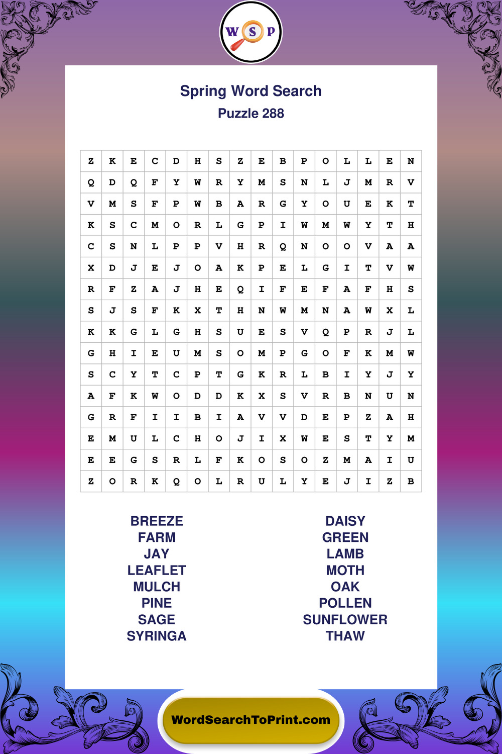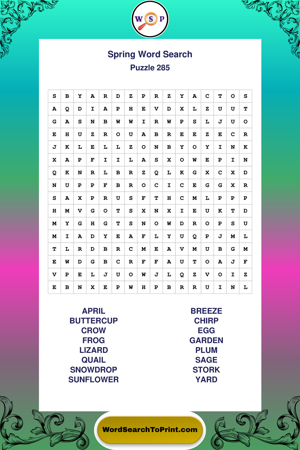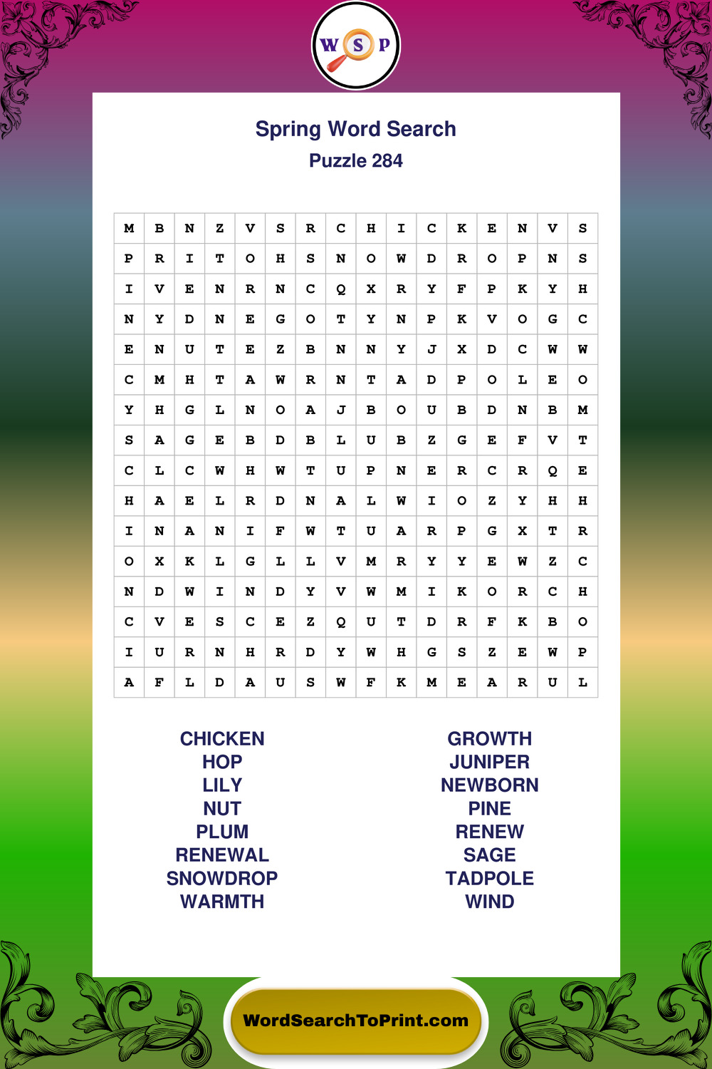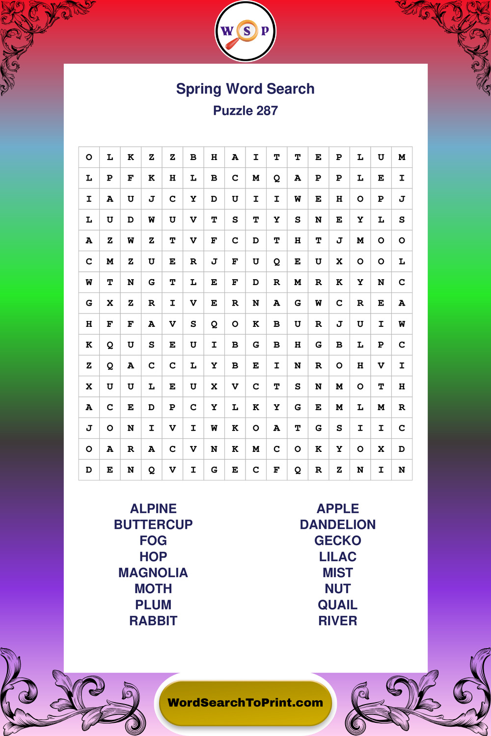 Printable Spring Wordsearch Puzzles