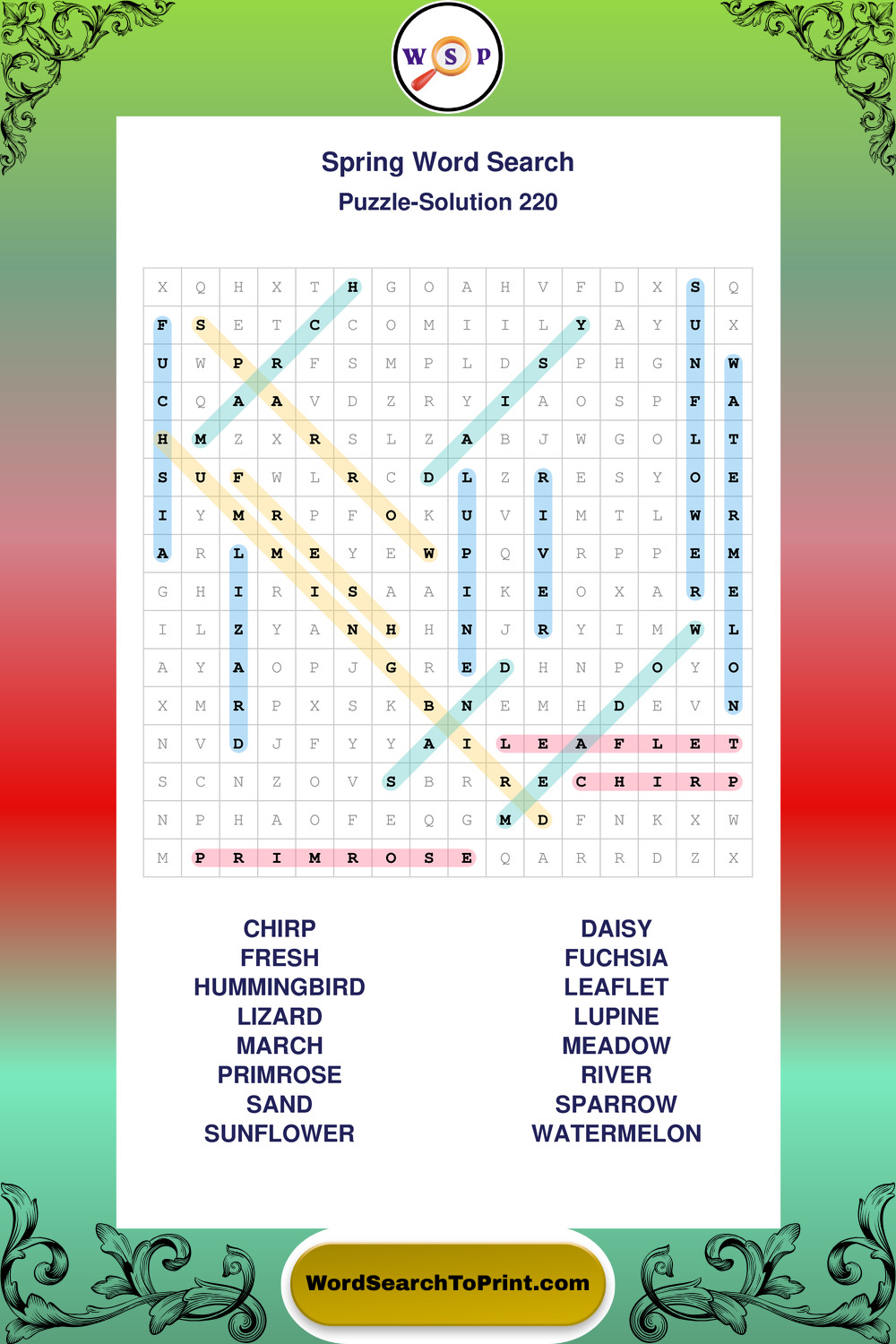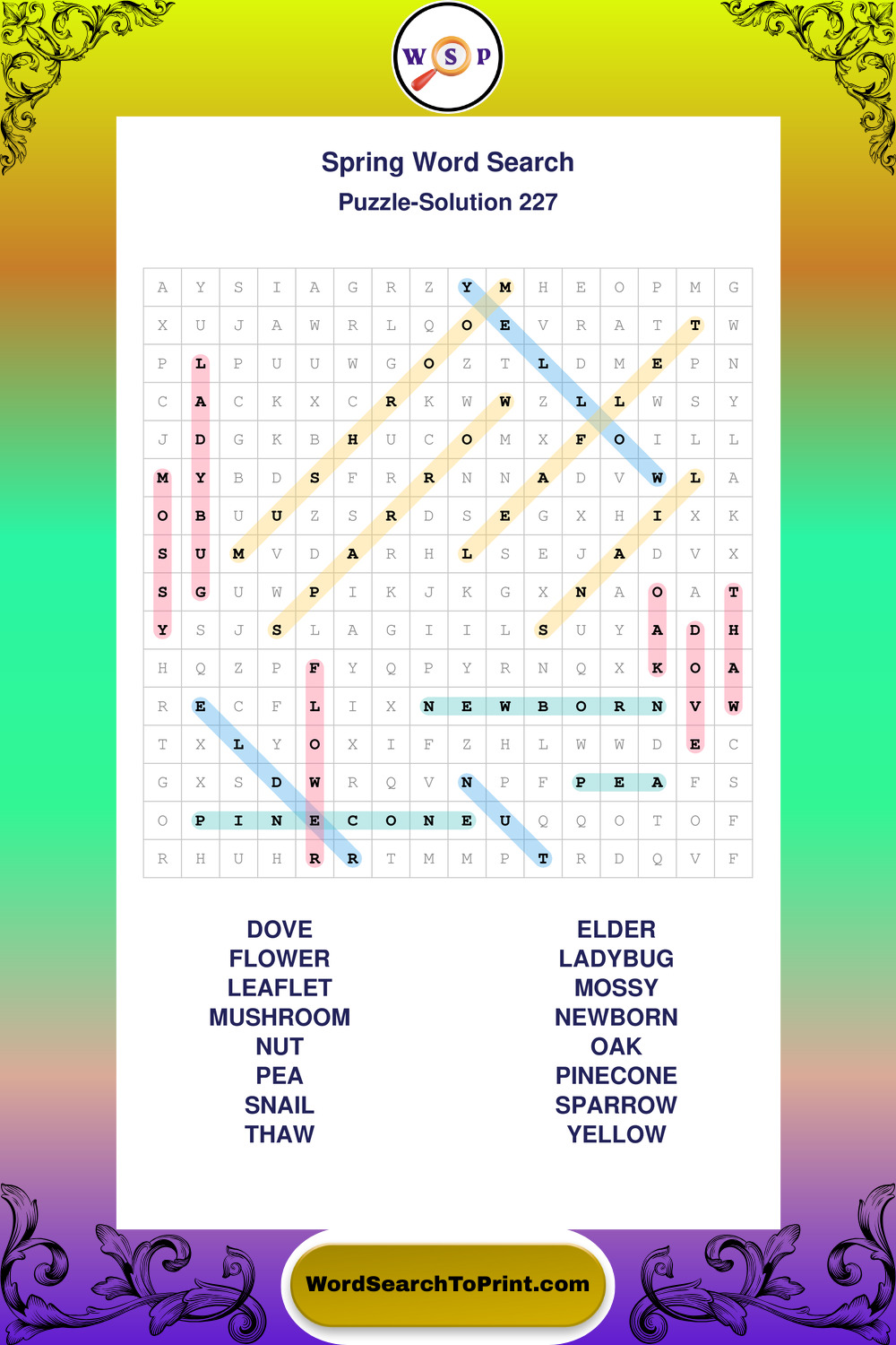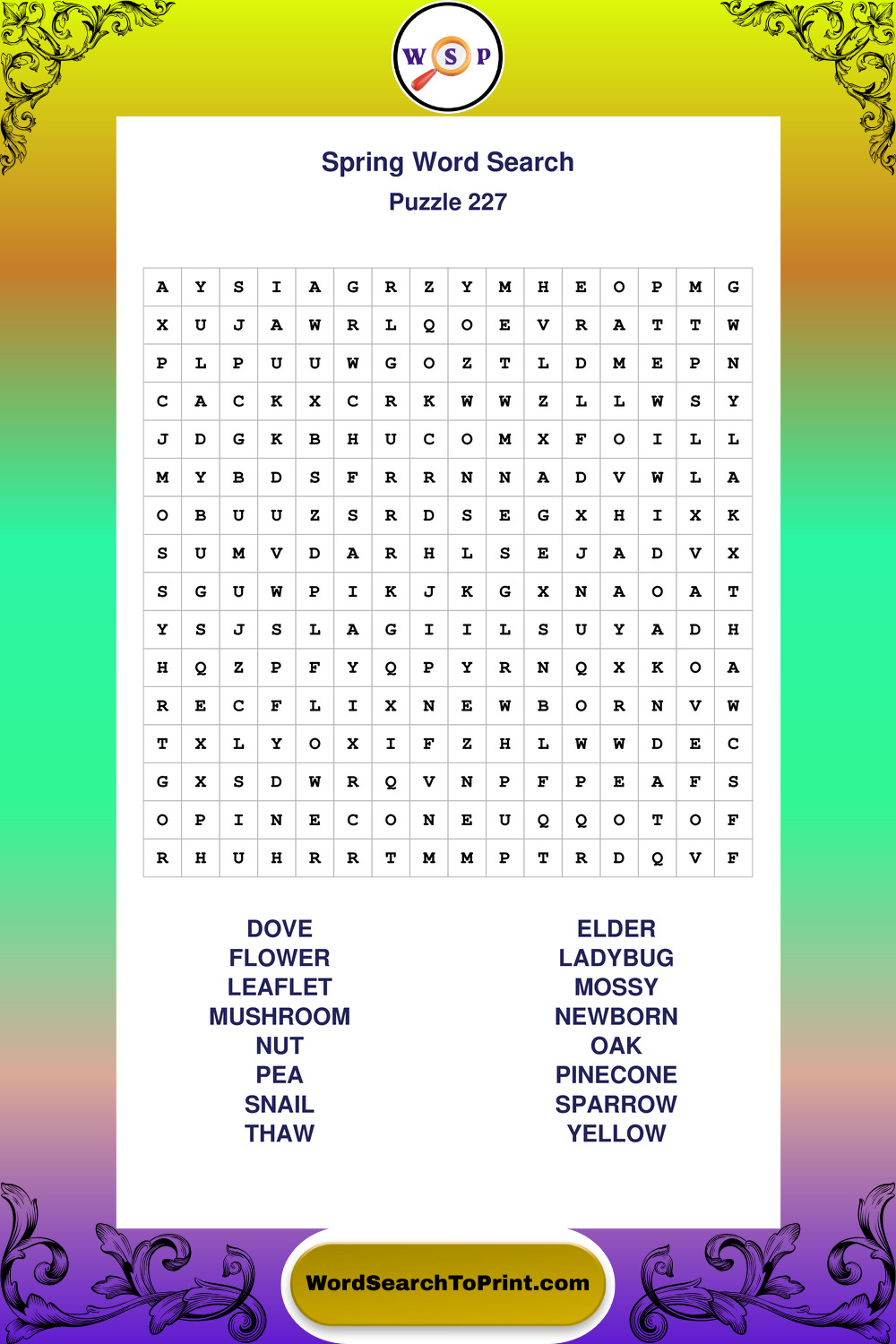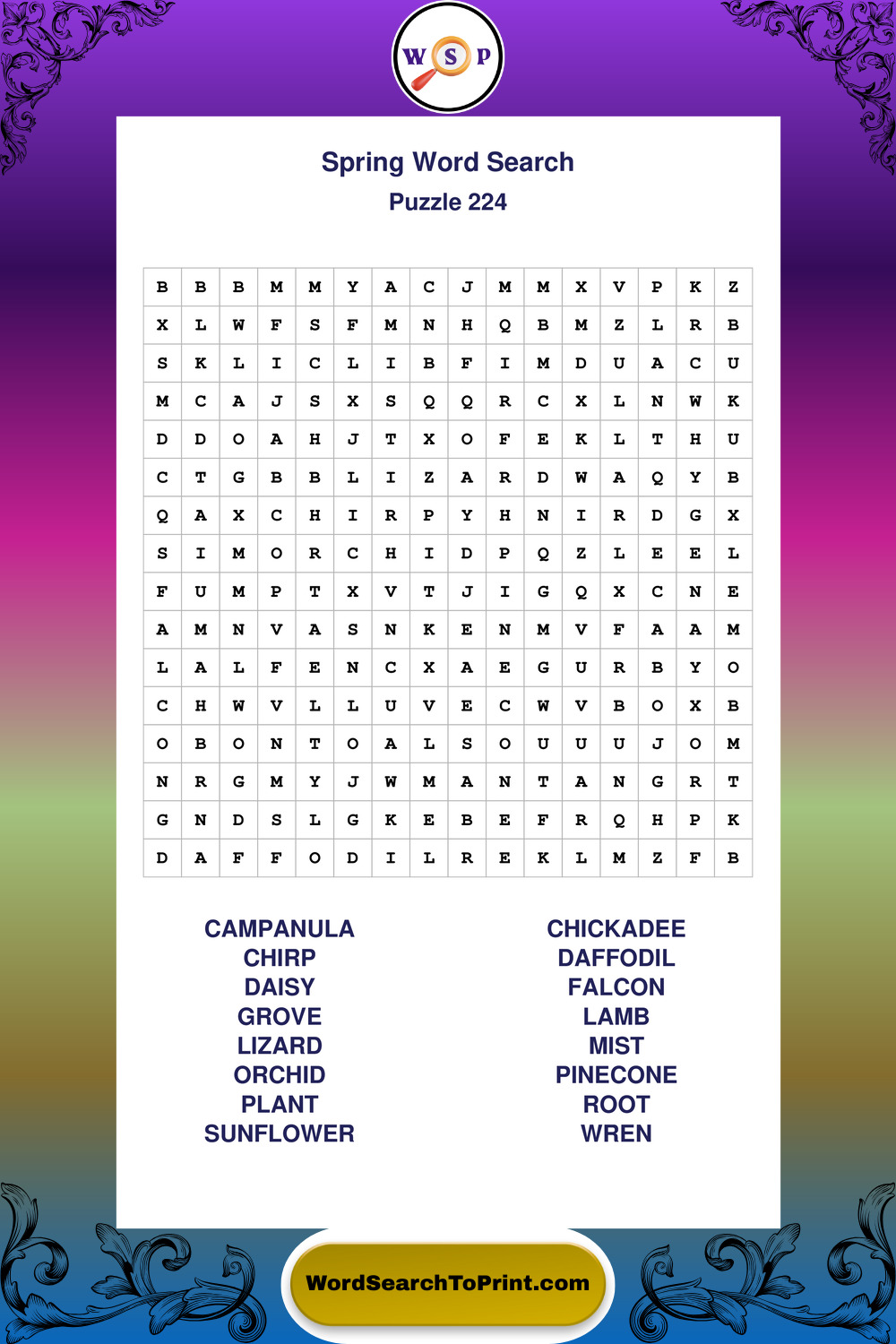 Free Large Print Spring Wordsearches