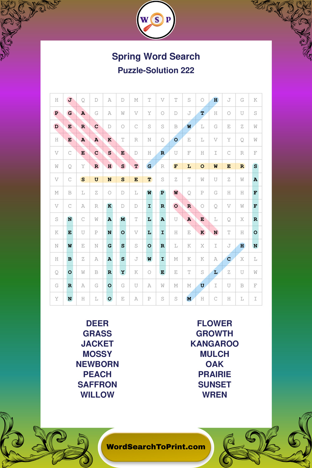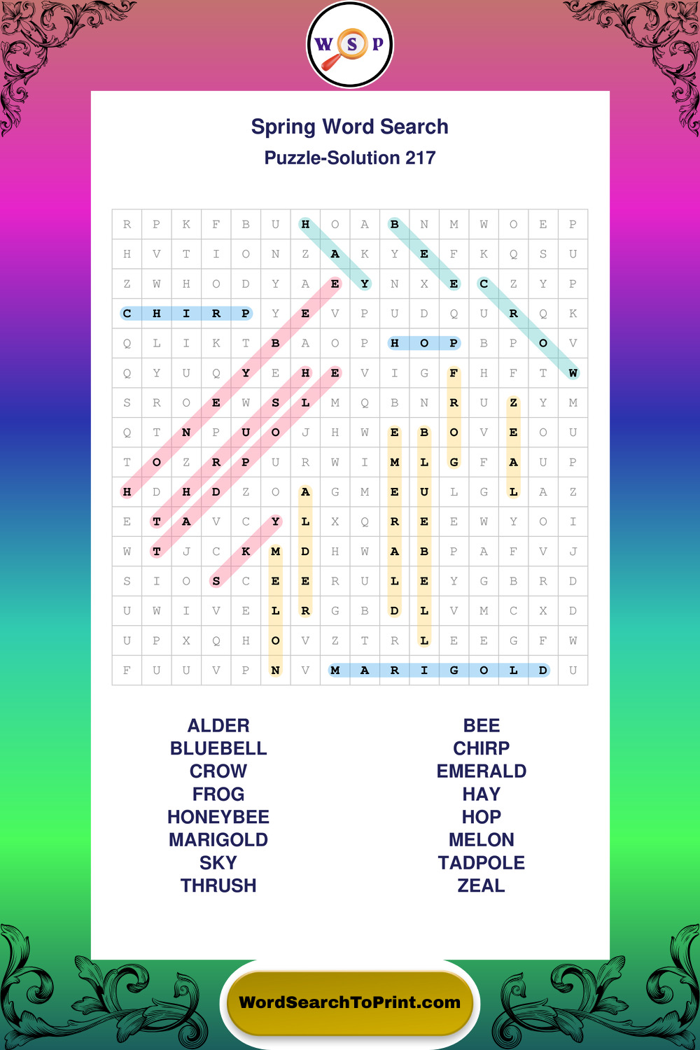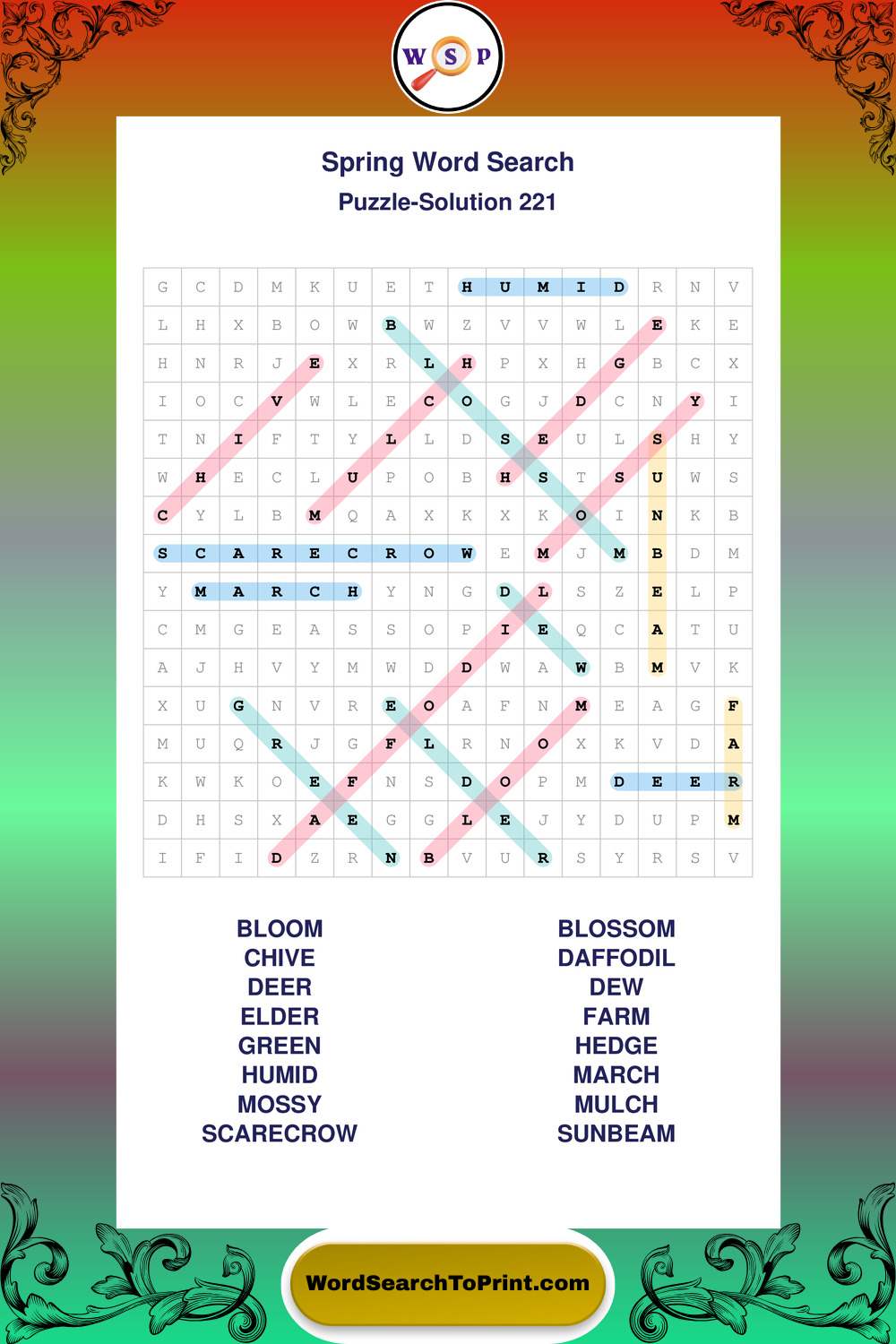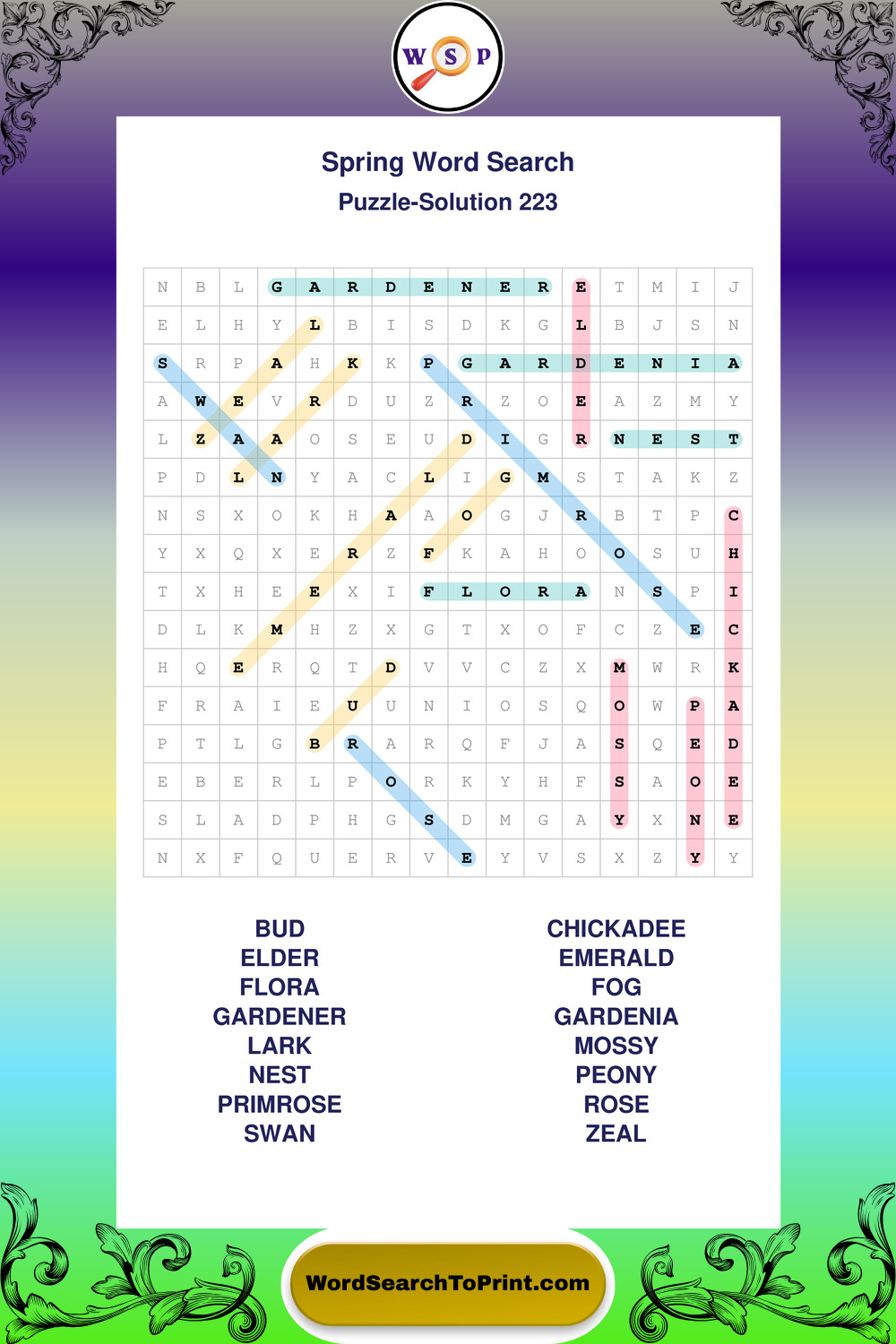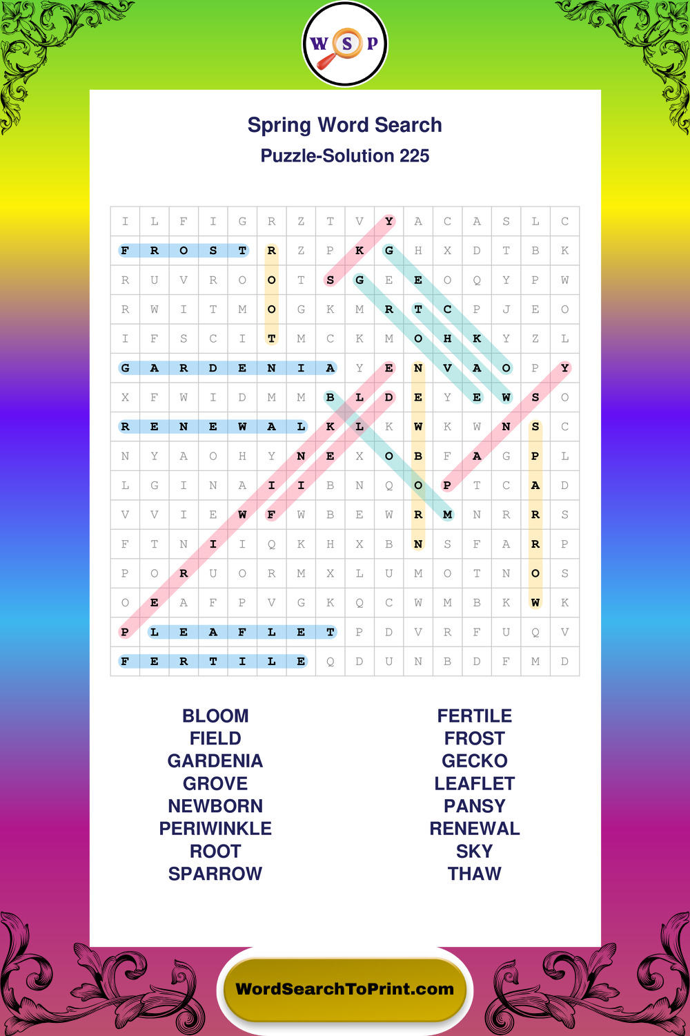 Free Large Print Spring Wordsearches