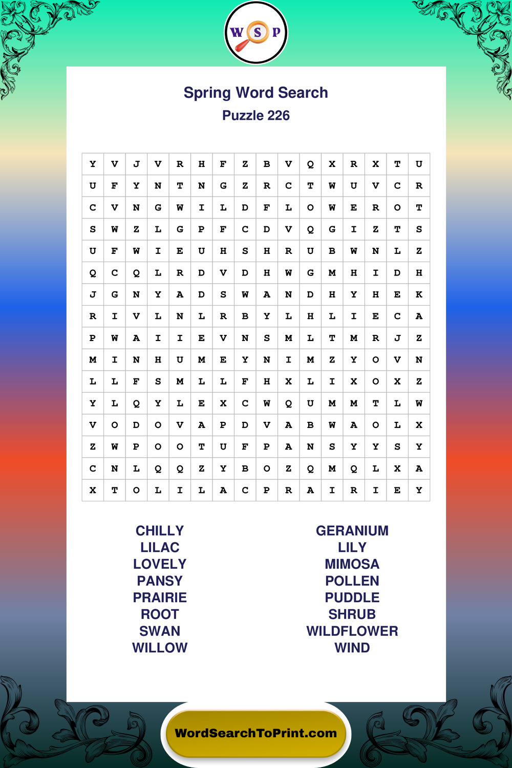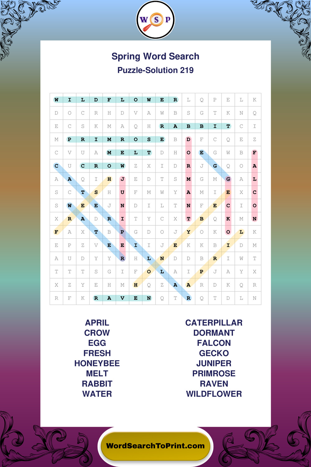 Printable Spring Wordsearch Puzzles