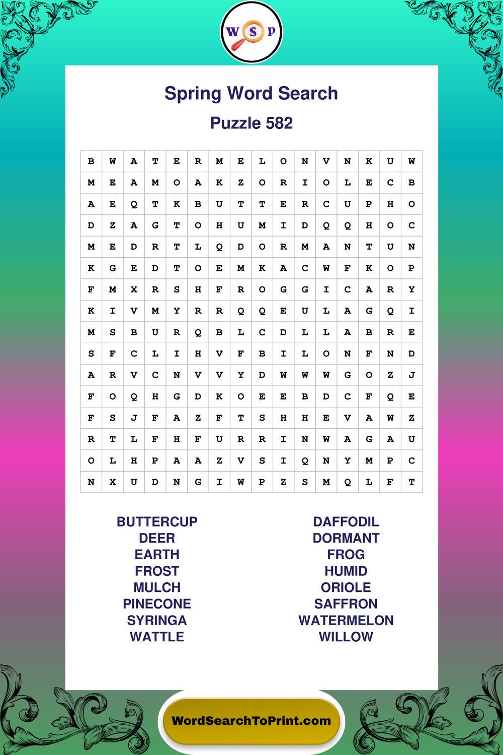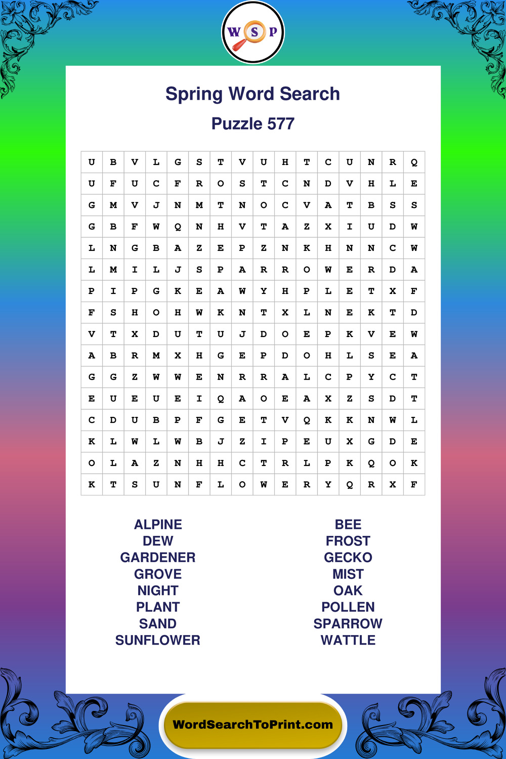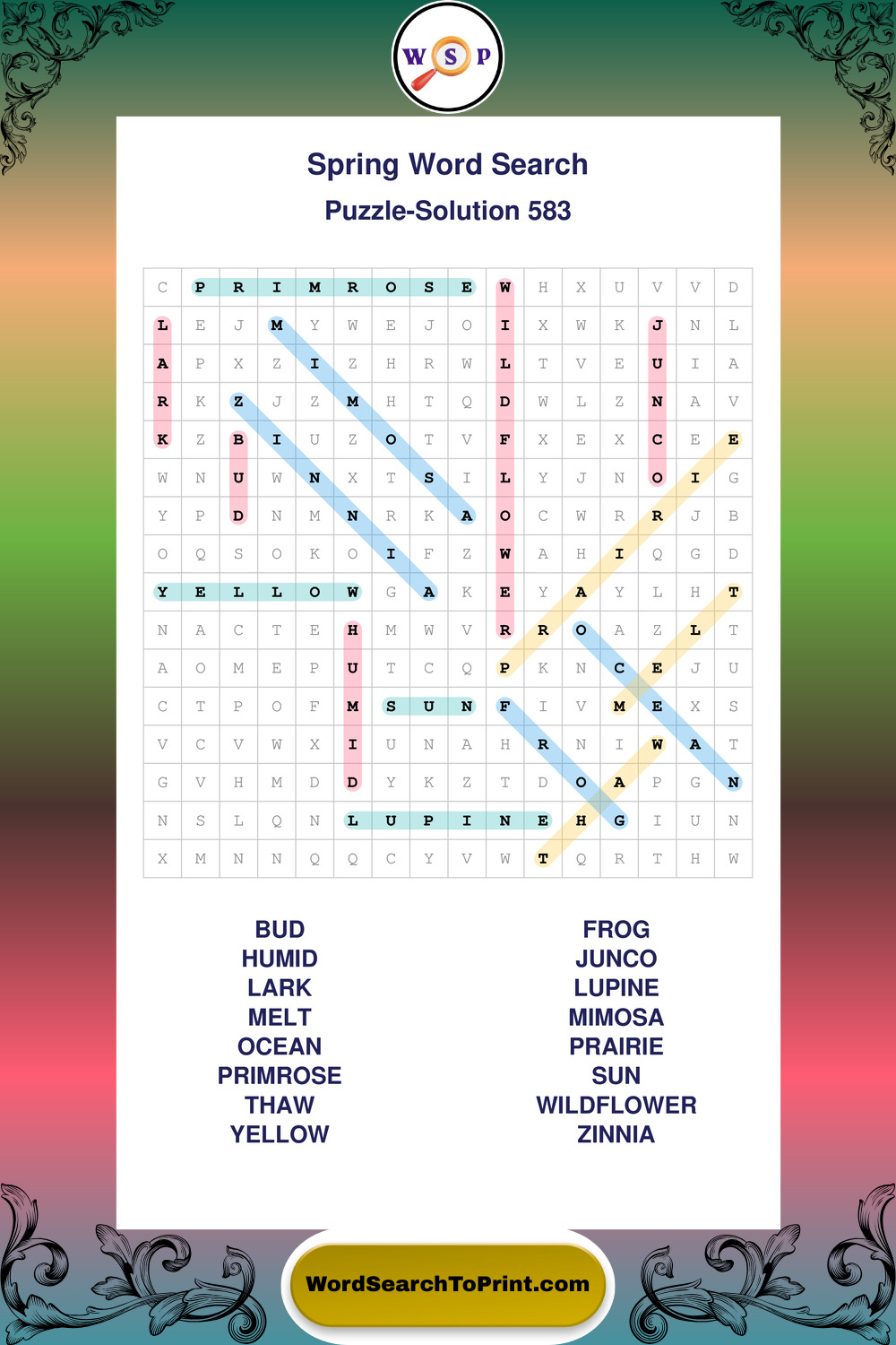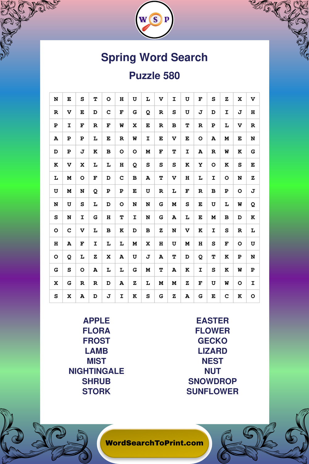 Free Large Print Spring Wordsearches
