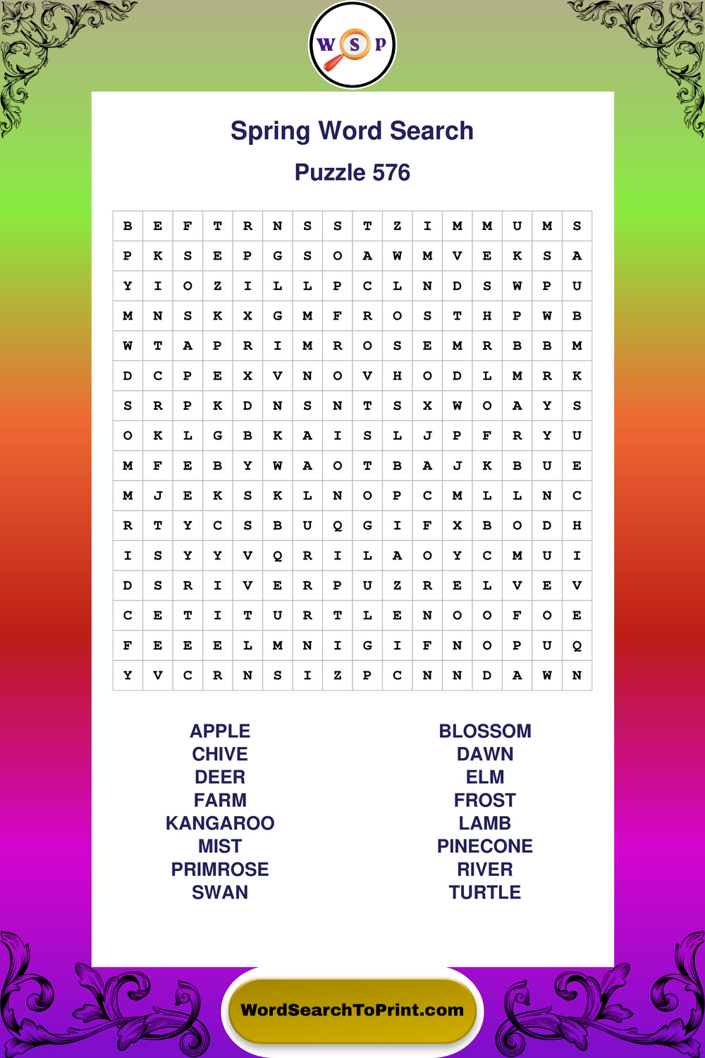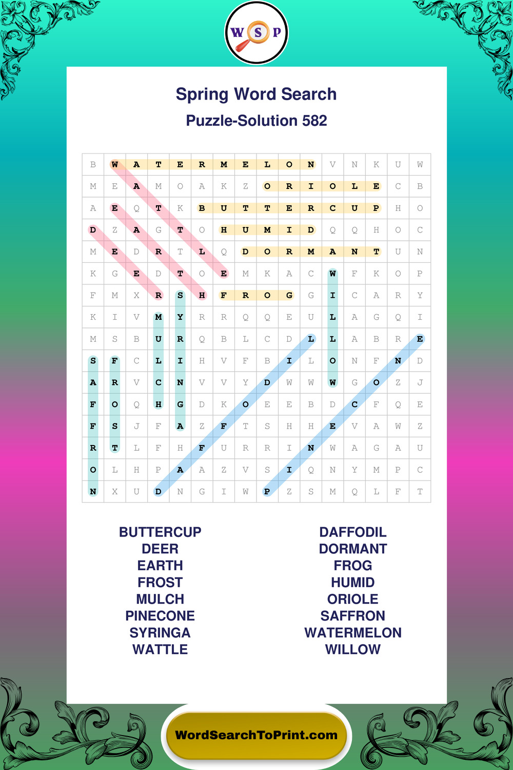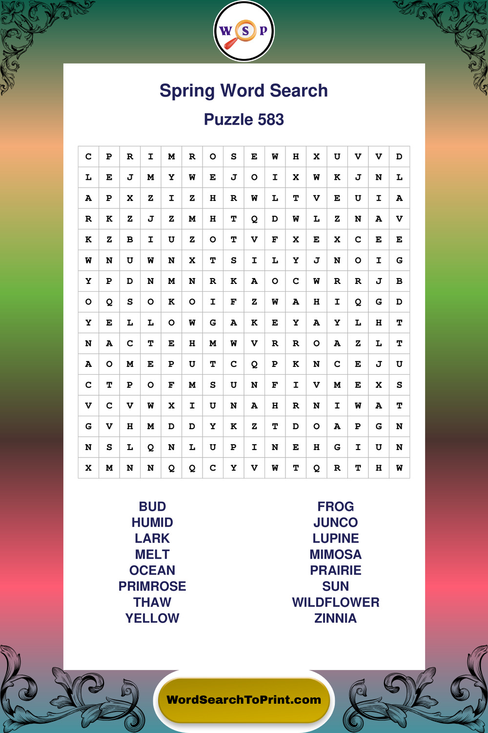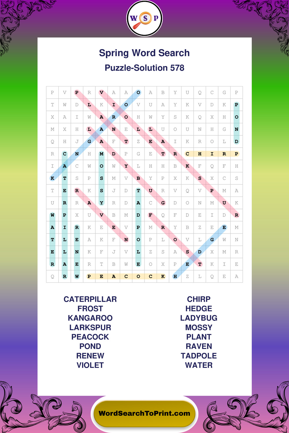 Free Large Print Spring Wordsearches