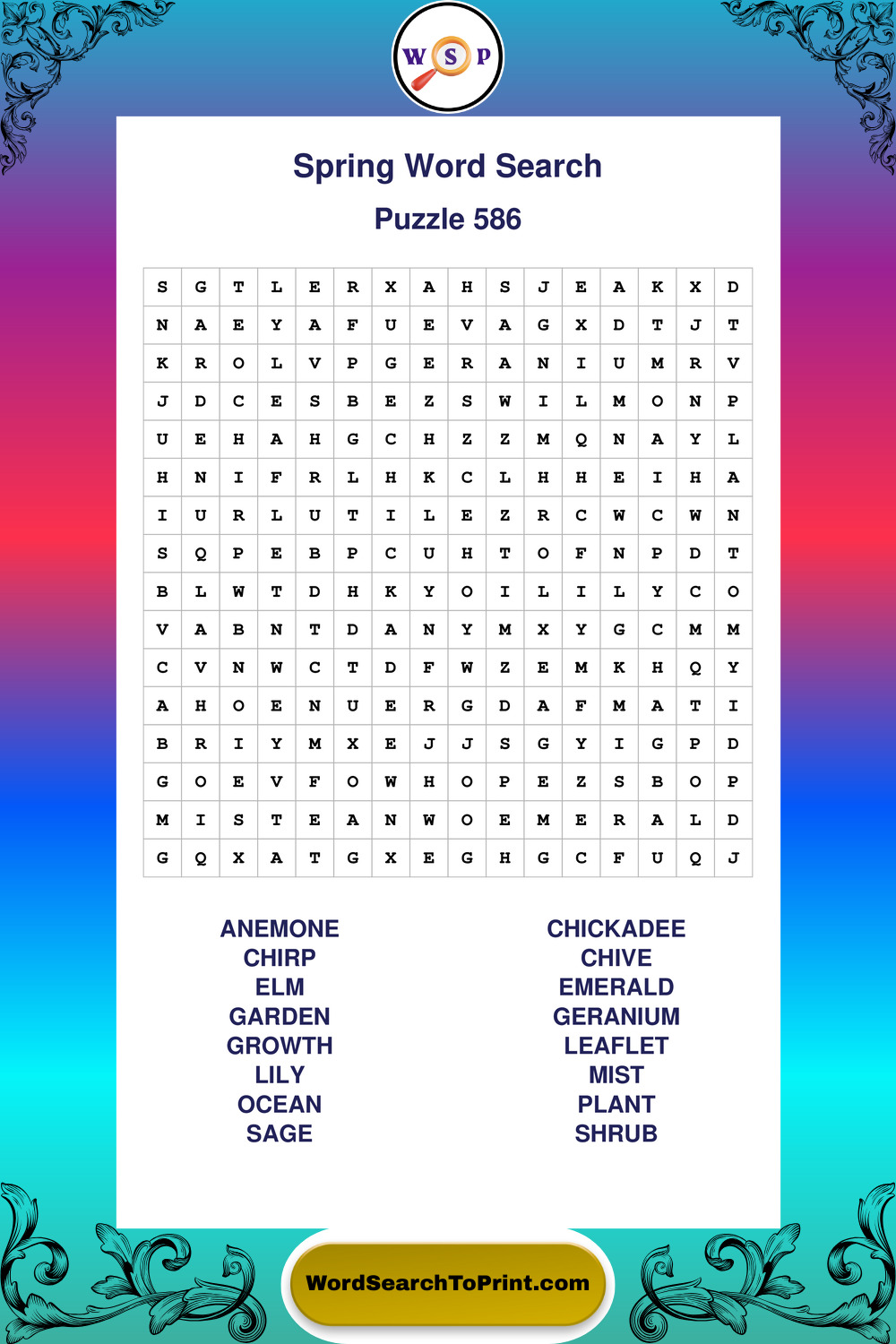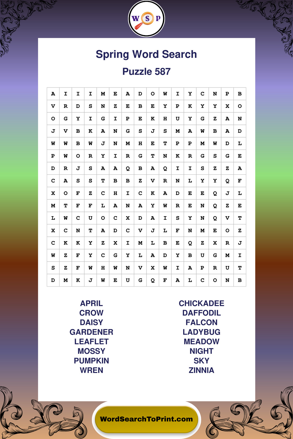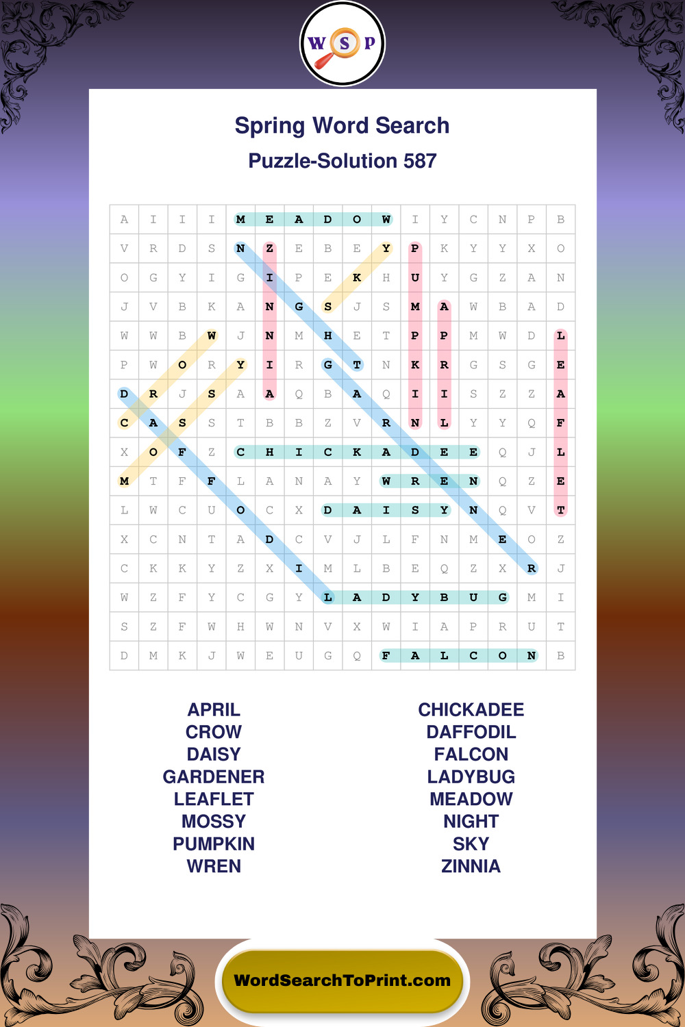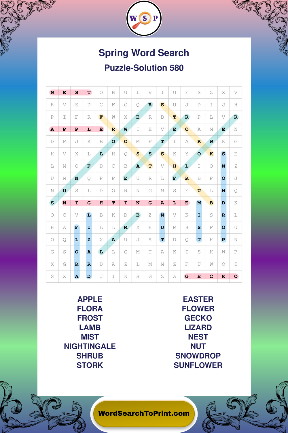 Free Large Print Spring Wordsearches