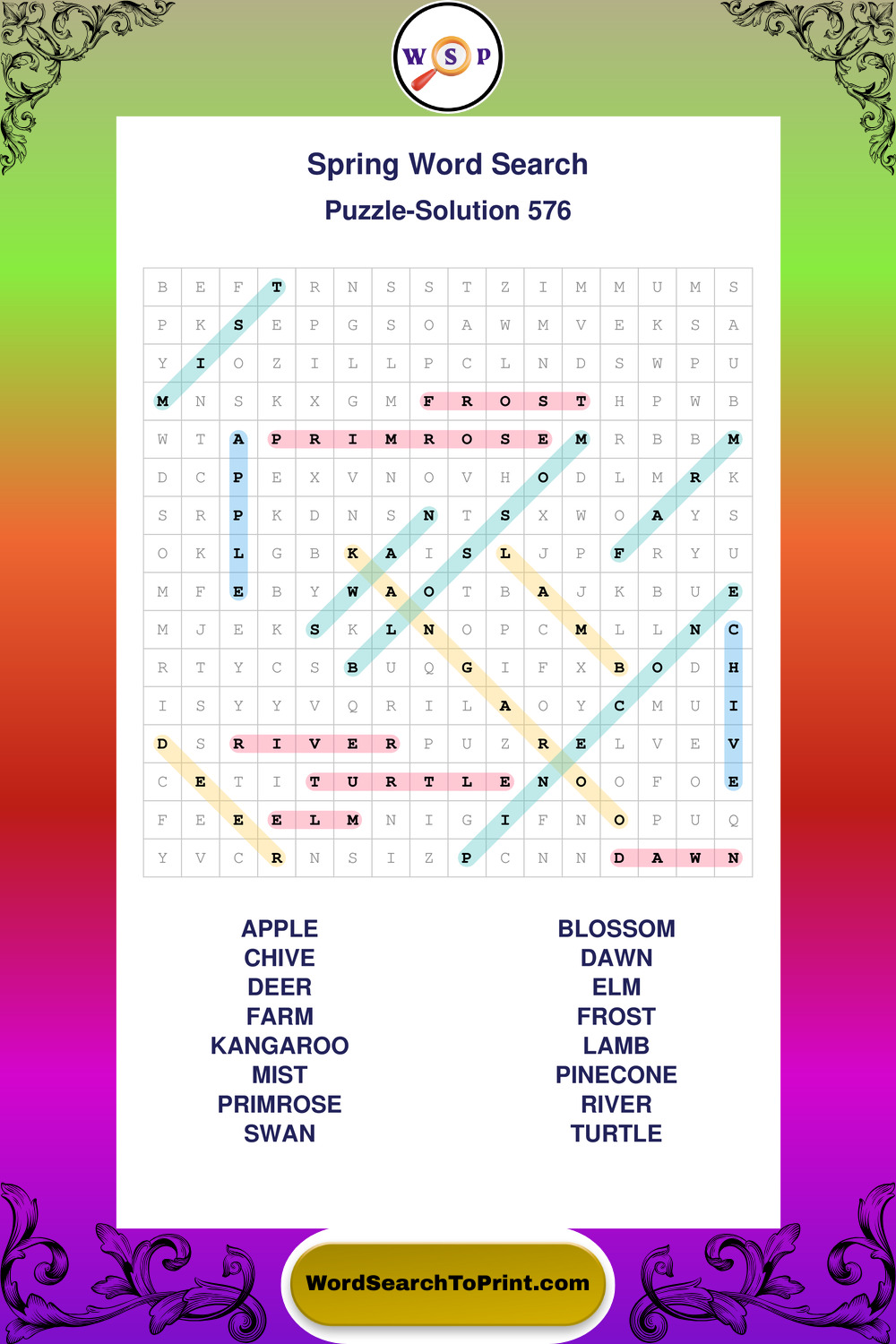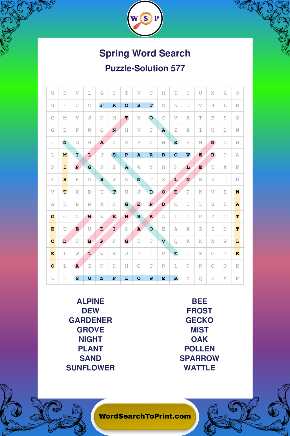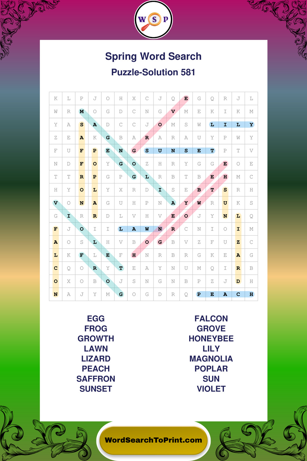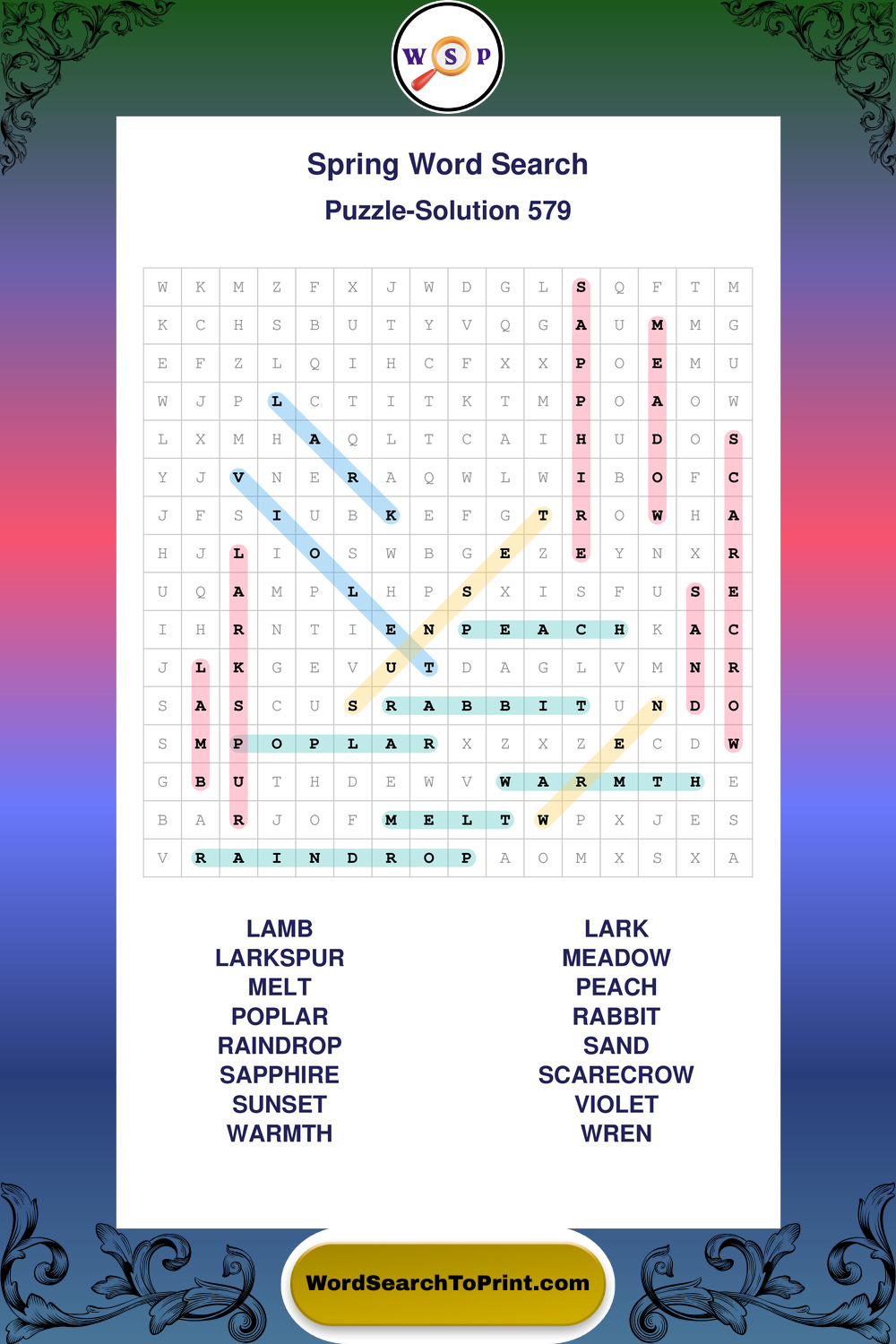 Free Large Print Spring Wordsearches