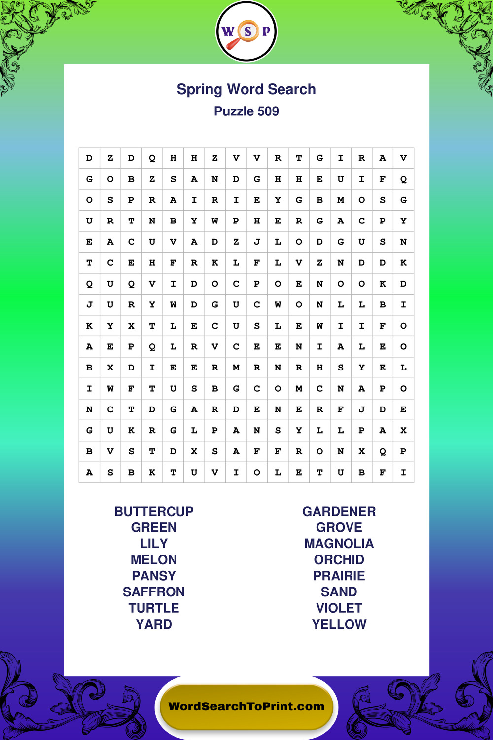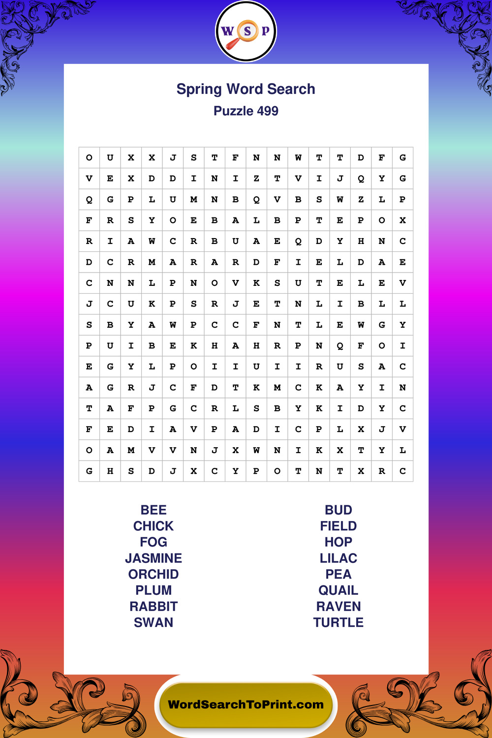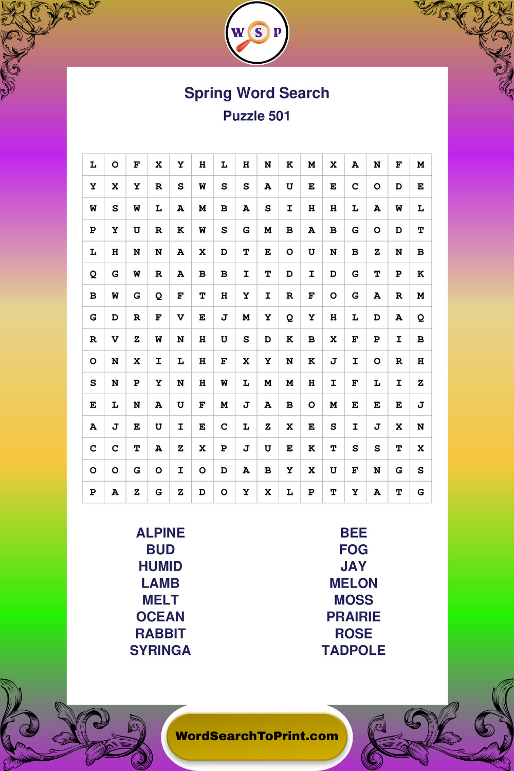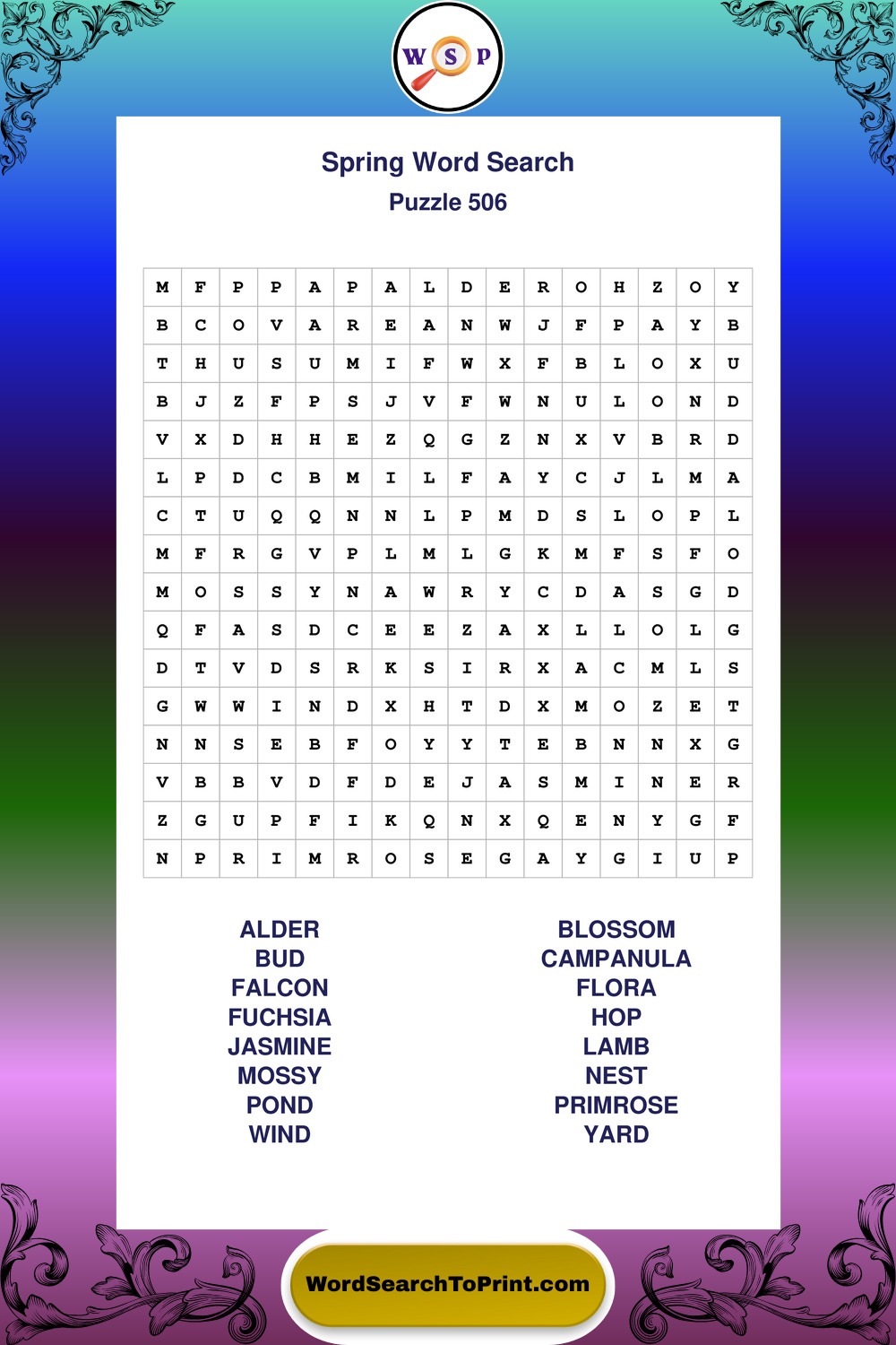 Free Large Print Spring Wordsearches